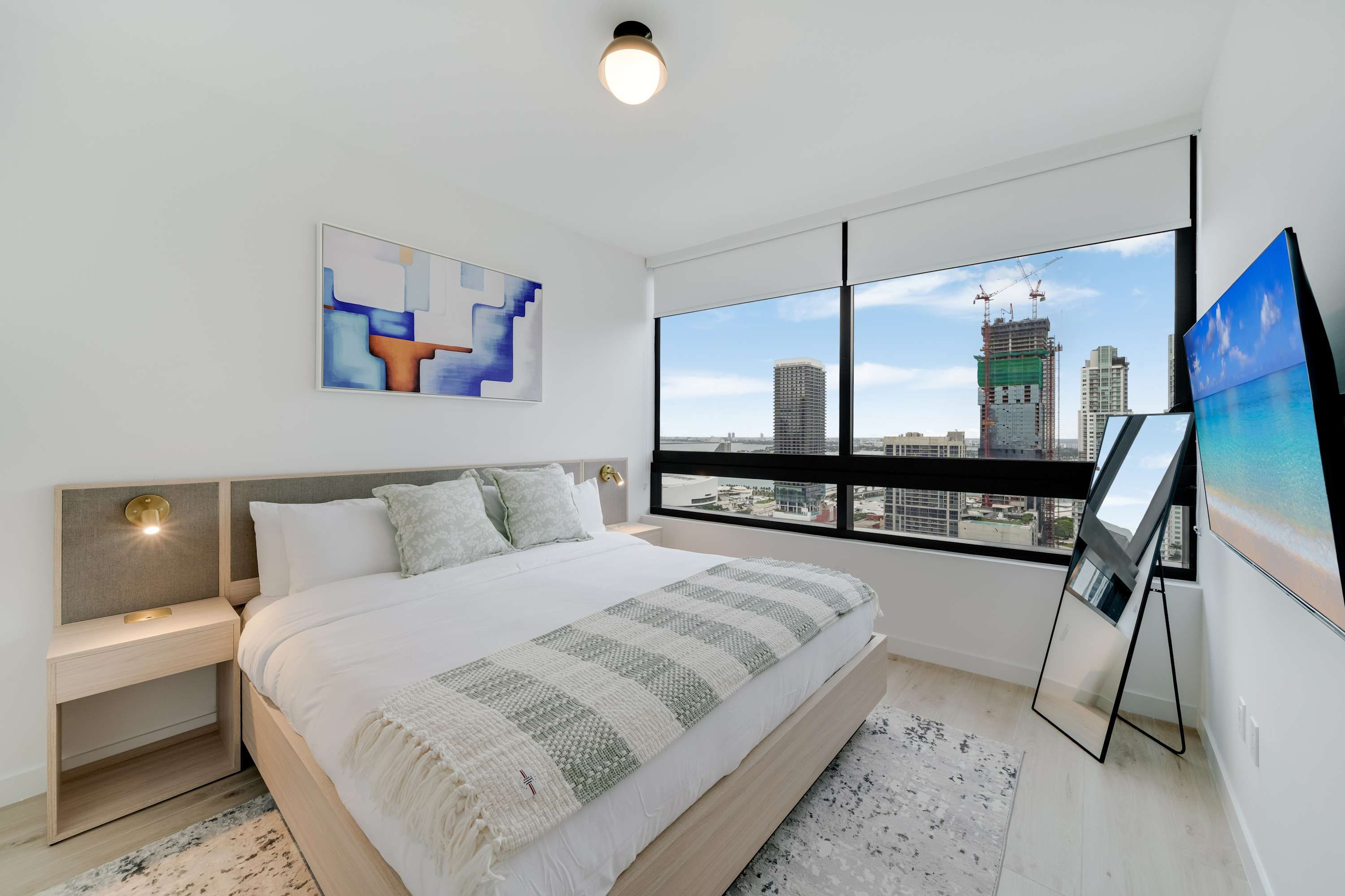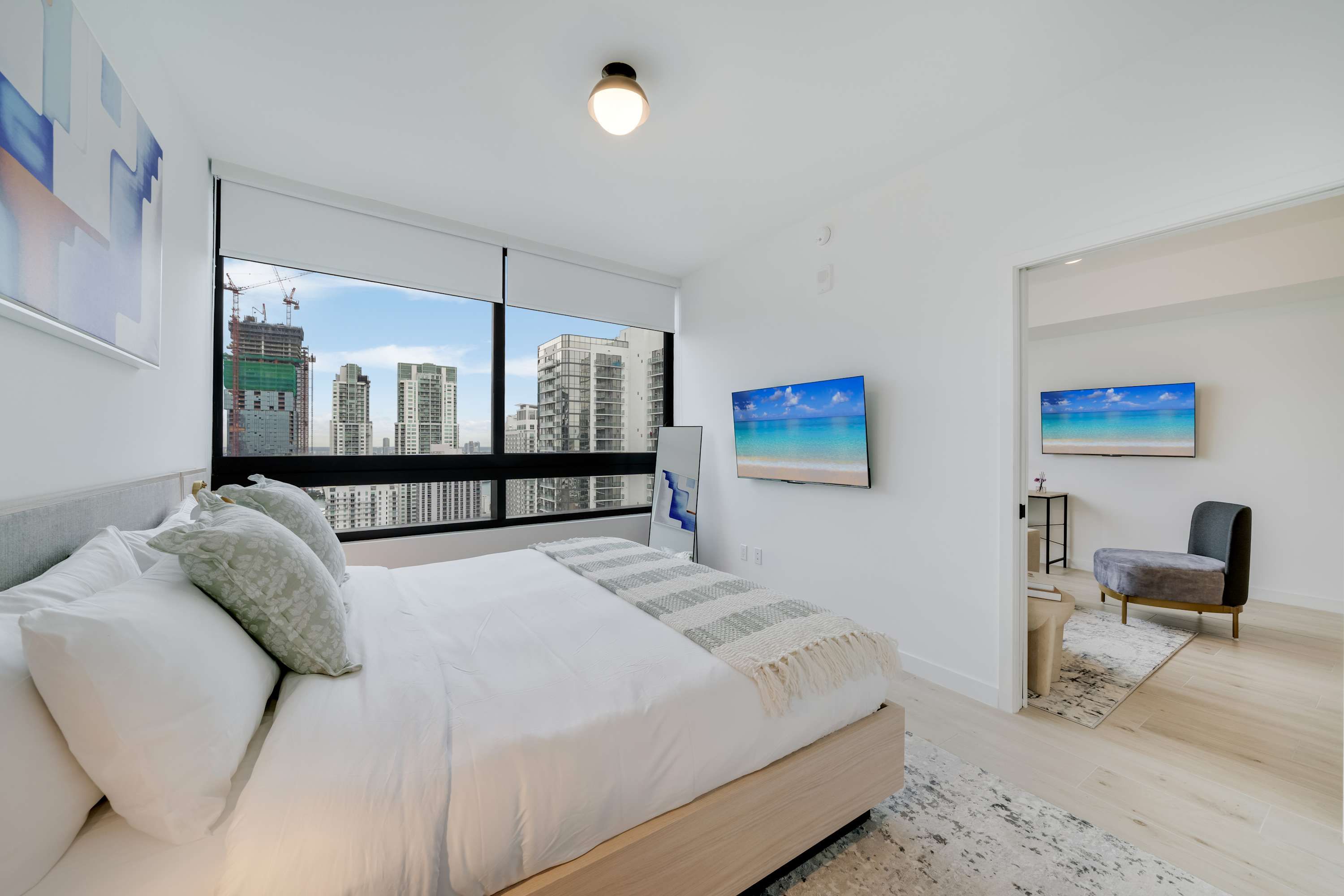 This contemporary apartment is a simple yet stylish base for a Downtown Miami stay. With a fully equipped kitchen and an open-plan living area with views over the city, it’s set up for easy living. The building’s amenities are a real highlight, from the resort-style pool and rooftop terrace to the gym and spa facilities, so there’s plenty to keep you busy. Location-wise, you’re right in the heart of downtown with straightforward access to Brickell, Wynwood, and the beach. Two will sleep on the sofa bed in the living room, but if you’re after modern comfort and convenience, this spot delivers.