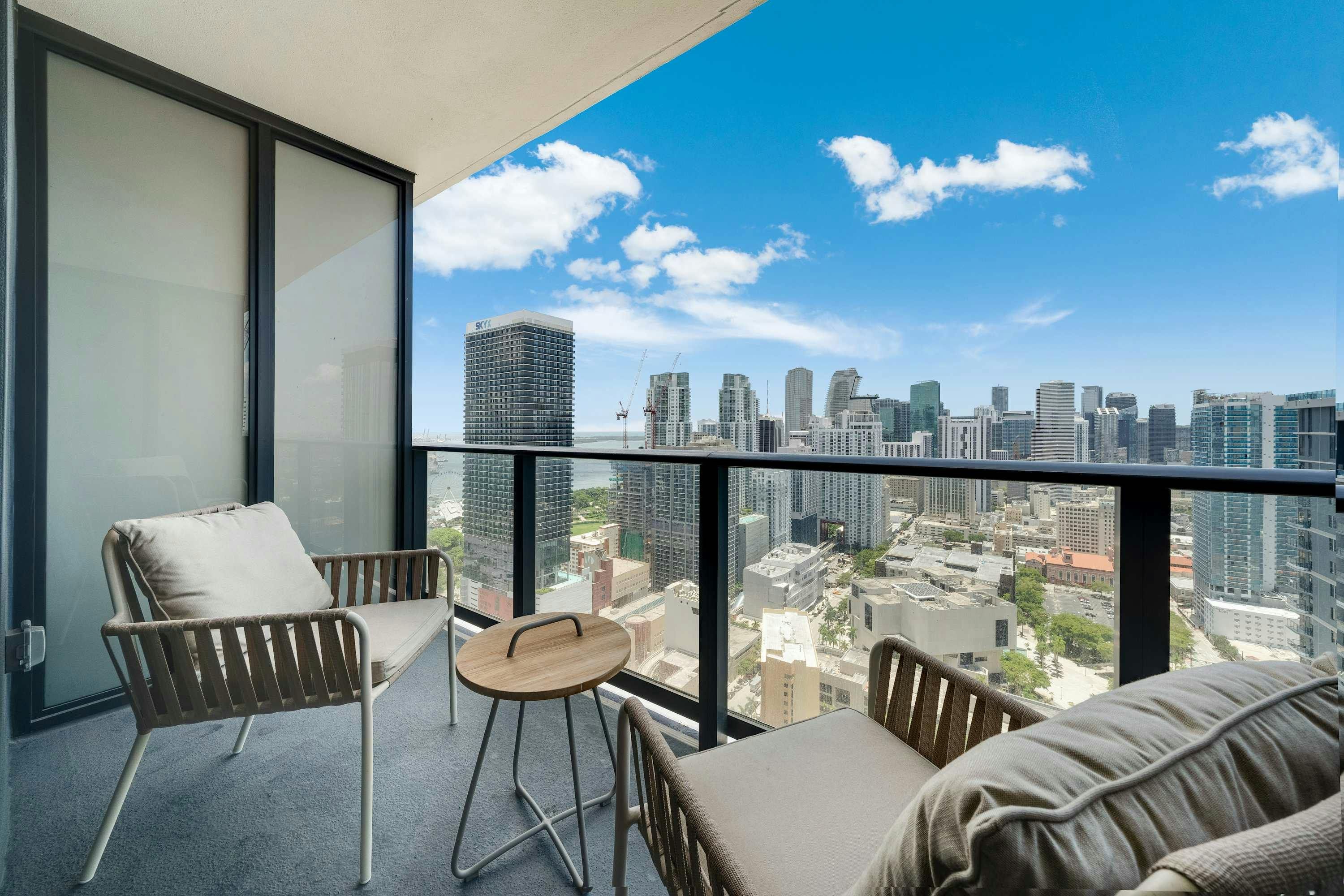 This sleek studio apartment is your stylish home base in the heart of downtown Miami. With high-end finishes and smart compact design, it’s perfect for unwinding after a day exploring. Start your mornings with a coffee on the private balcony, or take advantage of the building's yoga lounge with skyline views. Spend sunny afternoons by the shared rooftop pool or grab lunch at the street-level cafes. There’s even a spa on site for indulgent downtime, a state-of-the-art gym, and a co-working space if you're mixing business with pleasure. Best of all, you'll be close to parks, shopping, and the waterfront, with everything Miami has to offer just minutes away.
