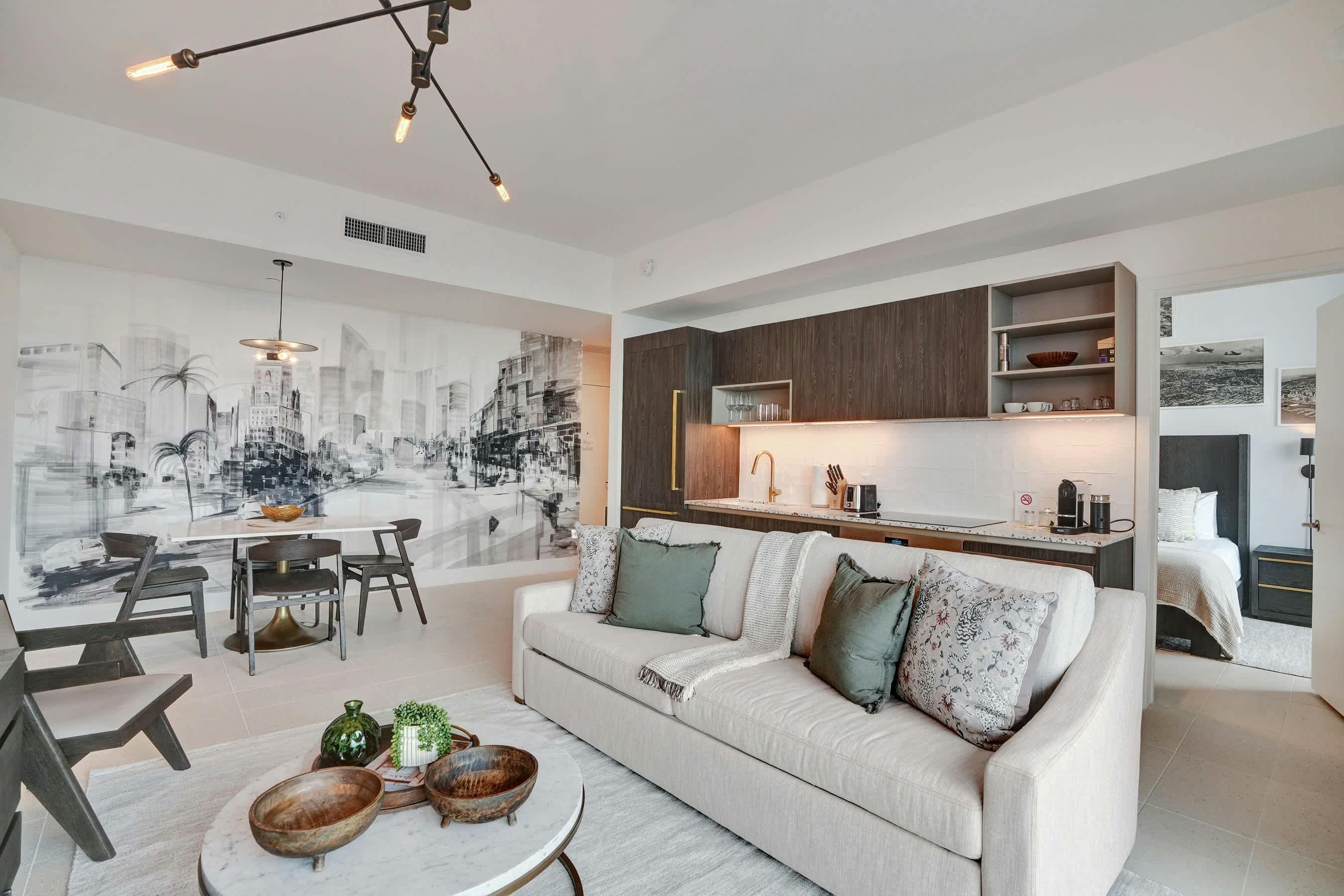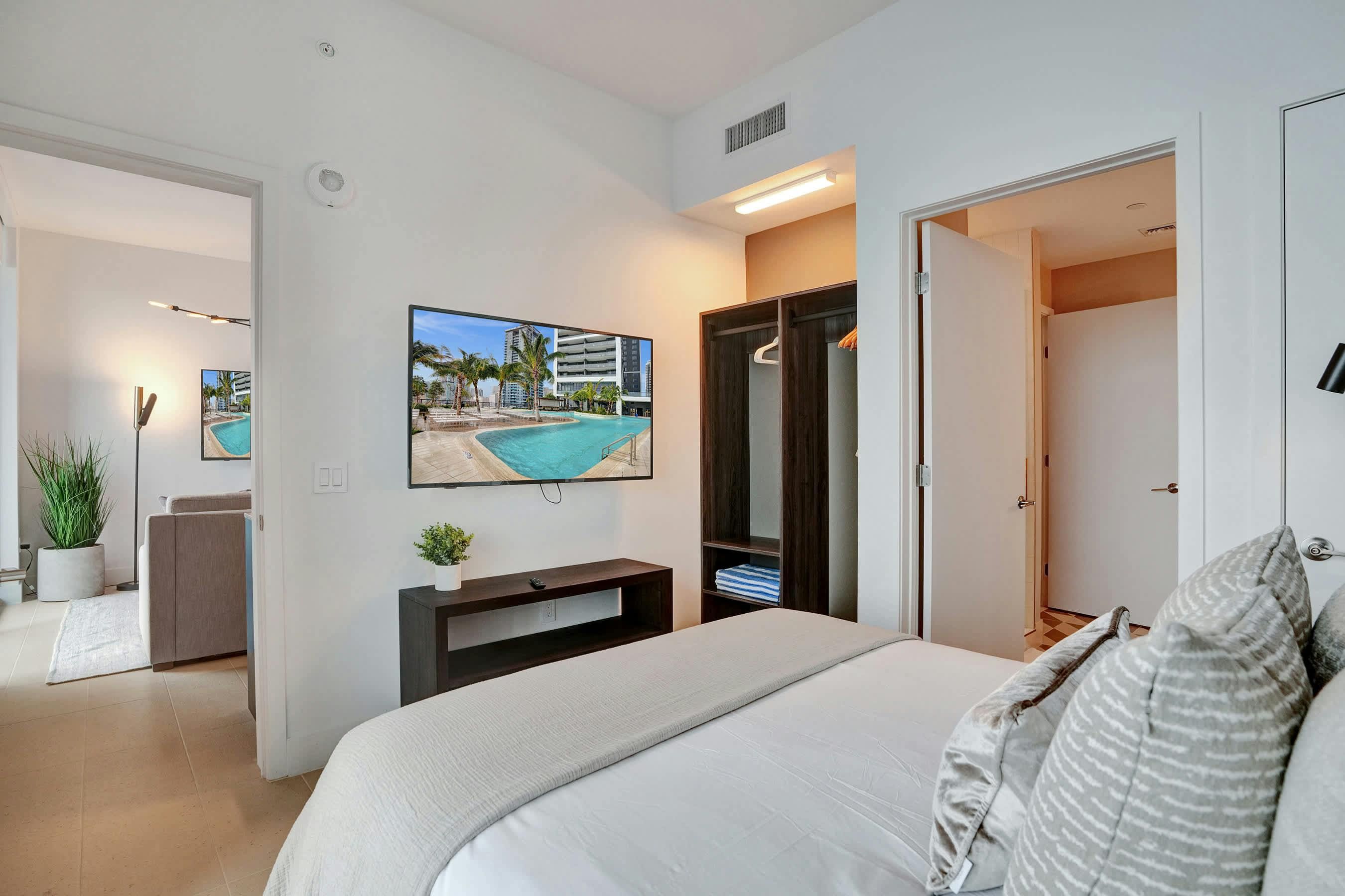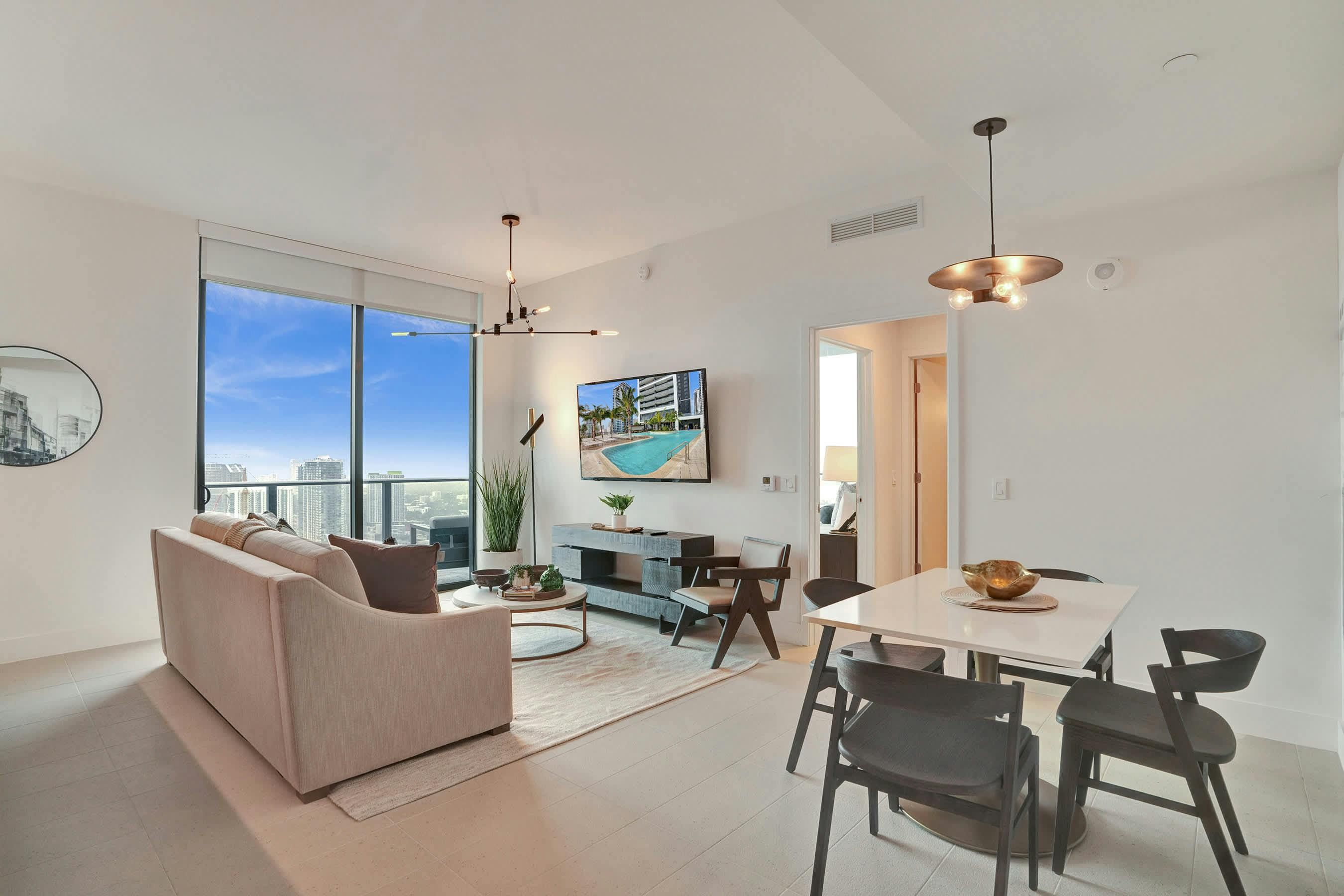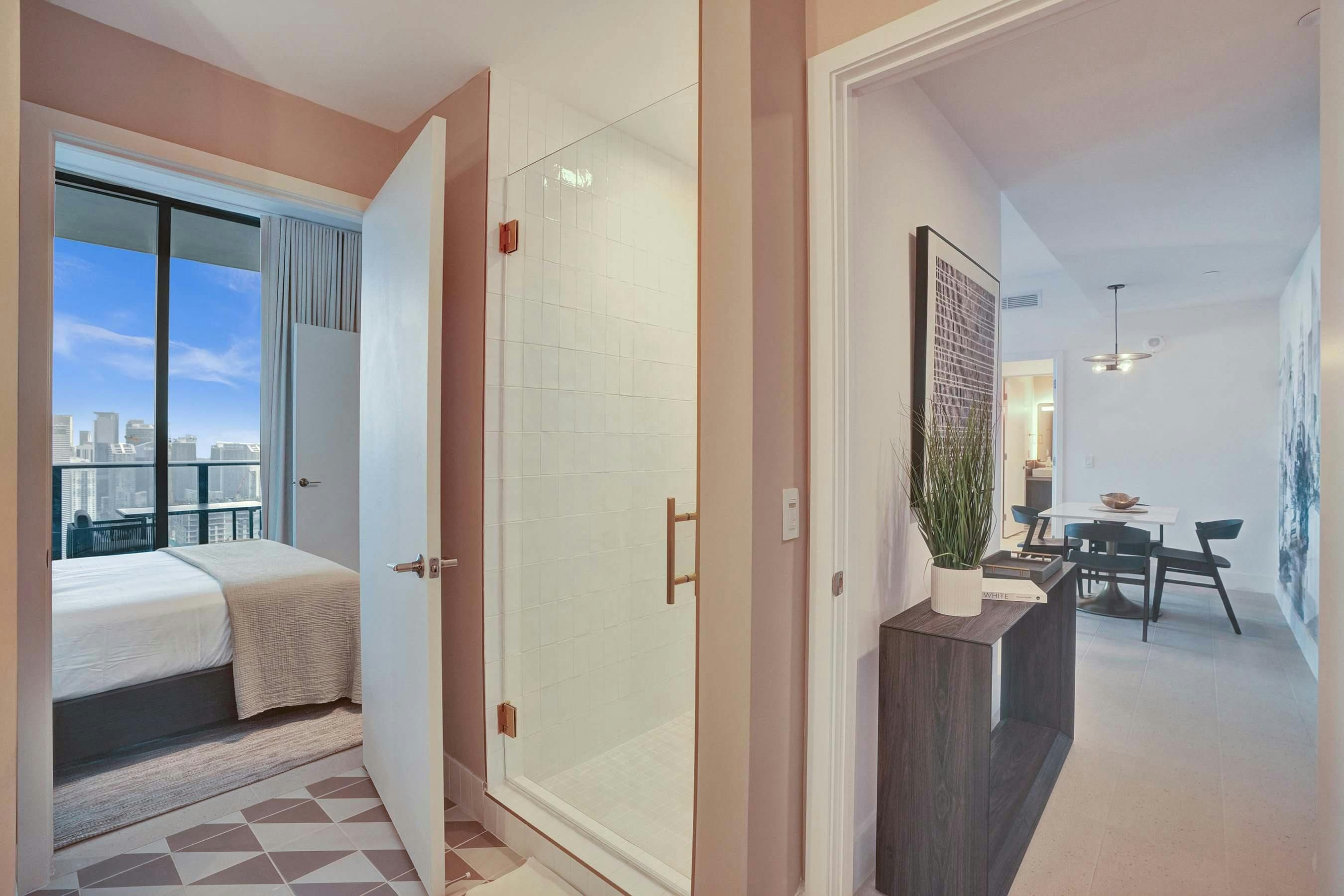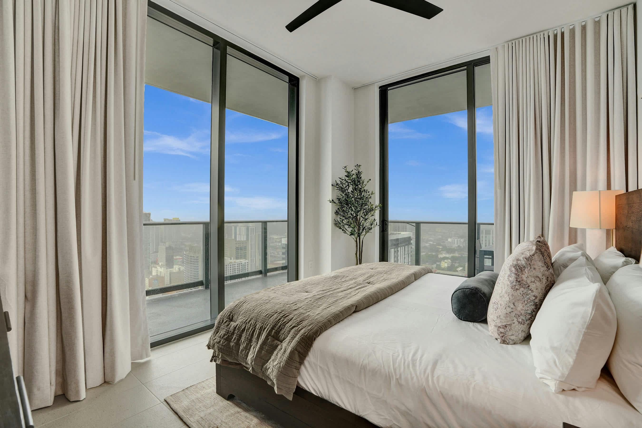 This penthouse in downtown Miami is the perfect base for exploring South Florida's coastline. Perched on the 50th floor, you'll enjoy breathtaking panoramic views of the Atlantic Ocean, Biscayne Bay, and the city skyline. The modern design optimises space, offering a stylish and comfortable retreat. Just a short walk from Bayside Marketplace, you’ll have access to 150 stores, restaurants, and cafés by the water. With communal facilities like a pool, gym, and co-working spaces, this apartment adds extra convenience to your Miami experience.