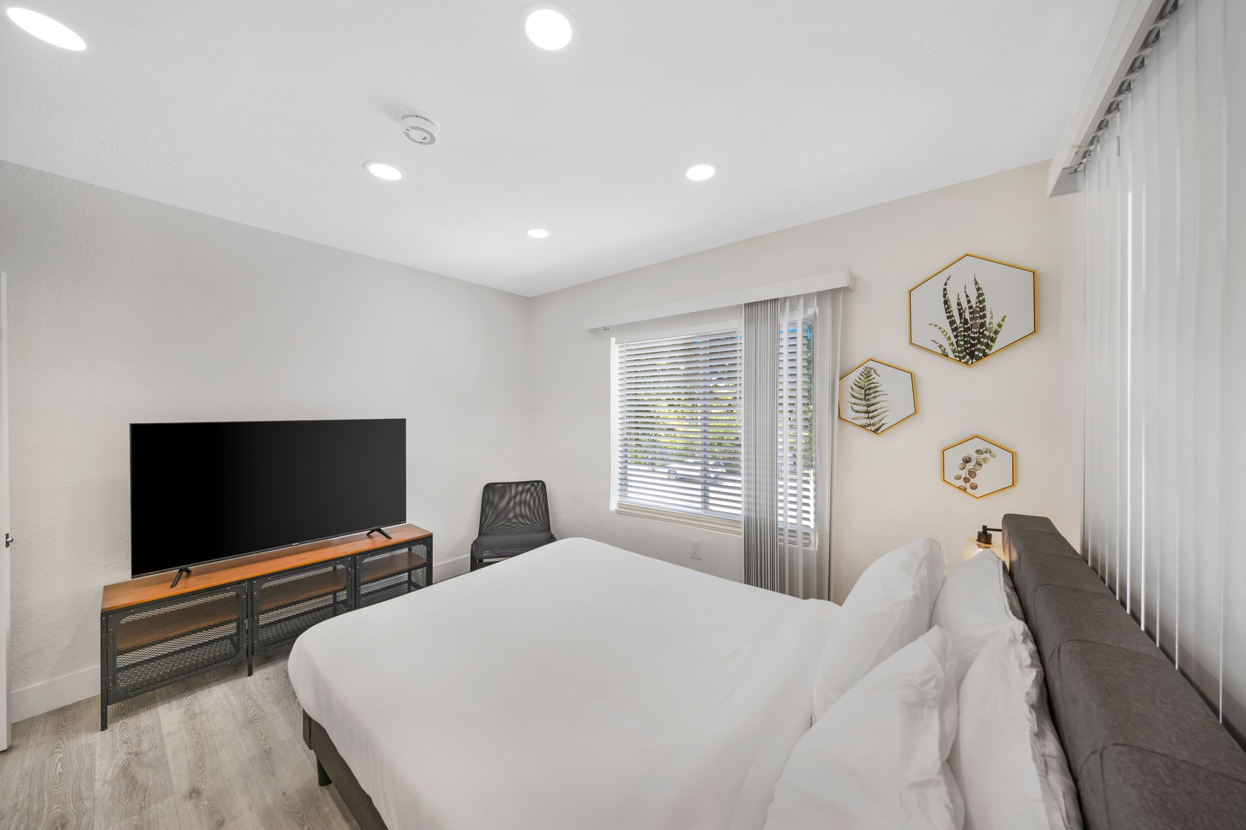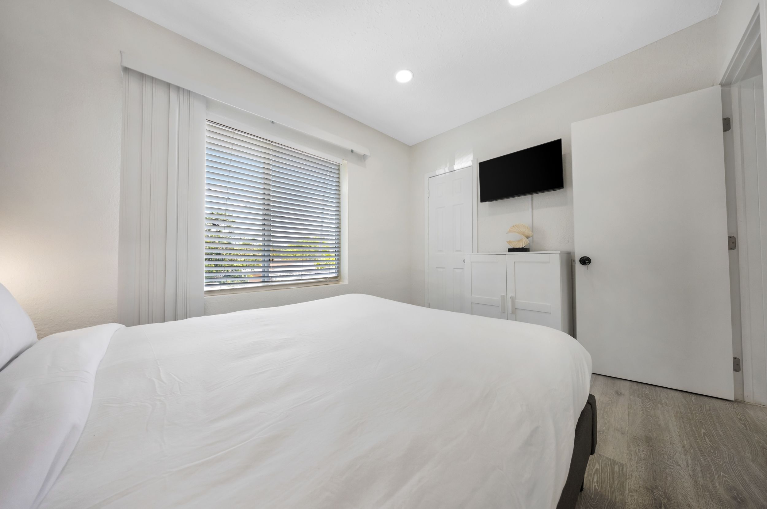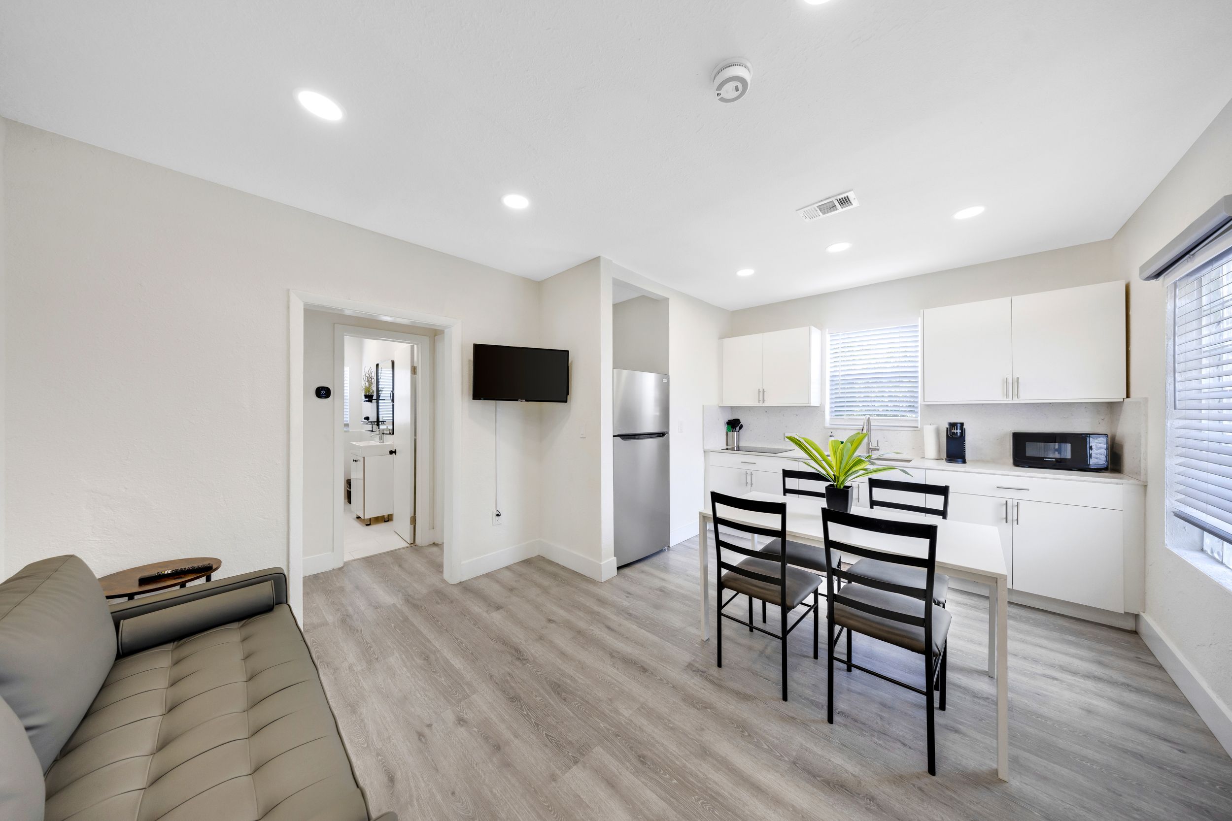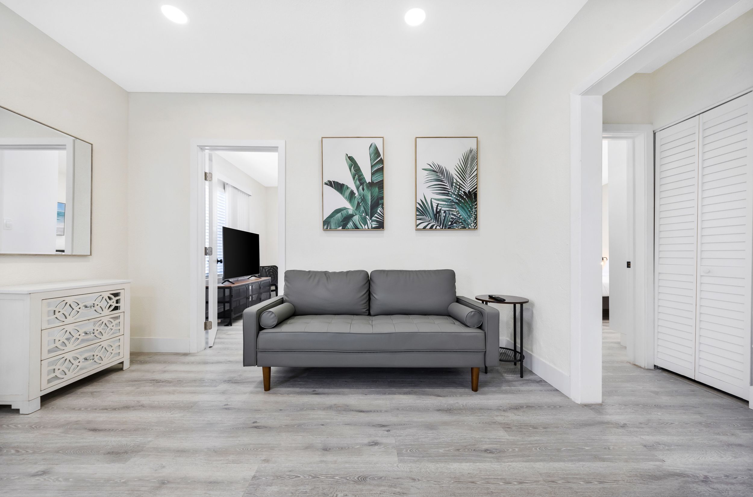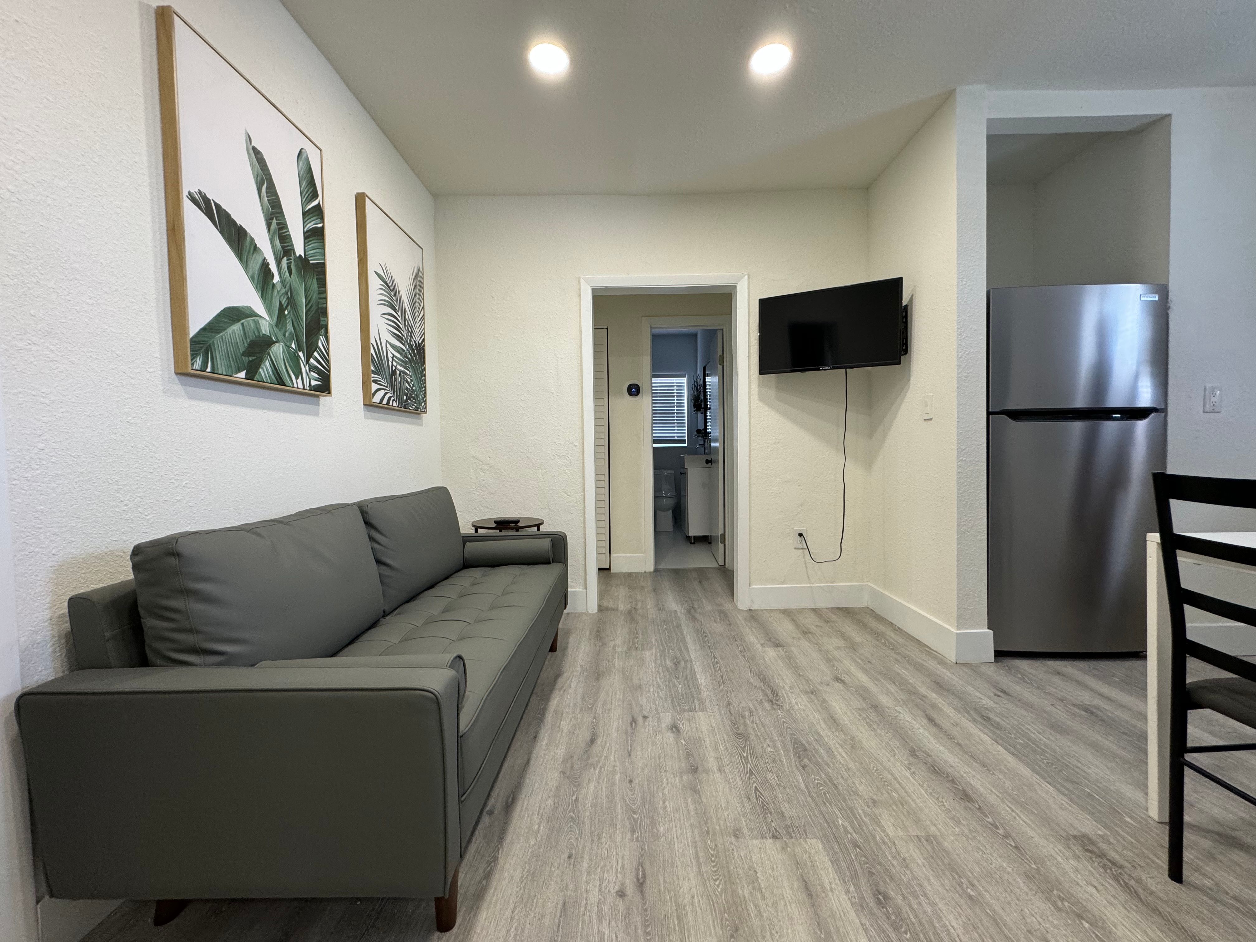 Situated in the Little River neighbourhood, this apartment offers a convenient base for exploring the area. Most of Miami’s attractions, however, are a drive away, but this home is conveniently located near a main road, providing easy access to the city. You may hear some road noise here as a result. There’s also a bus stop a short stroll from this apartment if you prefer to use public transport. So, that’s the location. The apartment itself is reached via an external set of relatively steep stairs. Once inside, there’s a bright open-plan living space to relax in with family or friends. There’s a well-appointed kitchen, too, and you can cook alfresco in the shared garden area with its barbecue grills.
