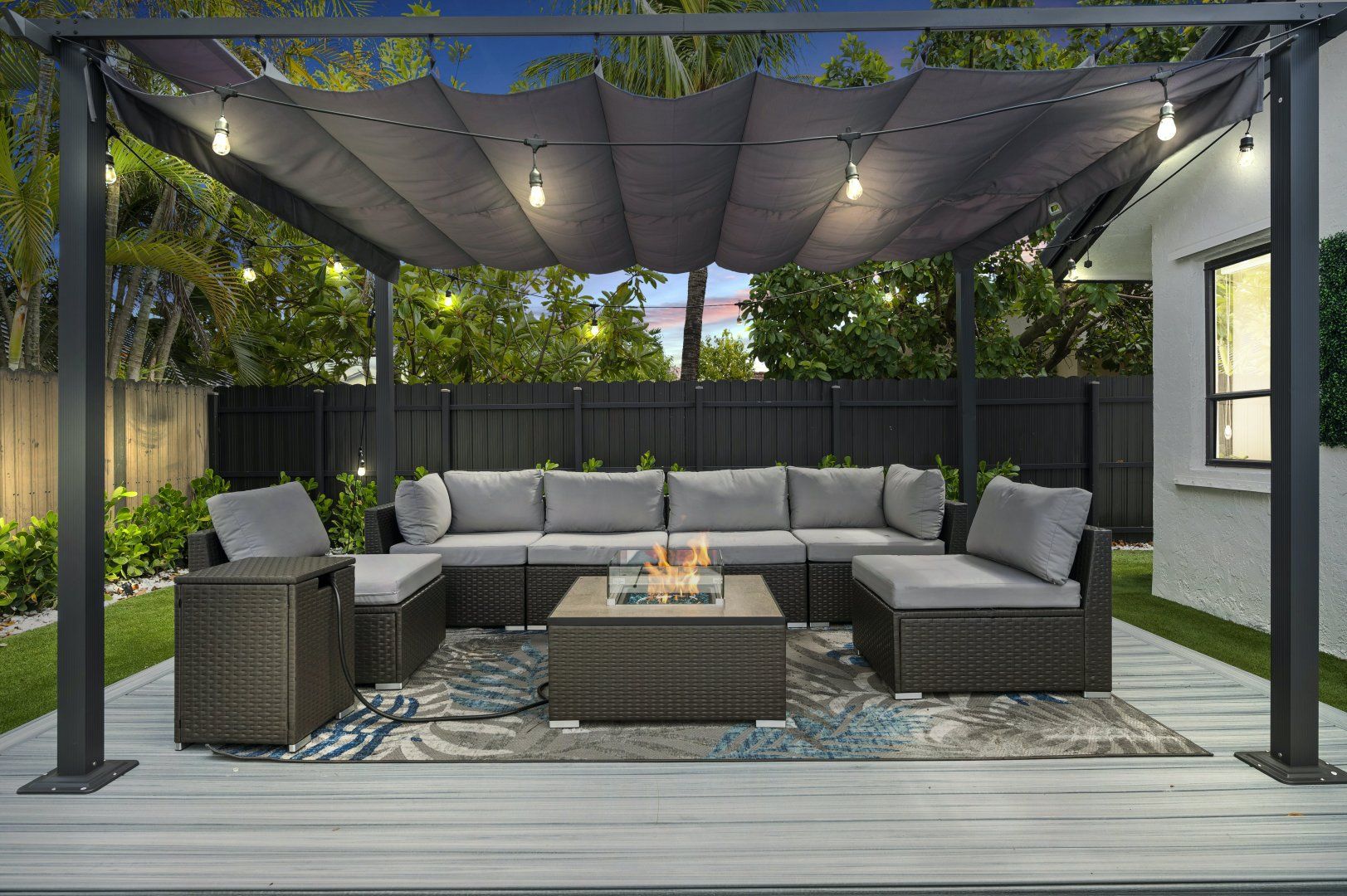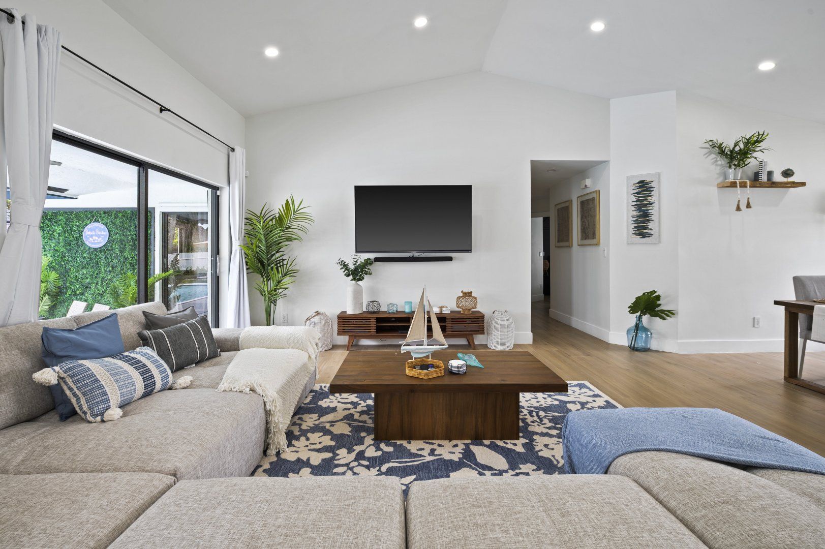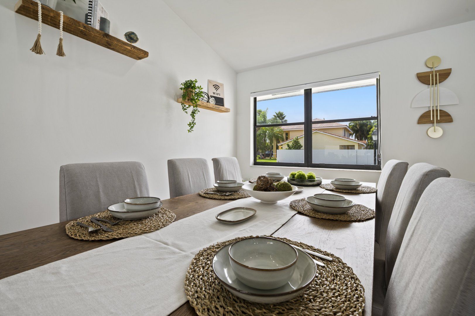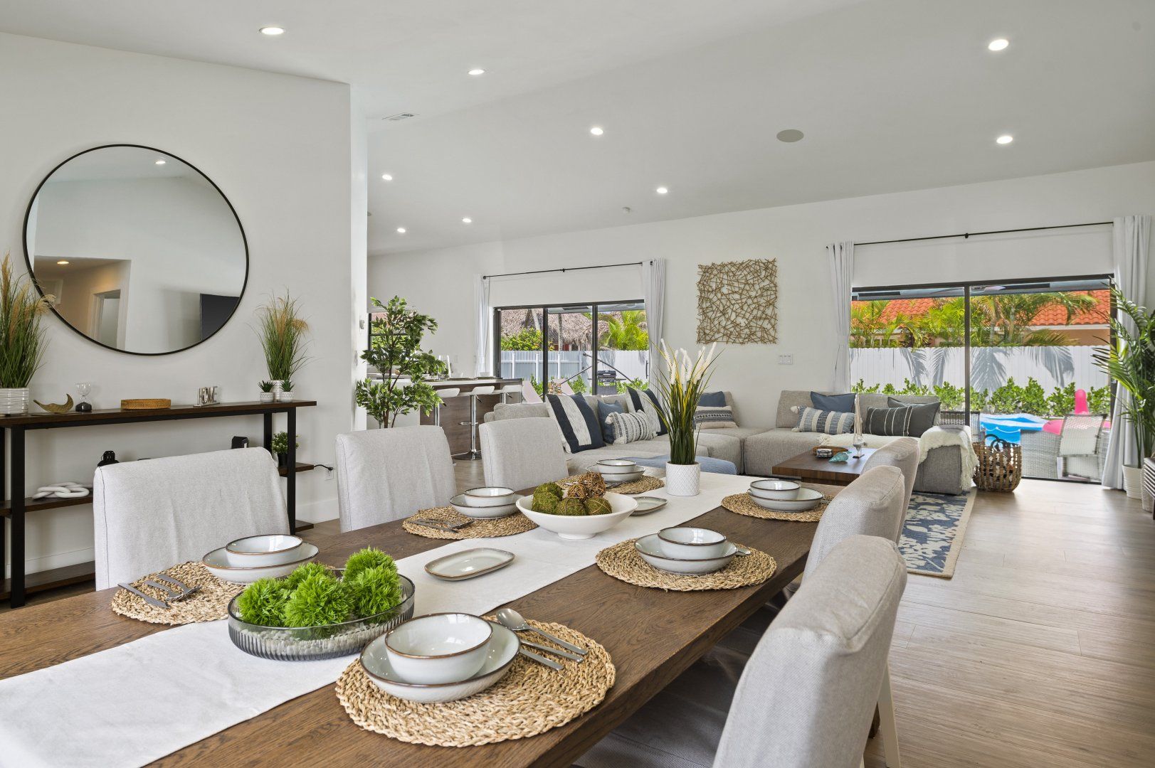 This single-level home is located in a quiet, family-friendly neighbourhood in southern Miami. South Beach and Downtown Miami are a short drive away. The highlight of this place has to be the backyard oasis, complete with a large swimming pool, barbecue grill, fire pit under a pergola, and plenty of space for family fun. Inside, a garage game room features arcade machines and a pool table for group entertainment. It’s bright and light in the open-plan living area and the gourmet kitchen should keep the chef of the group happy.