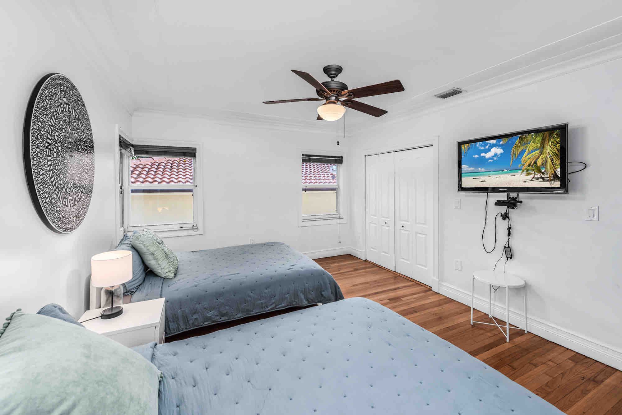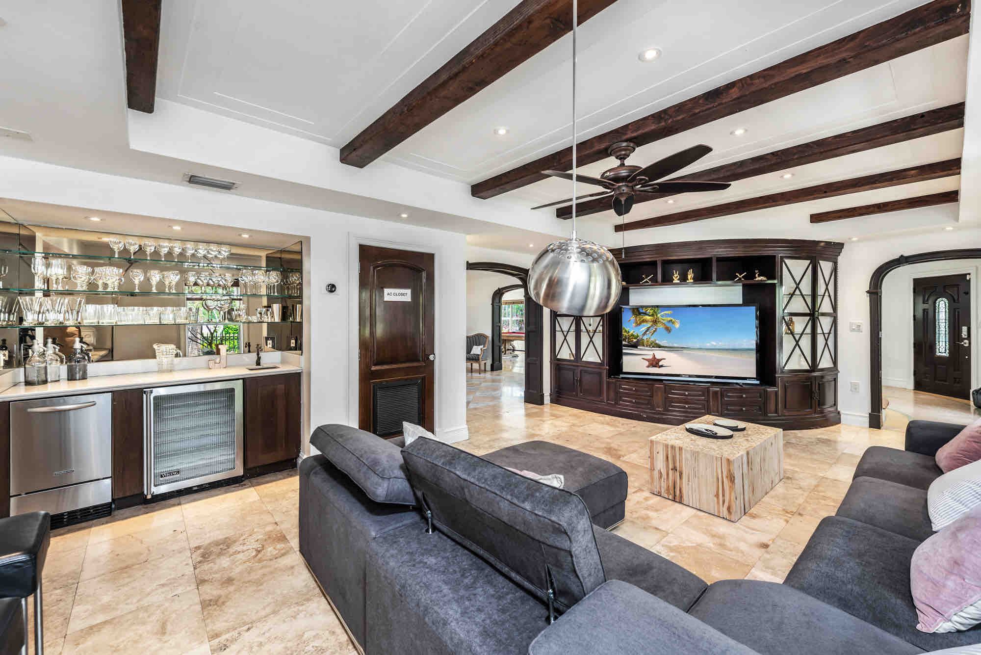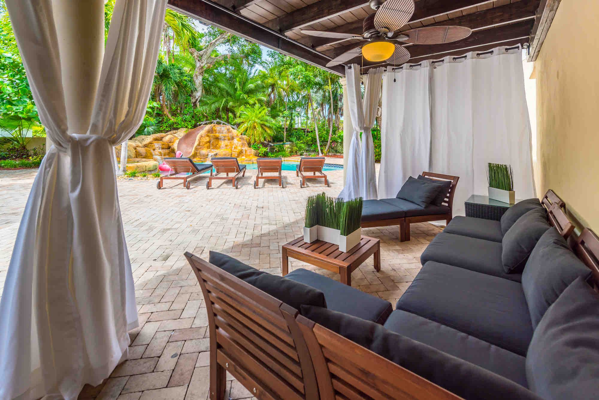 Surrounded by a mature garden rich in mango and palm trees, this Miami mansion is a playground for guests of all ages. The sprawling property offers a little something for everyone, including a home cinema, a private swimming pool complete with a waterfall and slide, a bar area, and a pool table for entertaining. With touches of Tudor architecture and Mediterranean Revival, and enough space to let the kids loose, it is really well-suited for large families, groups of friends, or co-workers on a business retreat.