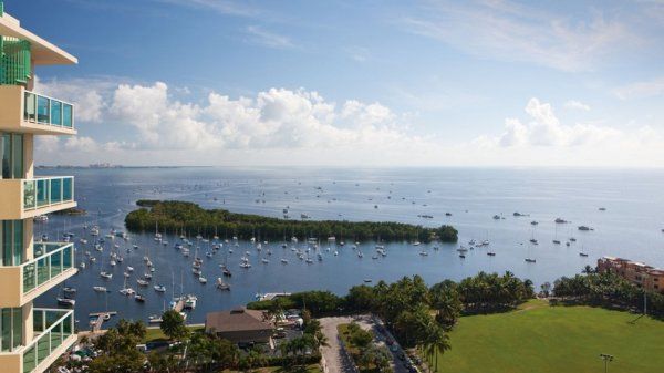 Apartment for short term vacation rental in coconut grove, Miami. Views of Peacock park and the bay. This self catering condo has an on site restaurant and penthouse gym, with racquetball. rent $1600.
