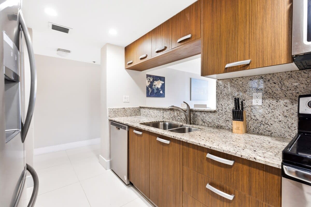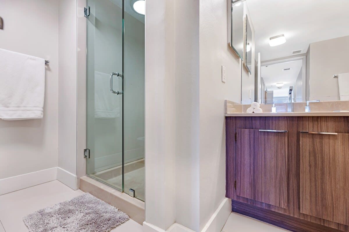 Set high above the city skyline, this one-bed apartment is all about location, location, location. Complete with a private balcony offering ocean views, as well as tonnes of on-site facilities, it's well-suited for those who like lots of amenities. Begin your day with a workout in the shared gym, before enjoying a meal at one of the on-site restaurants. Or, if you want to get out and about, rest assured, you won't be disappointed. Located in Edgewater – a hub of entertainment, nightlife and dining destinations – you'll be spoiled for choice.