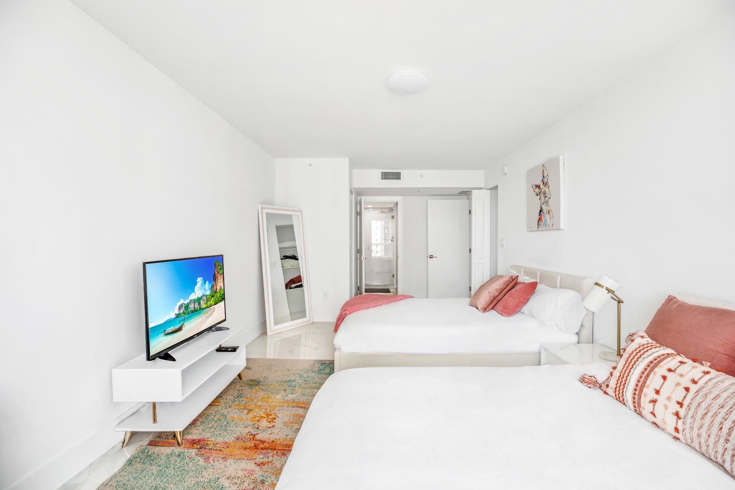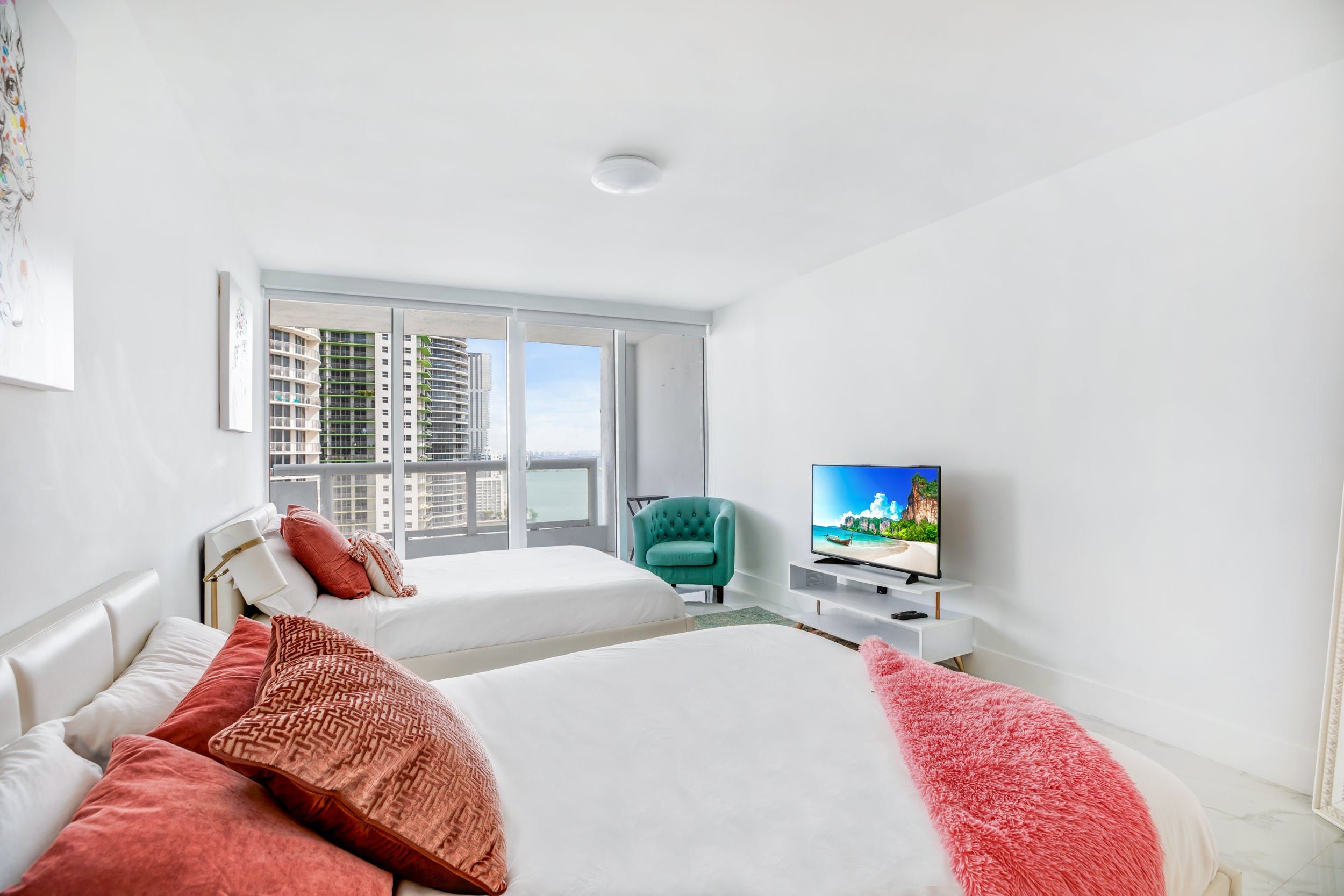 With a brilliant balcony overlooking Biscayne Bay and a resort full of activities, this apartment in the heart of downtown Miami is the quintessential Florida getaway. Pad out to the private balcony each morning with a cup of coffee and watch the boats on the water. We can't fault the view, and thanks to the sliding doors and big windows, you'll be able to make the most of it inside, too. Unwind in the bright living space in the afternoons, snoozing on the cushy white sofas or in the sumptuous beds. Elegant and timeless, the open layout is perfect for groups who want to hang out, cook and dine together. And, come evening, you won't want to miss the sunset over the bay.