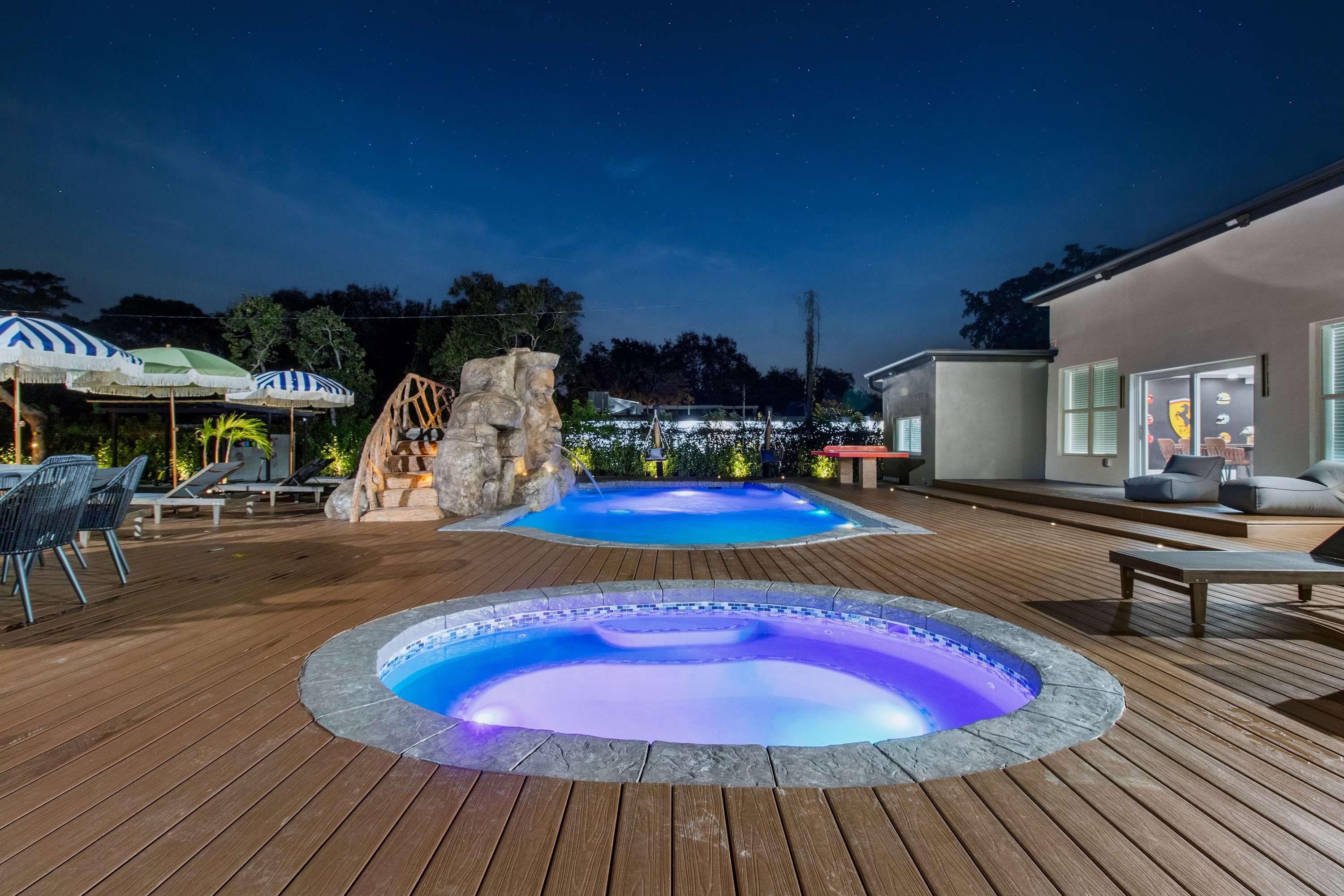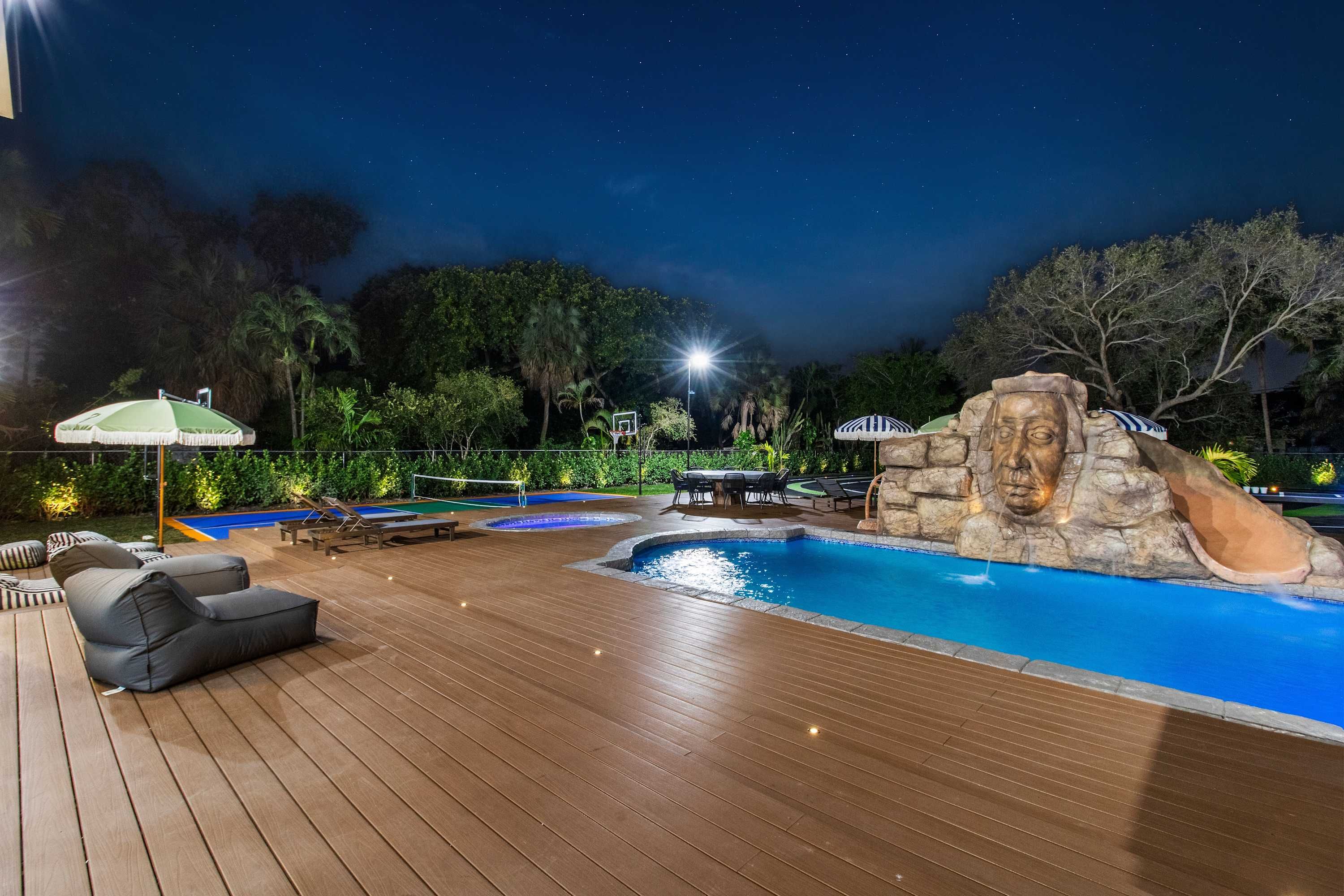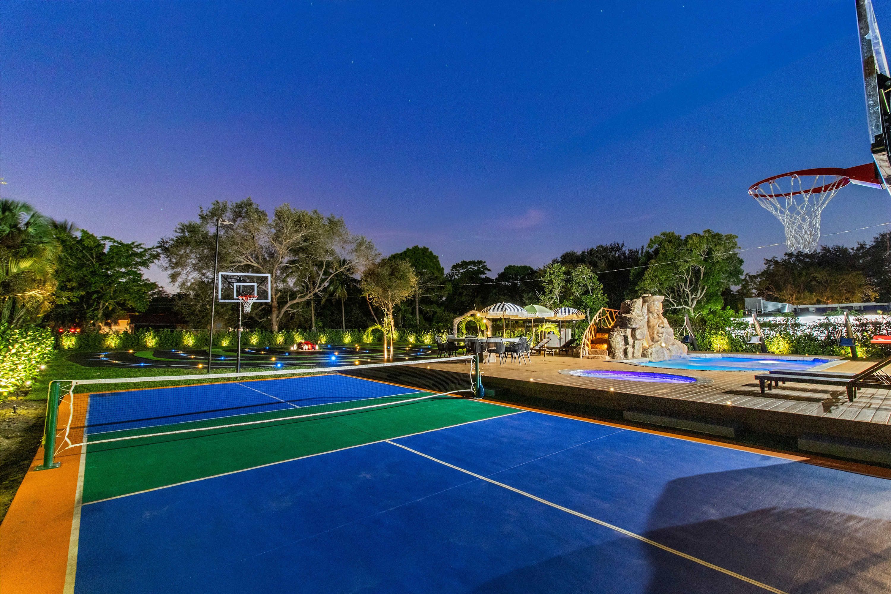 With its own private racetrack, basketball court, ping pong table, heated pool, jacuzzi, and waterslide, this villa rivals even the most activity-packed resorts. Indoors, a snooker table, home cinema, and generous living spaces mean there’s room to relax, play, or gather around the table. The neighbourhood is peaceful and laid-back, with shops and restaurants just a short stroll away, while the beaches and buzz of Miami are only twenty minutes by car. And your pets are welcome to join in on the fun too.