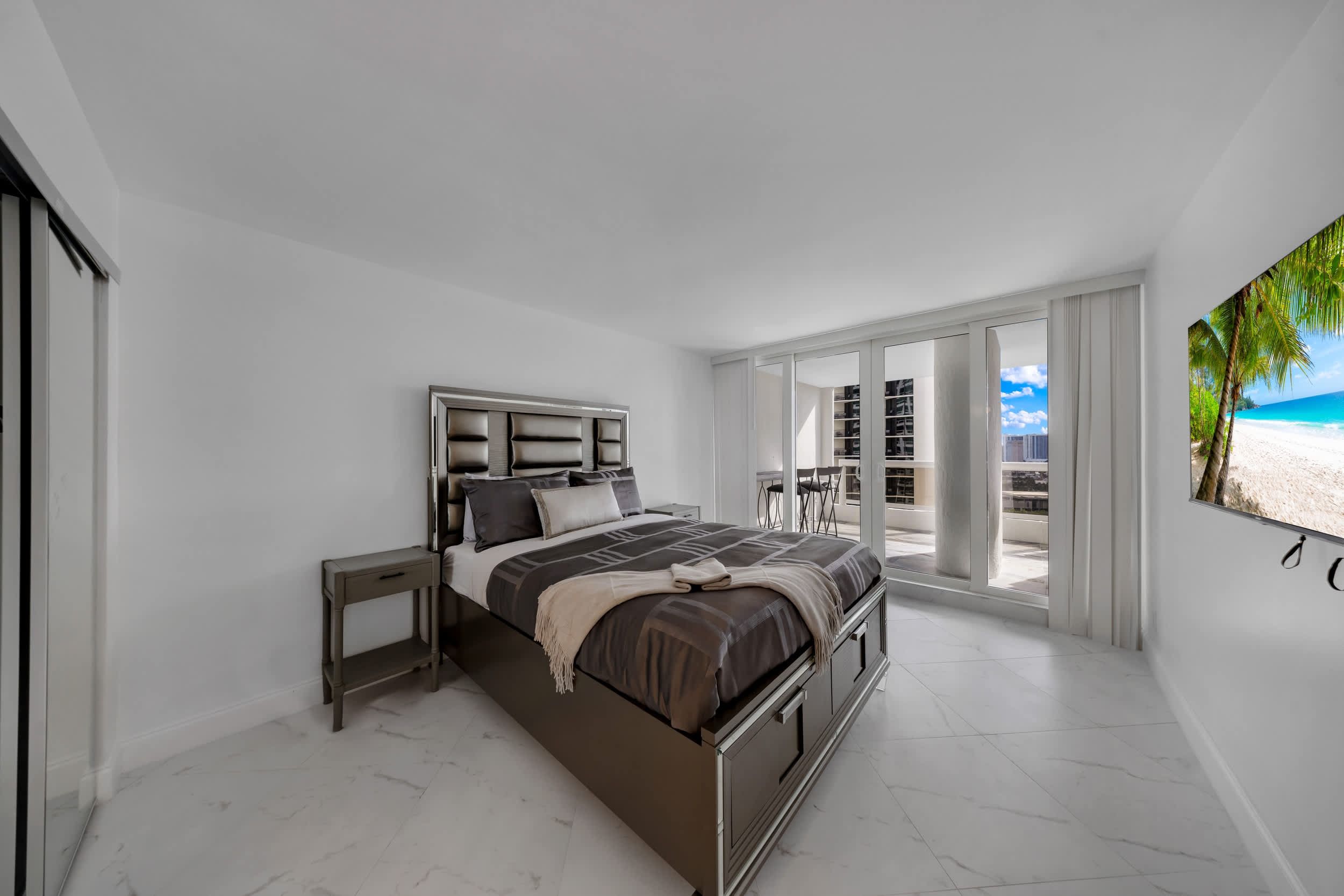 Overlooking the Miami skyline, this contemporary apartment is a cool spot to call home, and just a short drive from South Beach. The light, bright living space opens onto a sunny balcony, while the kitchen is well-equipped for cooking at home (when you’re not busy sampling the local food scene). Stay here and you’ll also have access to some excellent communal amenities, including an Olympic-sized swimming pool (heated and open all year), a modern gym, and onsite shops and restaurants. For an easy, breezy break in Miami, look no further.