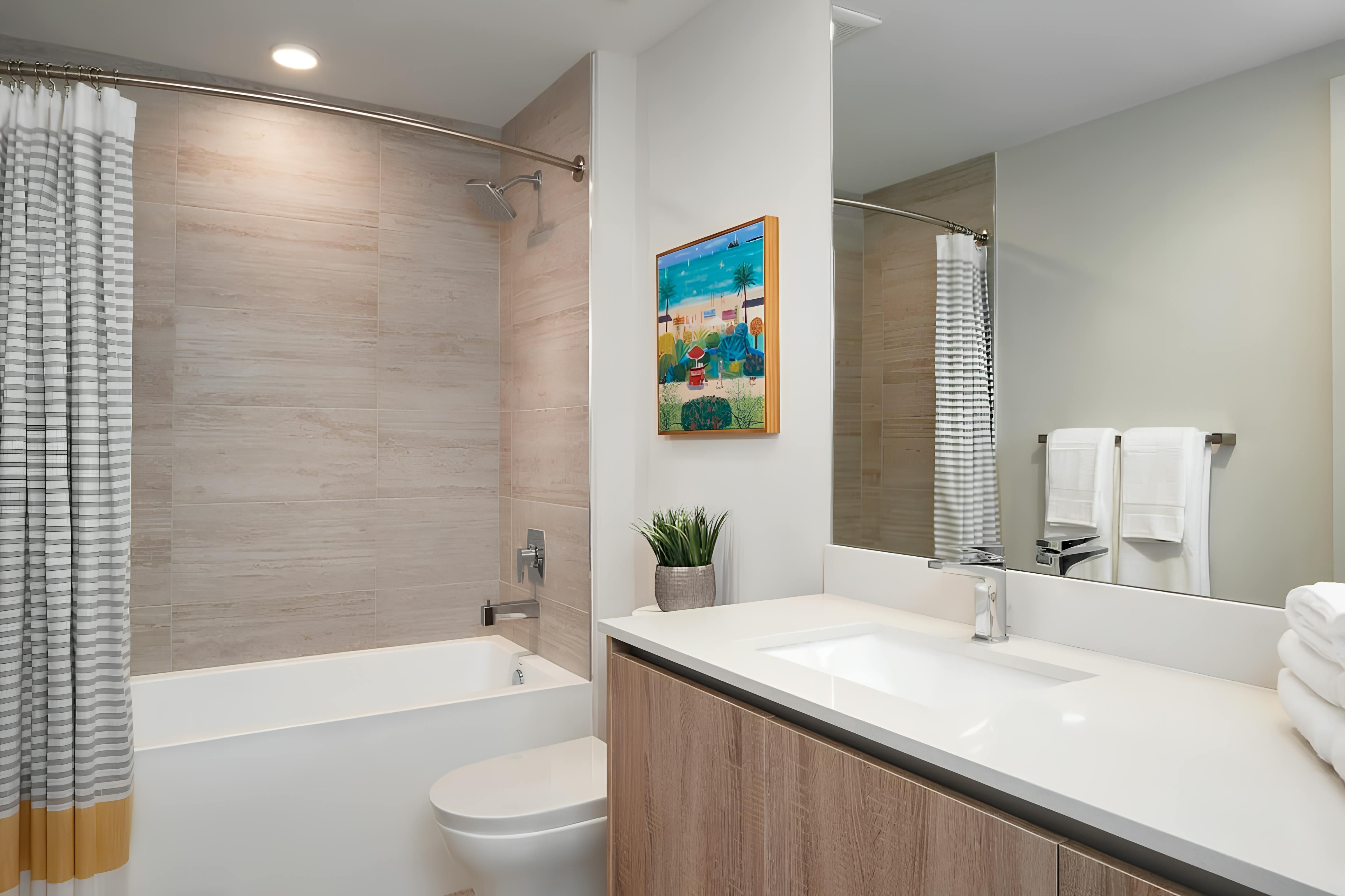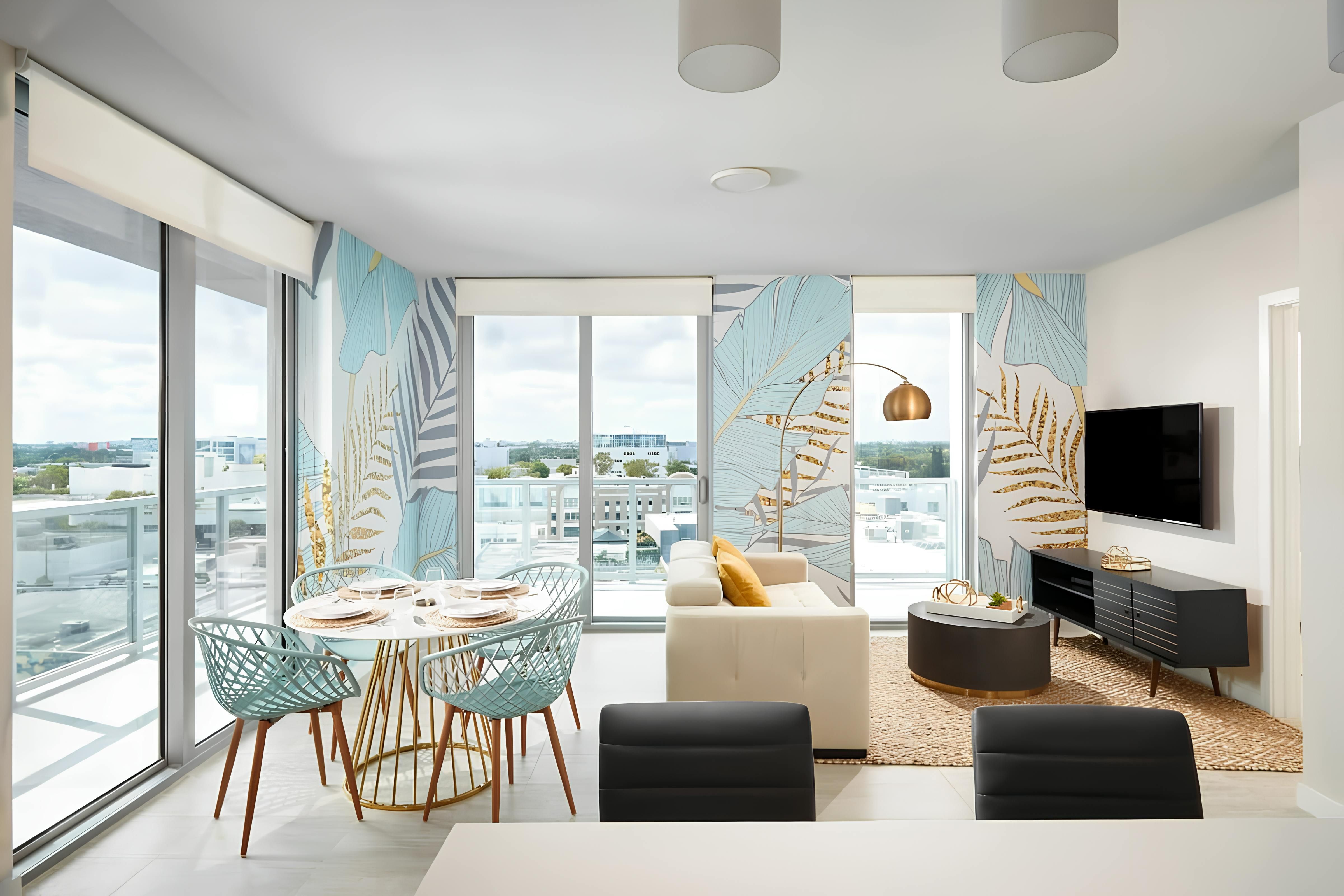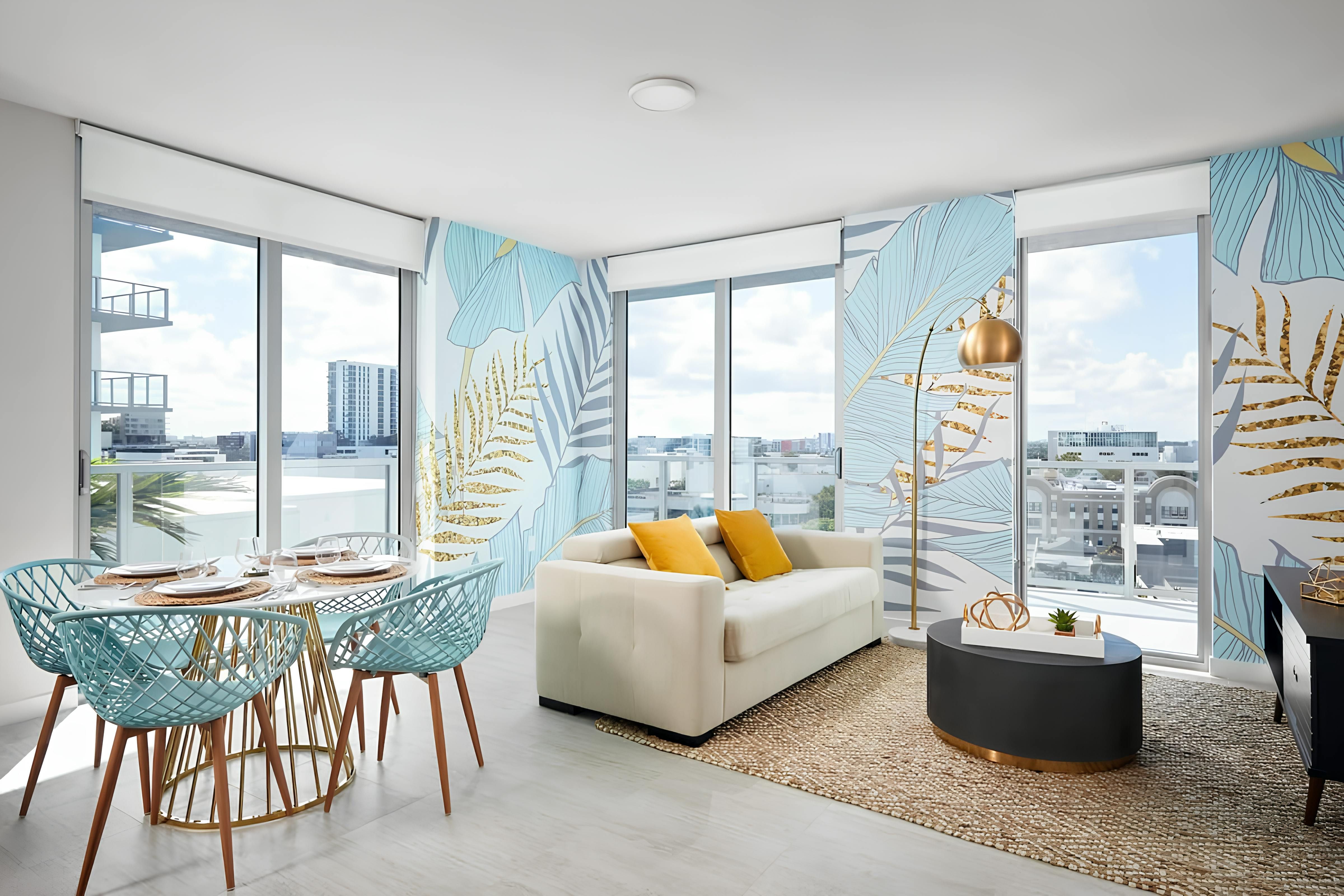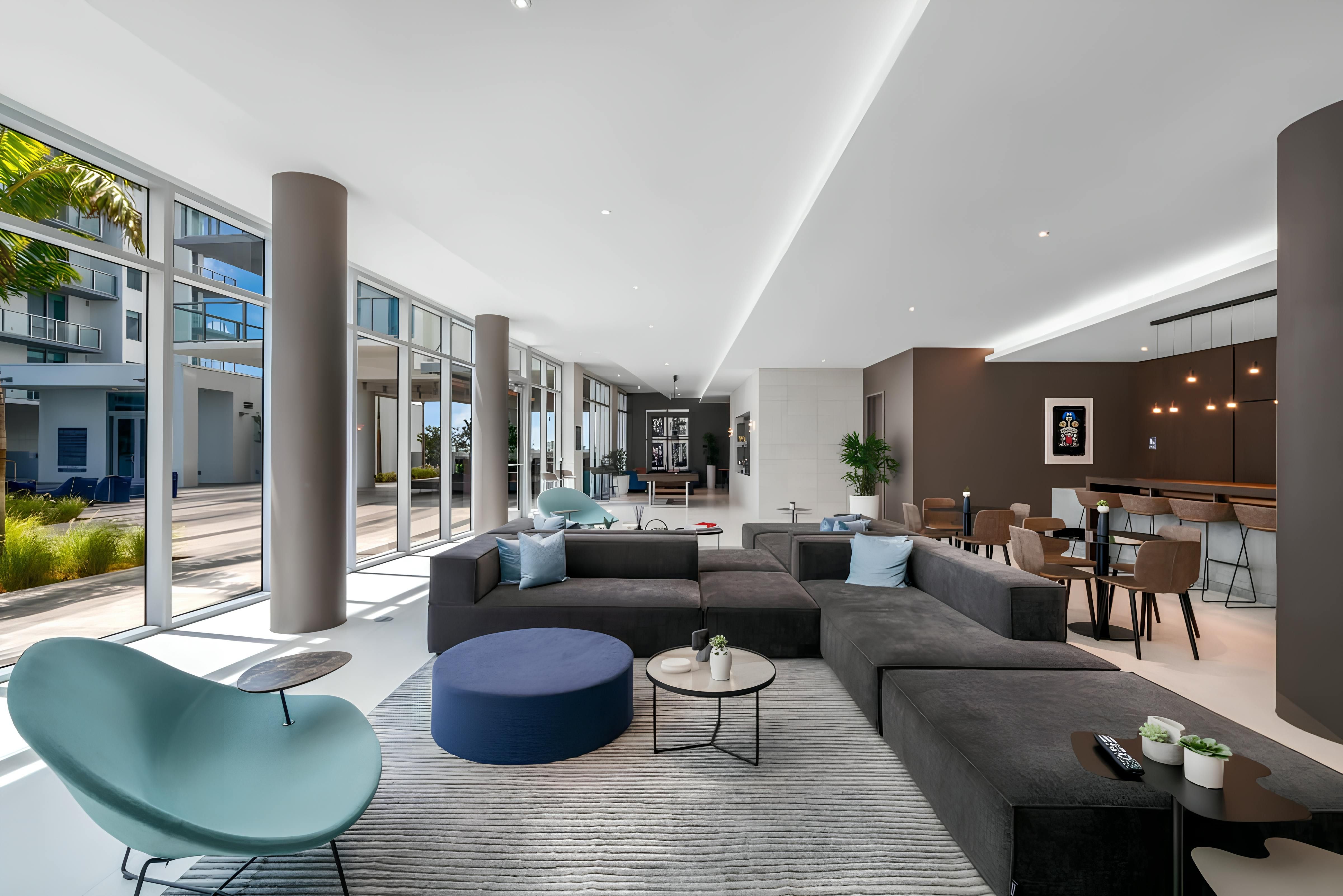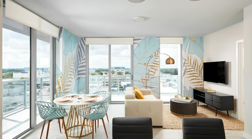 This apartment brings comfort and ease to the vibrant Design District. From the private balcony to the open-plan living room, it’s the perfect spot to switch off and unwind during your city stay. You’ll also have access to the communal swimming pool and there’s a gym as well as a games room and co-working space. And when it comes to location, you’ll find everything you could need within easy reach. From here, it’s a short stroll to restaurants, shops, cafes and galleries in Wynwood and Midtown. It’s also just a fifteen-minute drive to Miami Beach.