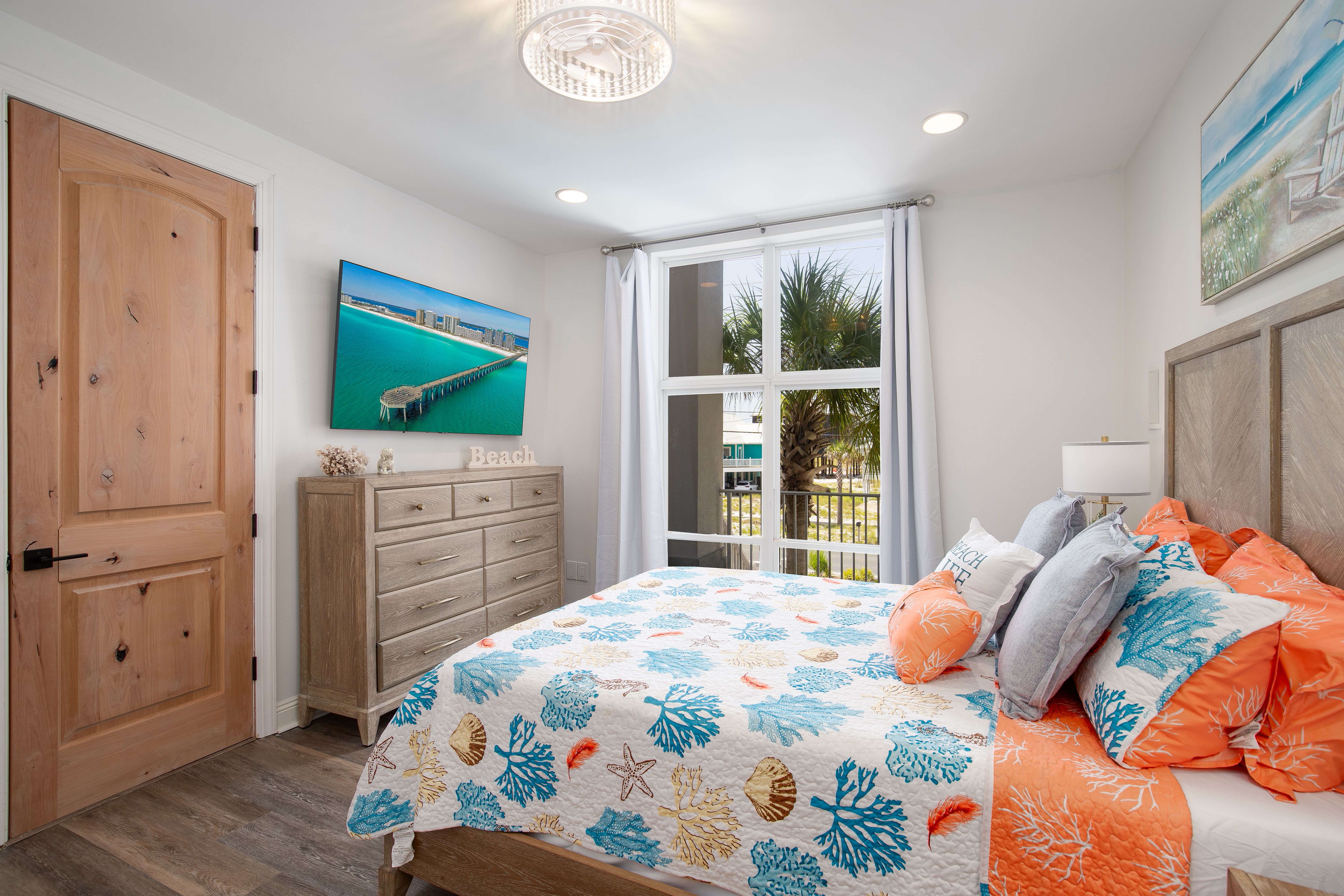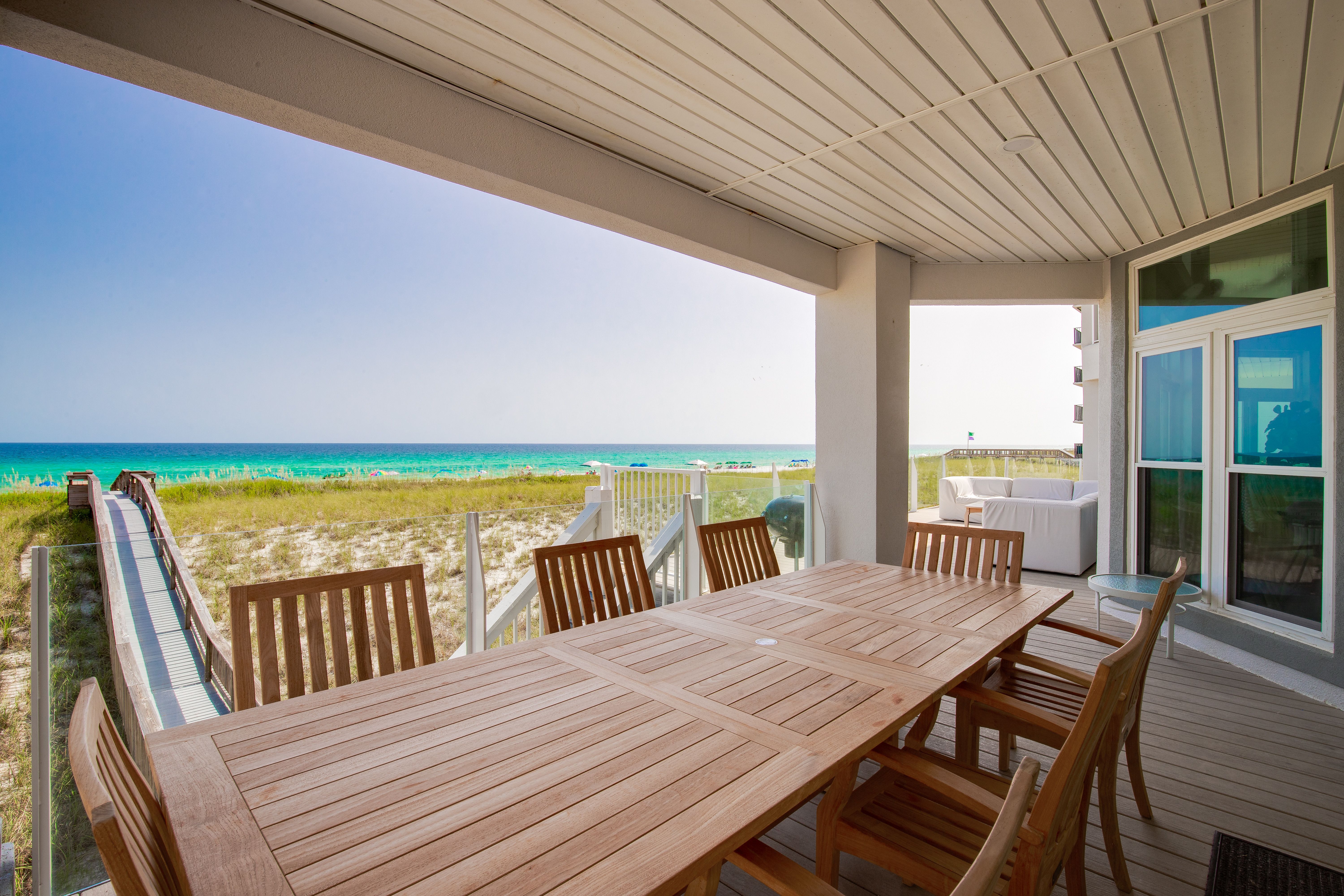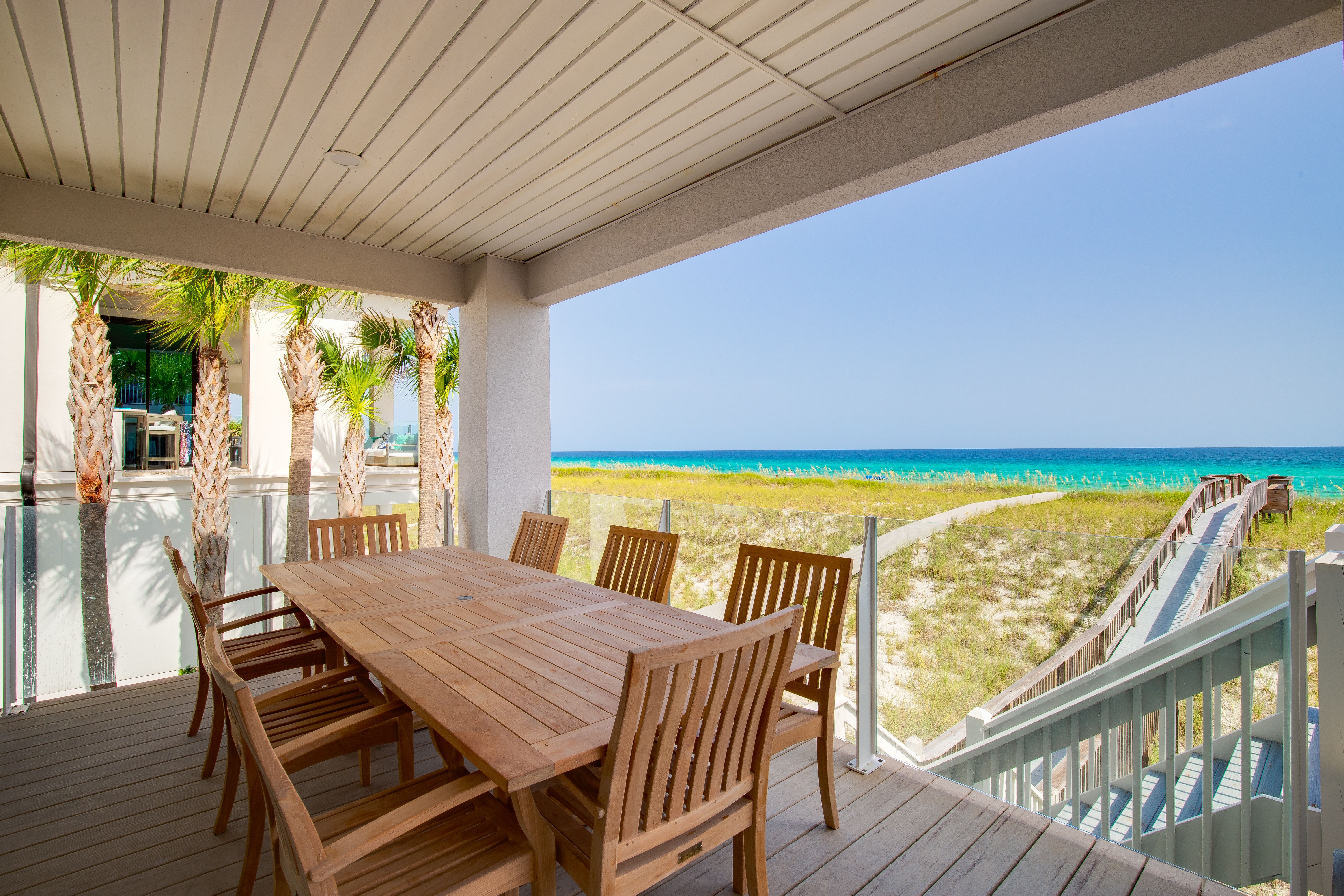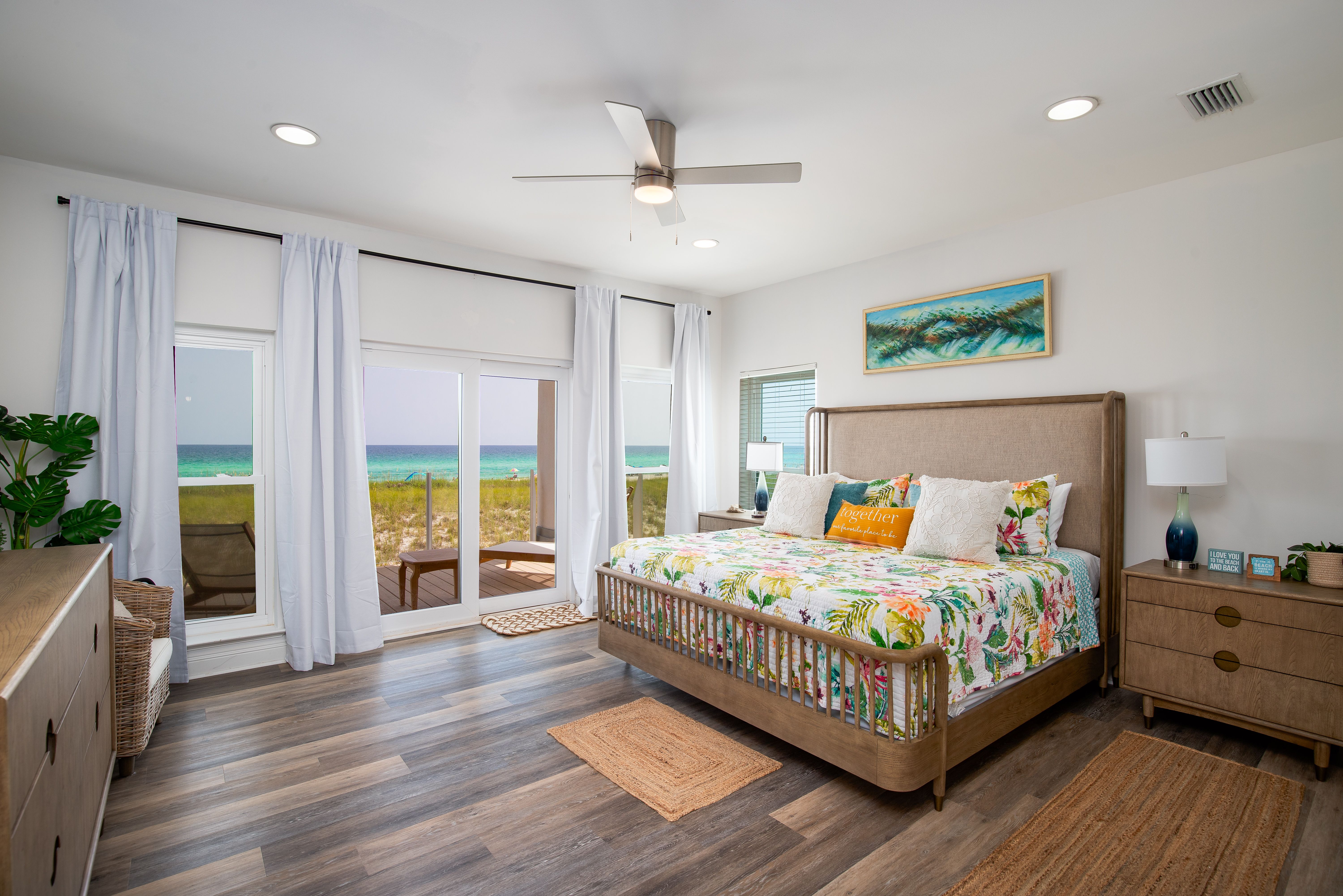 This beachfront home is a dream setting for retreats, weddings, or simply a relaxing getaway. Set in front of Navarre's crystal-clear waters, the outdoor living spaces are all about those sunrise and sunset views, with dolphins and Blue Angels flyovers often in sight. A private walkway leads straight to the beach, making it easy to host gatherings on the sand. Inside, the living space features high ceilings and big windows that maximise the views. Several bedrooms offer private balconies overlooking the bay. You’re about a half-hour walk to beachfront restaurants and bars, or a short drive to explore more of Navarre.