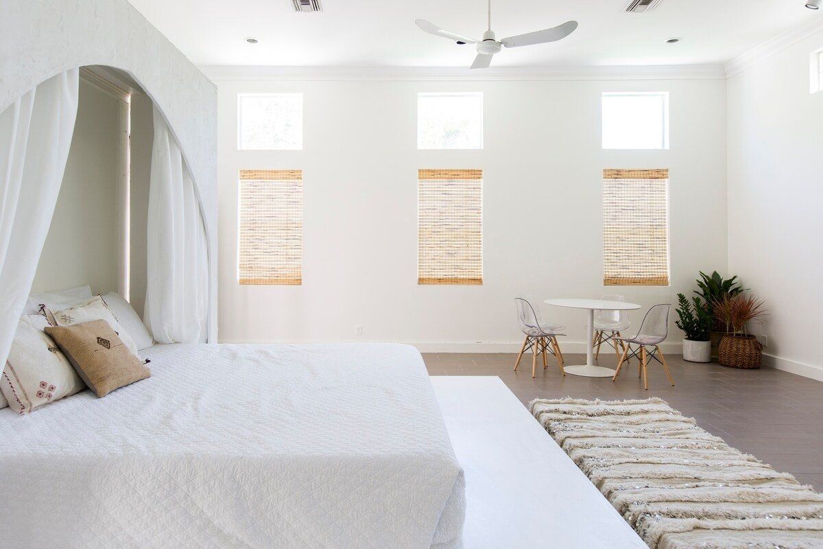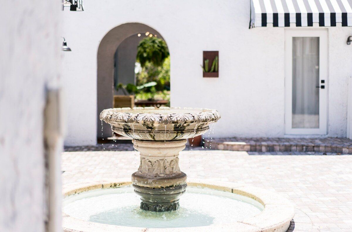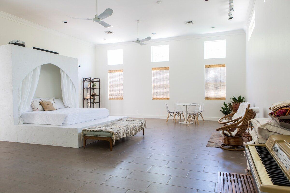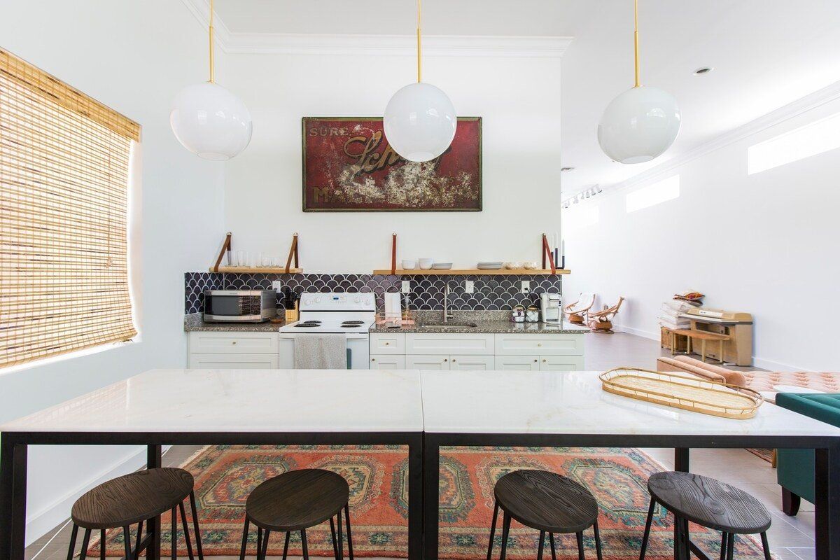 Utterly Instagrammable, this delightfully designed studio space offers you the perfect getaway in West Palm Beach. The layout is open plan, in a warehouse-style space that looks modern on the inside and Mediterranean on the outside. High ceilings, white-painted walls, stone floors and minimal furniture create a fresh and bright feel, perfect for long-sunny days. Every element of this home feels both elegant and personal, and there are plenty of different areas for sitting and relaxing. We especially loved the bed, which celebrates Islamic design and feels fit for a sultan. This royal-feel is carried into the outside, where there is an ornate water fountain and gorgeous courtyards. You will also find an orchid garden and two custom cedar picnic tables, where you can dine alfresco with other guests. Though this space feels secluded, it's right in the heart of West Palm Beach and a two-minute drive or ten-minute walk to West Palm Beach Golf Course. If you fancy a day on the area's gorgeous sands, a number of beaches, such as Boynton Beach, are around a ten-minute ride away.