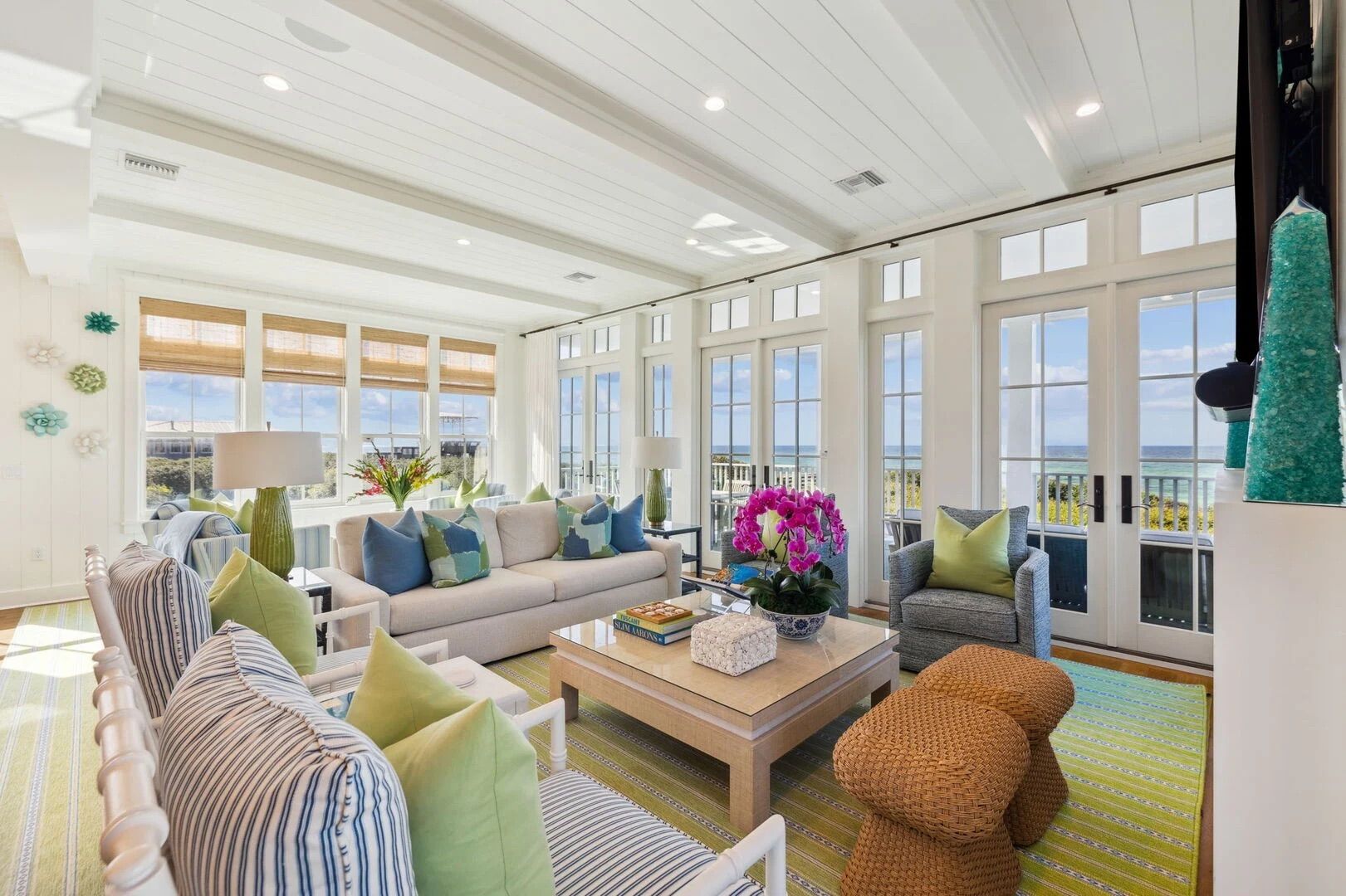 With its toes in the sand of Florida’s Emerald Gulf Coast, this beachfront abode guarantees an unforgettable holiday for any family or group of friends. Cruiser bicycles are provided for leisurely rides around the neighbourhood or to the communal pool, and there are two beach kits at your disposal for days spent relaxing by the water. Back at the home, the outside spaces offer front row seats to stunning sunsets and the gourmet kitchen has everything you need for cooking up a feast.