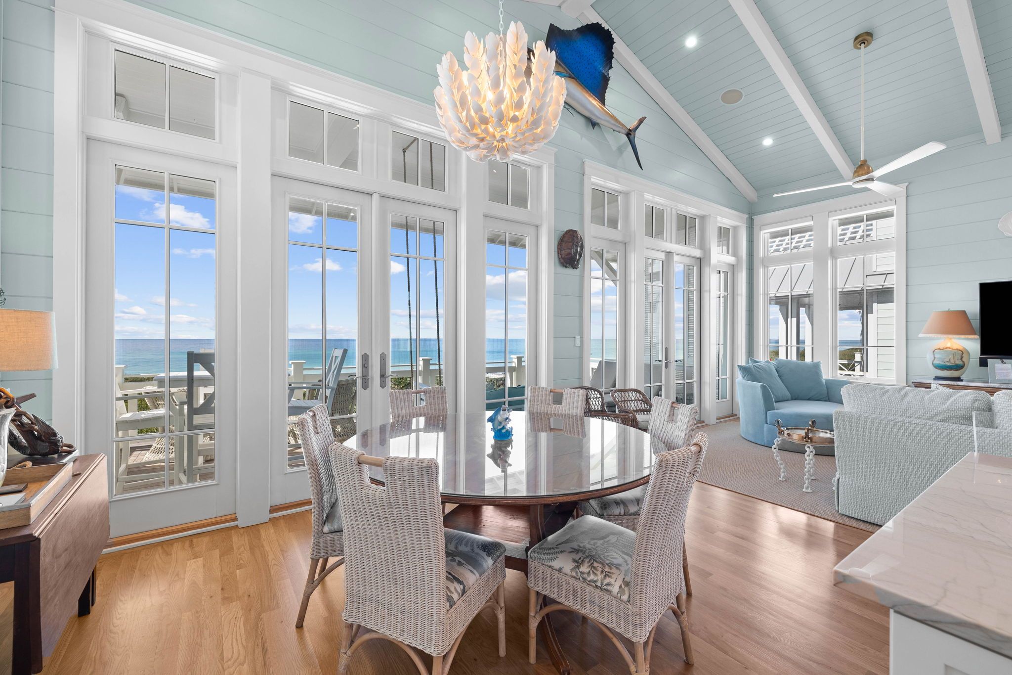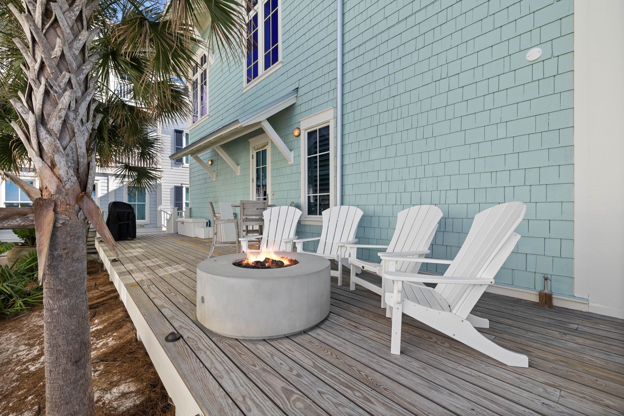 This coastal retreat captures the spirit of Emerald Coast living, pairing cosy design features with sweeping seaside views. Inside, the gourmet kitchen flows into a light-filled living and dining space designed for slow mornings and sociable evenings. Step outside to find breezy balconies, chaise lounges, and a fire pit made for sunset gatherings. Your stay gets you access to the resort’s pools, beach access and amenities, too.