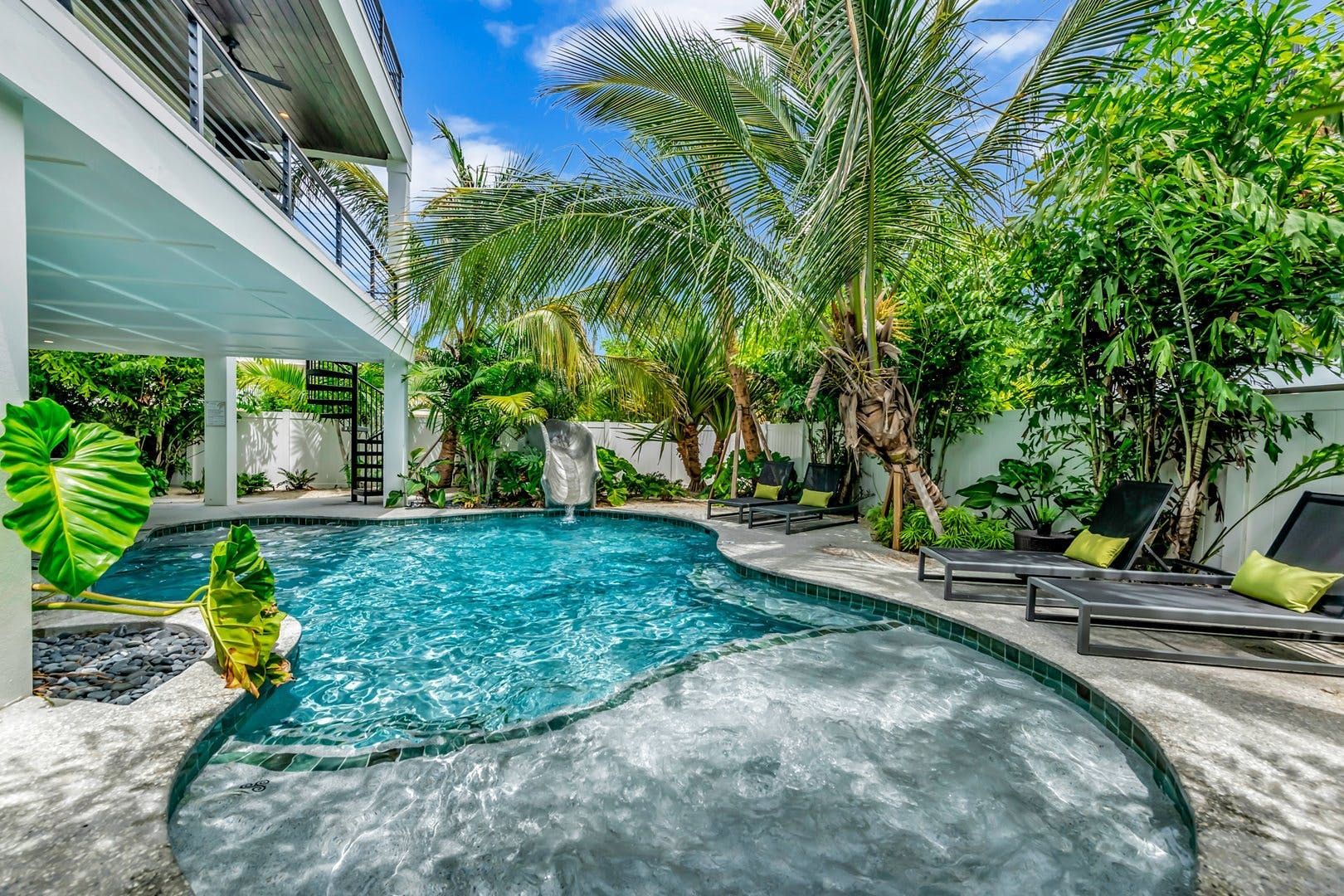 Perfect for big groups, this home is equal parts fun and relaxation. You'll have a pool with a slide and spa, a games room, barbecues, balconies, and a rooftop terrace for sunset cocktails. Spread over three floors with large living spaces, a clubhouse, and an internal lift, there’s room for everyone to spread out. Getting around is easy – there’s parking for four cars, four bikes included, and you’re within walking distance of the beach and St. Armands Circle. For more to explore, downtown Sarasota’s restaurants, bars, boutiques, and marinas are just a short drive away.
