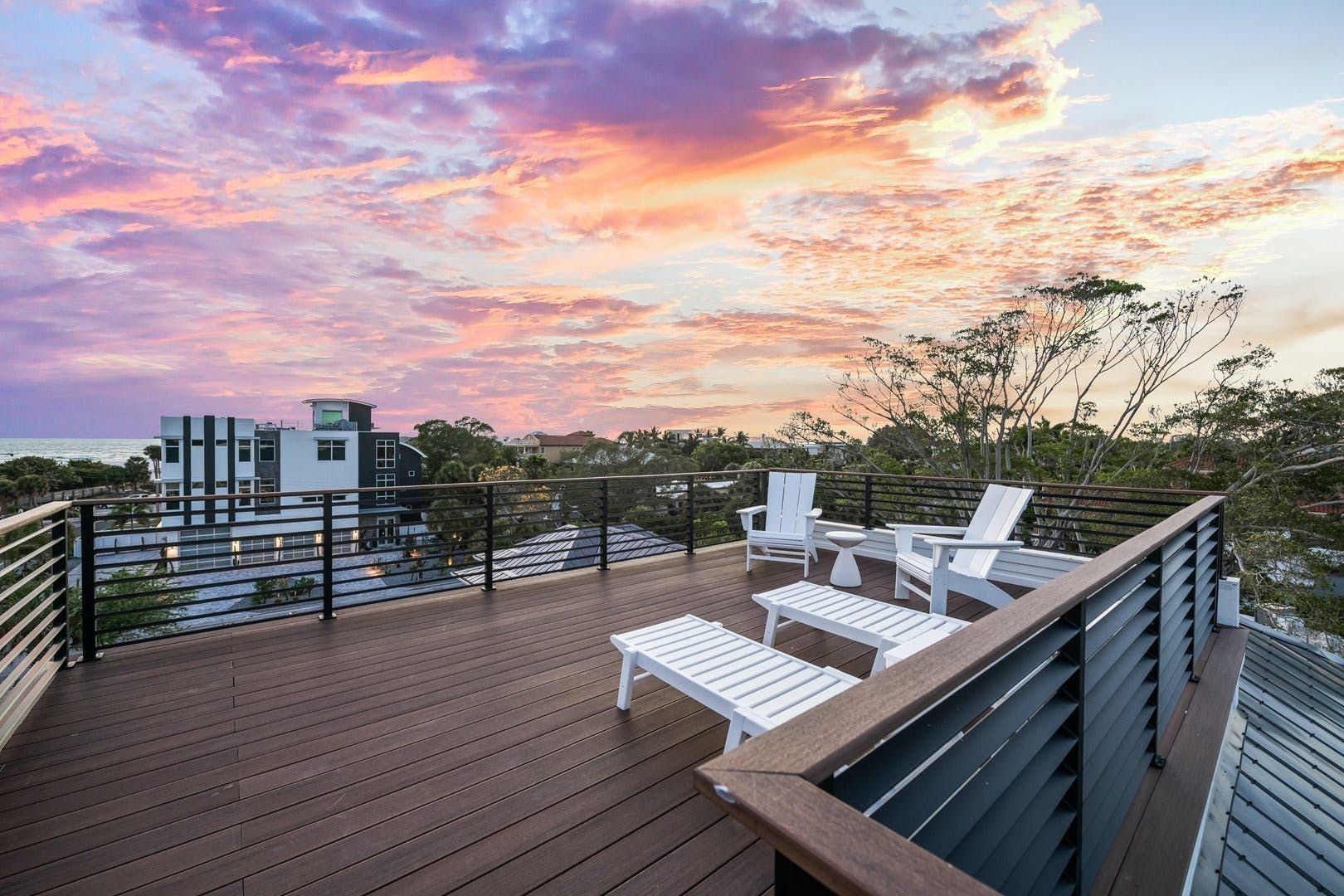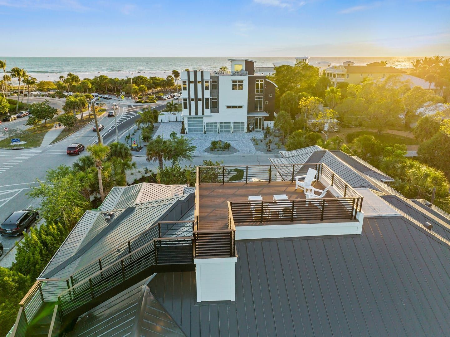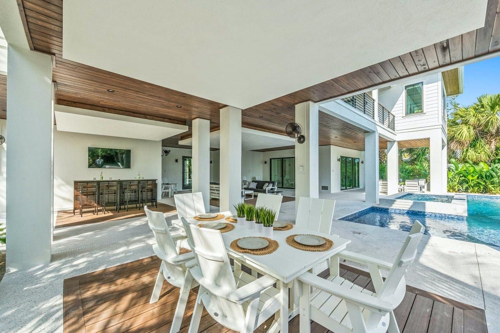This stunning home couldn’t be better equipped for a beach getaway with friends or family. The location couldn’t be better – right on the waterside, you can make use of the private dock (there’s a kayak and paddleboard provided) and it’s just a short walk to Lido Key beach. Don’t worry about bringing the beach gear with you, as this home comes with beach wagons, beach chairs, and coolers. At home, there’s plenty of space to unwind, including in the saltwater pool, garden, and rooftop terrace, and kids will love the games room with its multi-sports simulator and ping-pong table. Evenings call for barbecues on the terrace, complete with a beautiful sunset view over Sarasota Bay.
