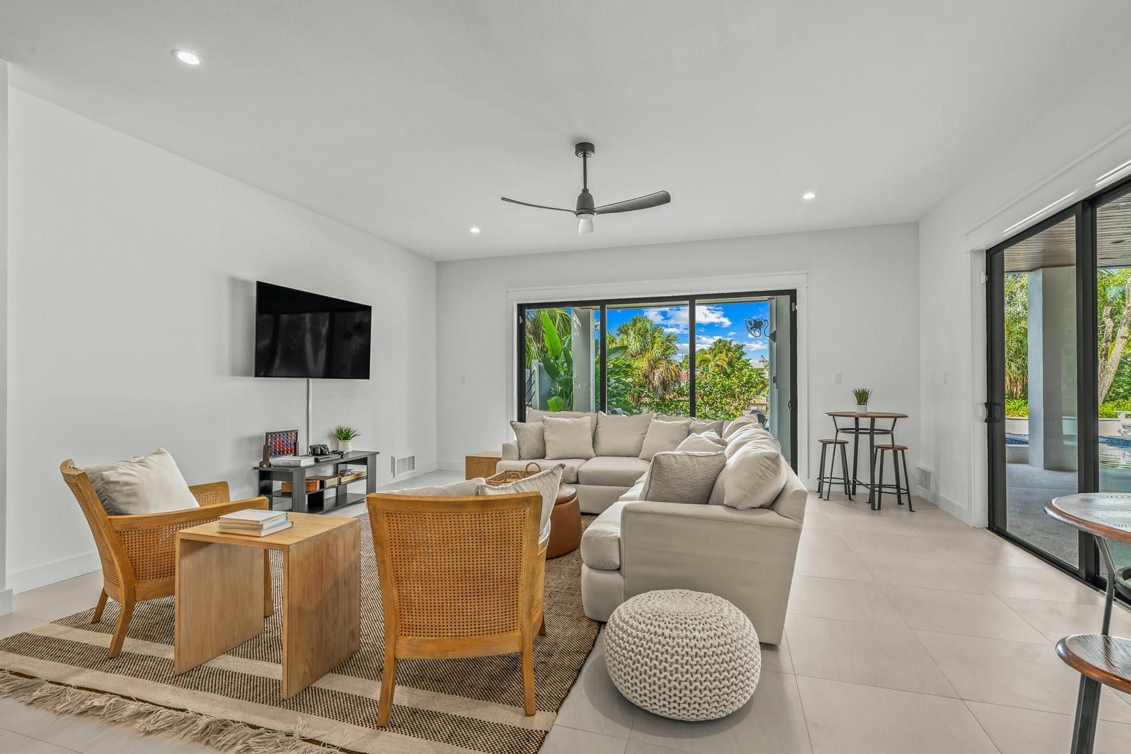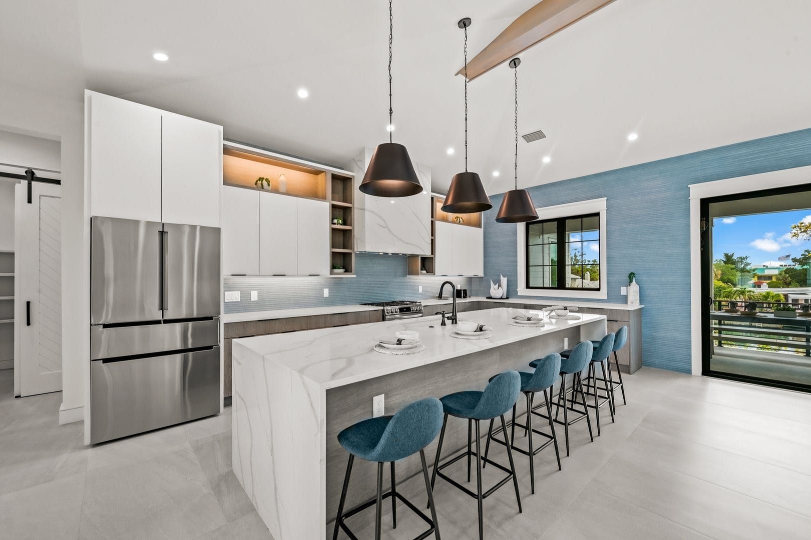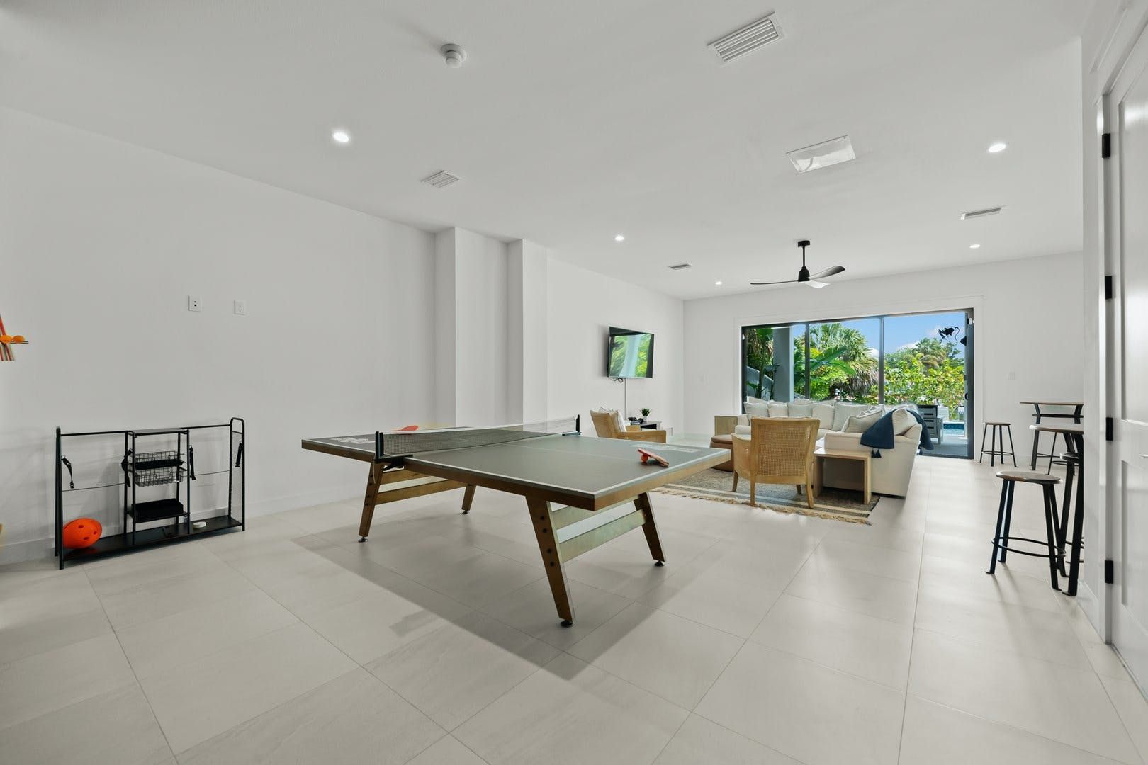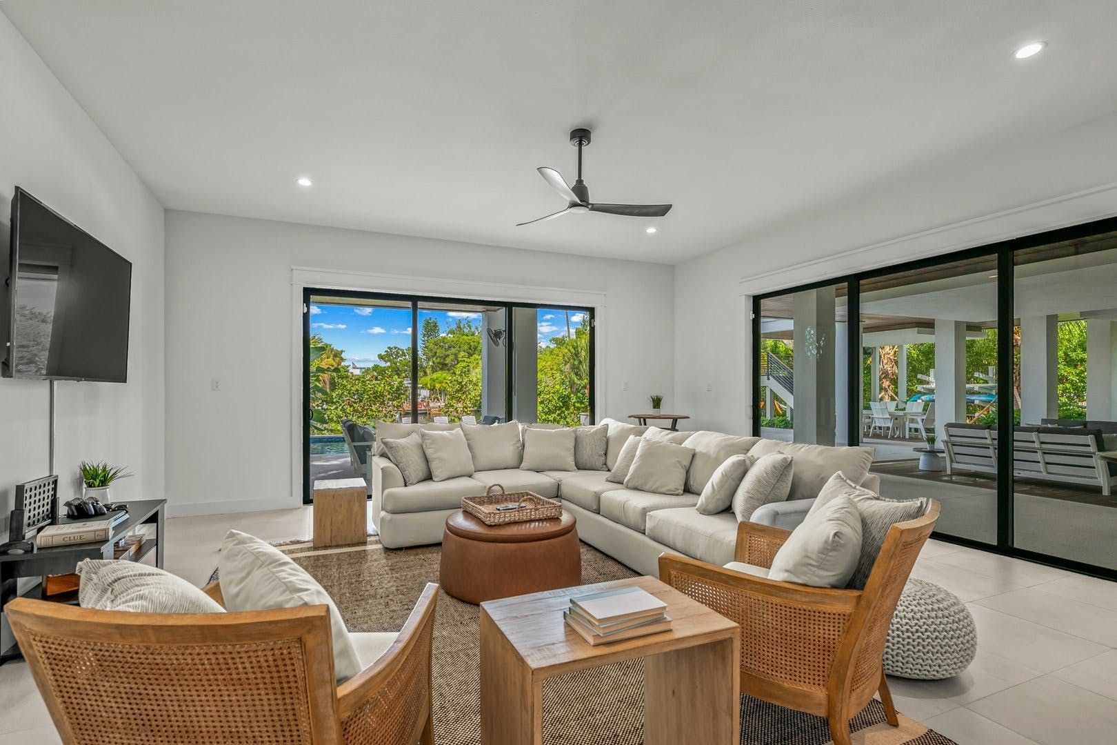 This stunning home couldn’t be better equipped for a beach getaway with friends or family. The location couldn’t be better – right on the waterside, you can make use of the private dock (there’s a kayak and paddleboard provided) and it’s just a short walk to Lido Key beach. Don’t worry about bringing the beach gear with you, as this home comes with beach wagons, beach chairs, and coolers. At home, there’s plenty of space to unwind, including in the saltwater pool, garden, and rooftop terrace, and kids will love the games room with its multi-sports simulator and ping-pong table. Evenings call for barbecues on the terrace, complete with a beautiful sunset view over Sarasota Bay.