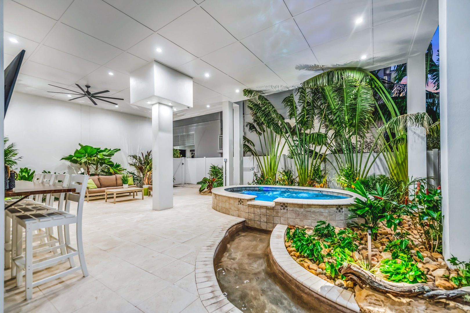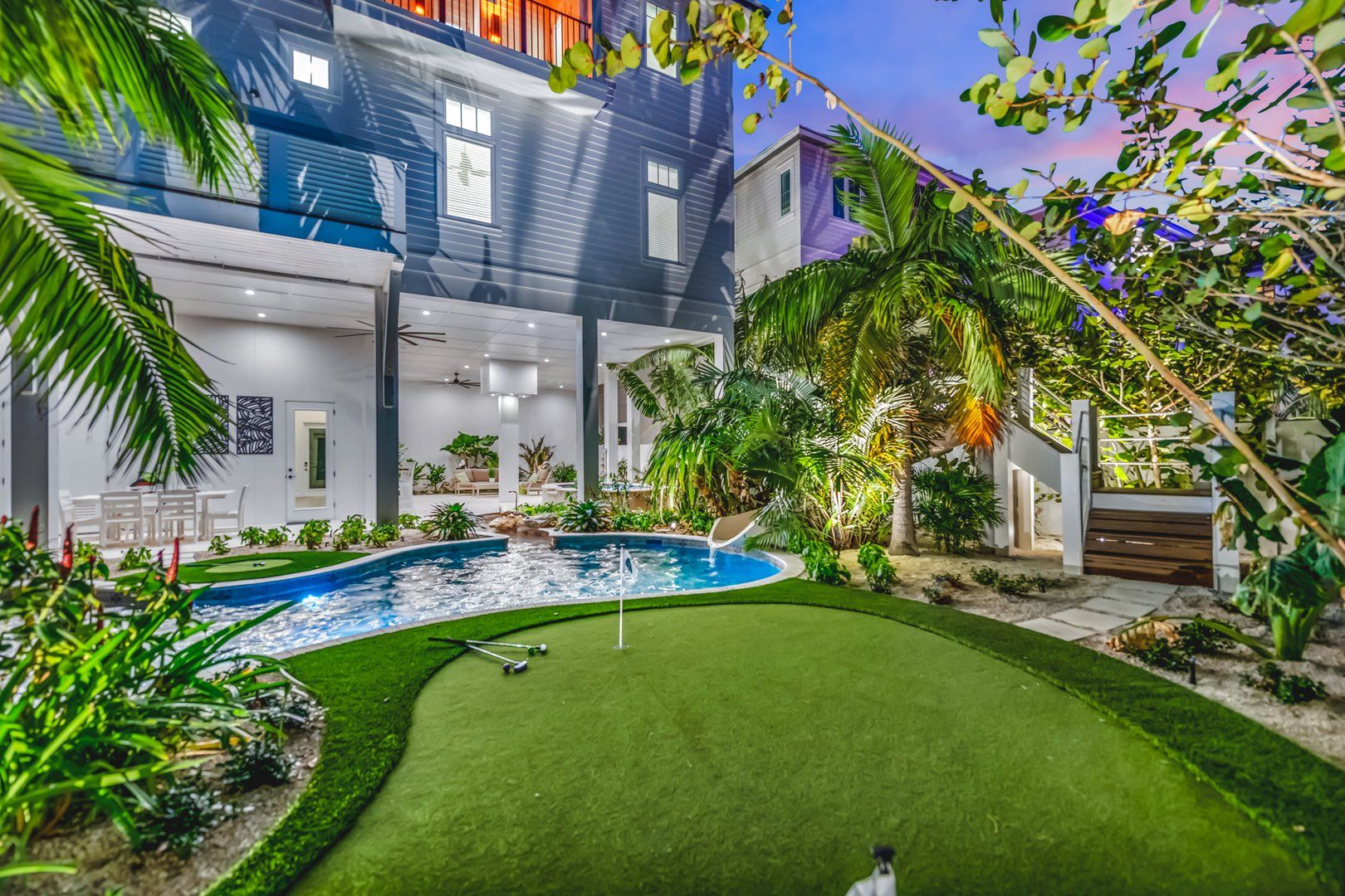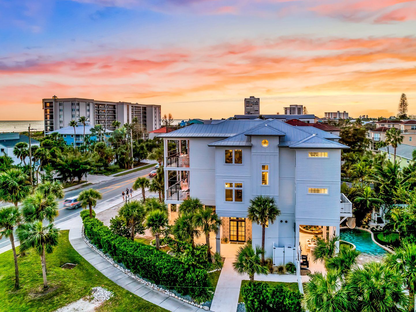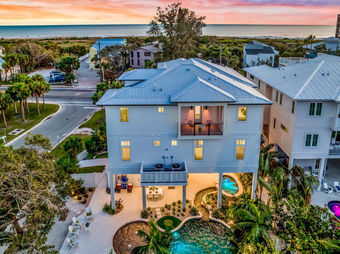 This nearly beachfront, Siesta Key luxury rental home features views of Siesta Key Beach and the Gulf of Mexico from multiple levels and the rooftop deck. This Siesta Key luxury rental is just steps to Siesta Key Beach and only a 3-minute walk to Siesta Key Village. This luxury vacation rental on Siesta Key also has a trolley stop nearby as well for another mode of free transportation. The location simply cannot be beat. This home offers approximately 4,800 square feet of interior living space and 3,000+ square feet of outdoor covered patios, balconies, pool areas, and entertainment space.
