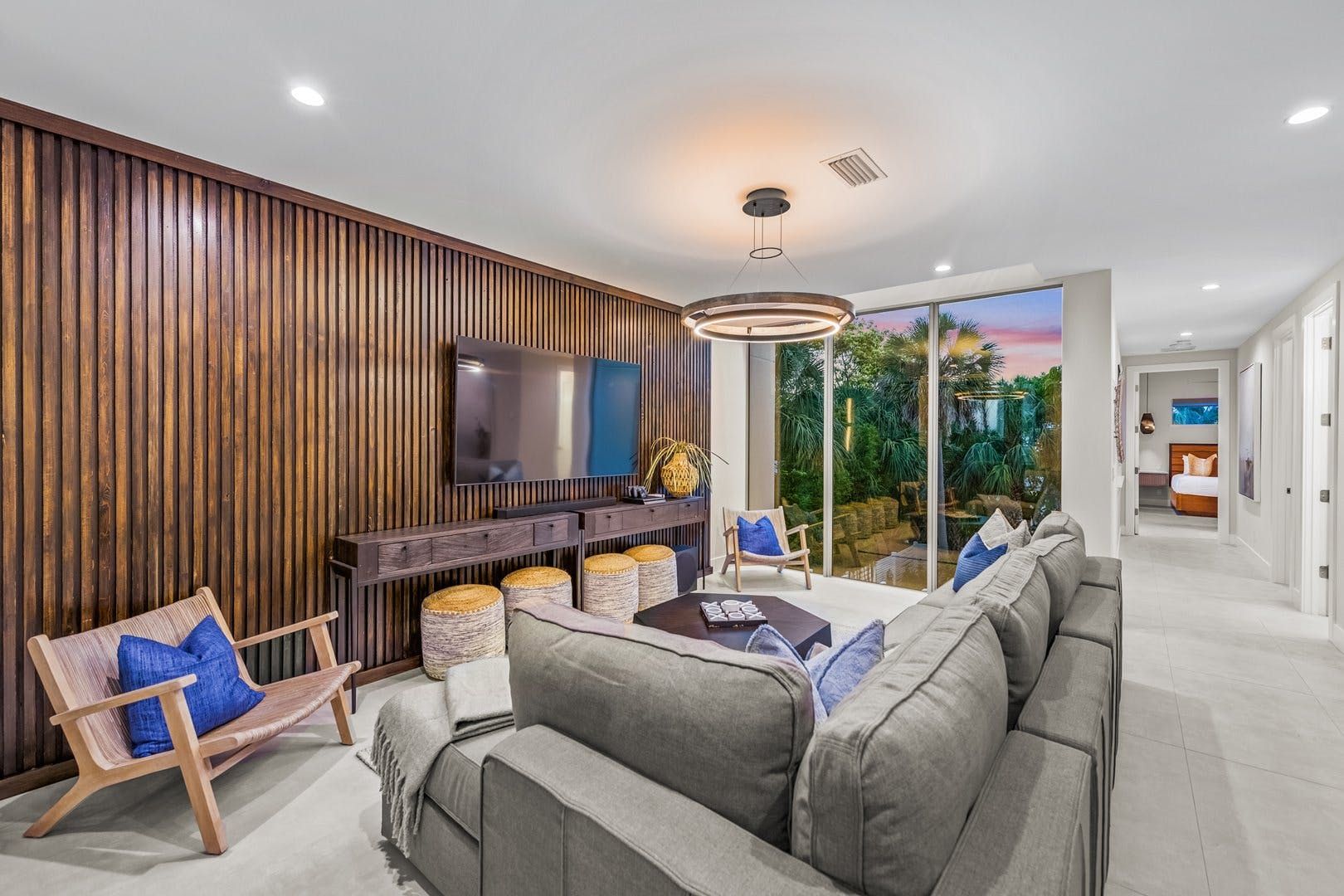 From the saltwater pool to the impressive rooftop deck, this home is a coastal sanctuary with a lot to offer. There’s an outdoor kitchen with incredible views and plenty of games to keep the whole family entertained. Inside, there’s a lift connecting the three floors and you’ll all find all of the bedrooms come with en-suite bathrooms for optimum privacy. It’s also in a fantastic location with Siesta Key Beach just moments away. You can stroll to the nearest restaurants, shops and local attractions. Plus, there’s a free trolley service that runs across the area – making it easy to explore further afield.