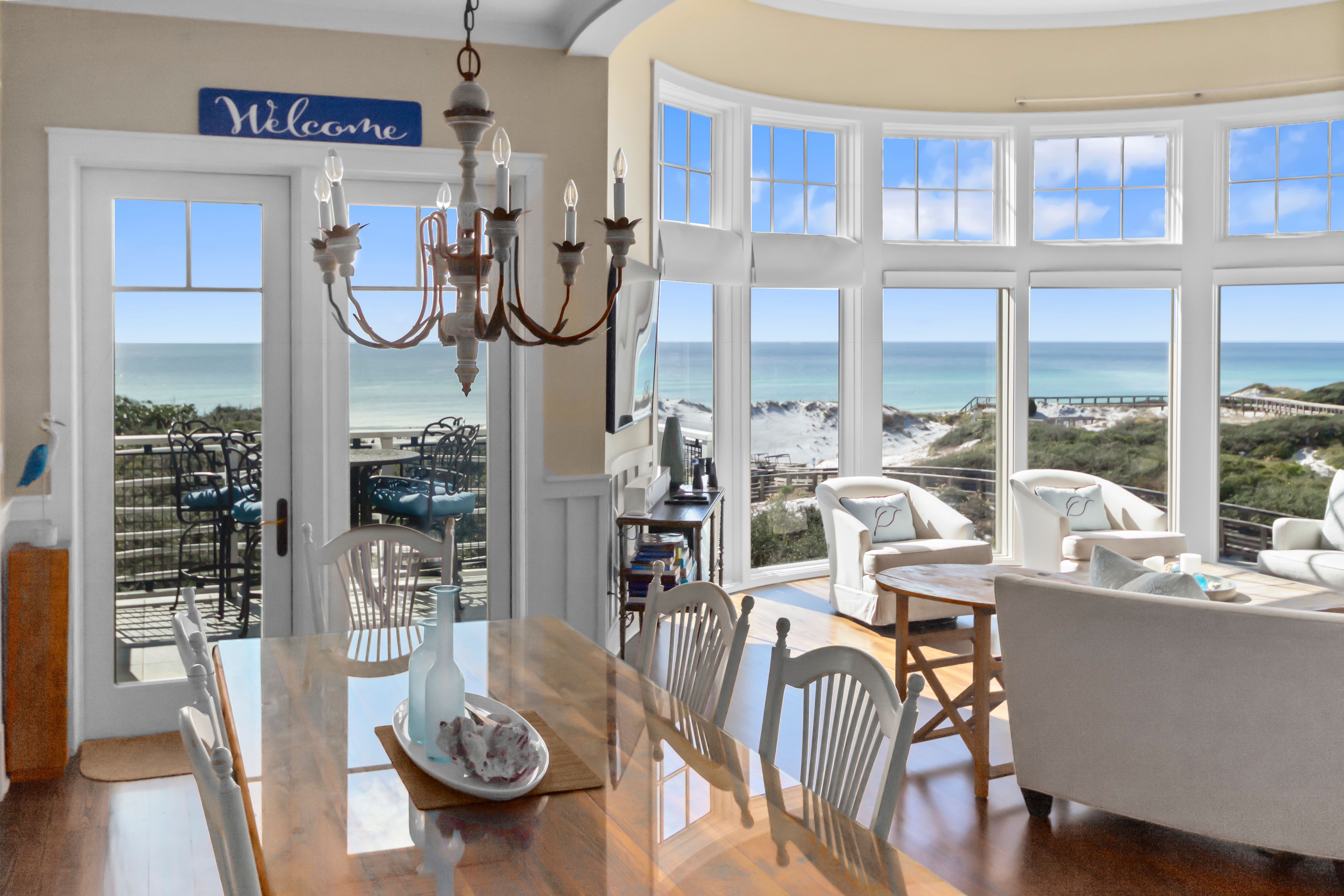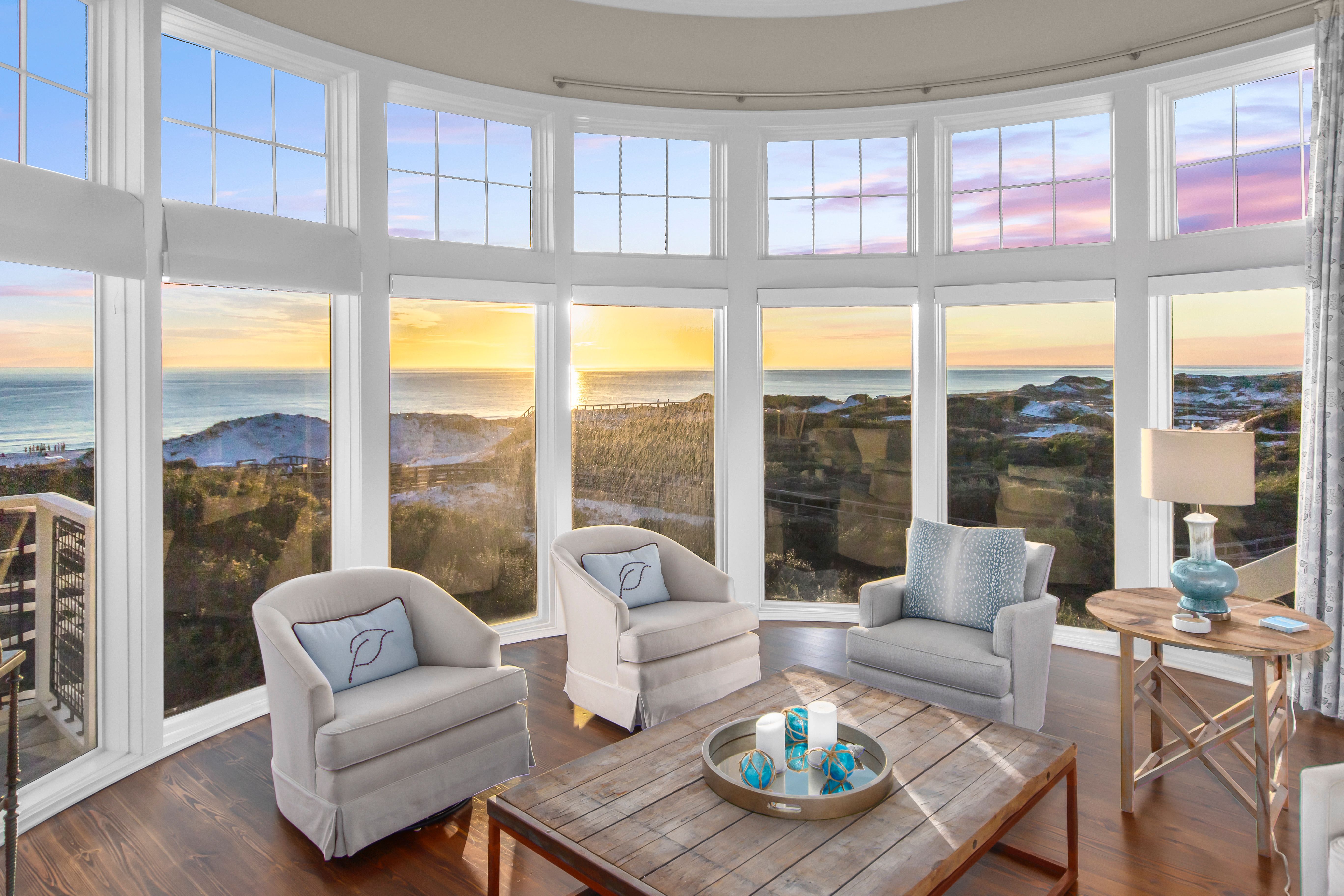 Perched above the beach and boasting sensational coastal views, this apartment is hard to forget. Unsurprisingly, the panoramas do most of the talking here, and the balcony is the perfect vantage point to enjoy the sunsets and take it all in. The living space is wrapped in curved windows that keep the ocean in sight, whatever you get up to – be it cooking in the kitchen or unwinding on the sofa. If you can pull yourself away from the vistas, you'll find a shared swimming pool nearby, plus a direct walkway right down to the beach. How dreamy.