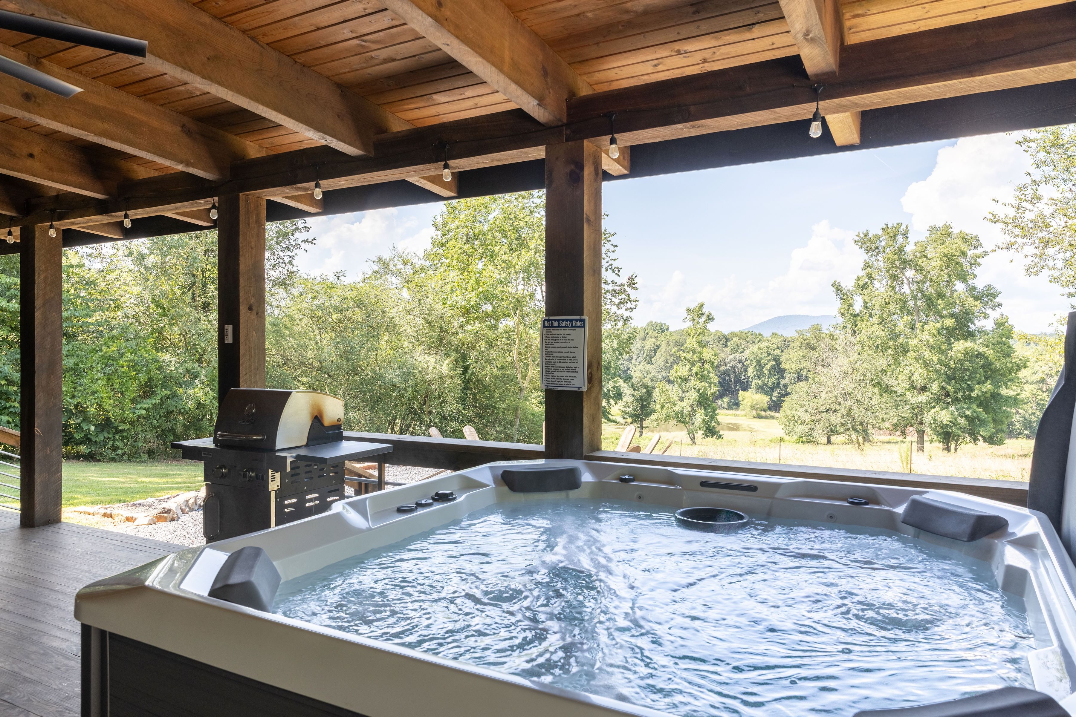 Calling all hikers – this cabin is the perfect basecamp in between your treks. Less than thirty minutes from Dahlonega, Yonah Preserves Trail, and Raven's Cliff Falls, you'll have your pick of scenic trails to discover. Even better are the Yonah Mountain views waiting for you back home. Unwind with a soak in the hot tub, gather around the fire pit for ghost stories, or simply lounge on the swings and watch the cows graze in the neighbouring field. Inside, expect cabin charm with a contemporary touch – just note two guests will sleep on a sofa bed. With all the essentials taken care of, we think it's an excellent choice.