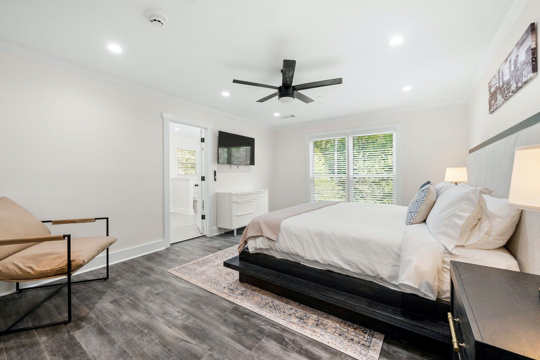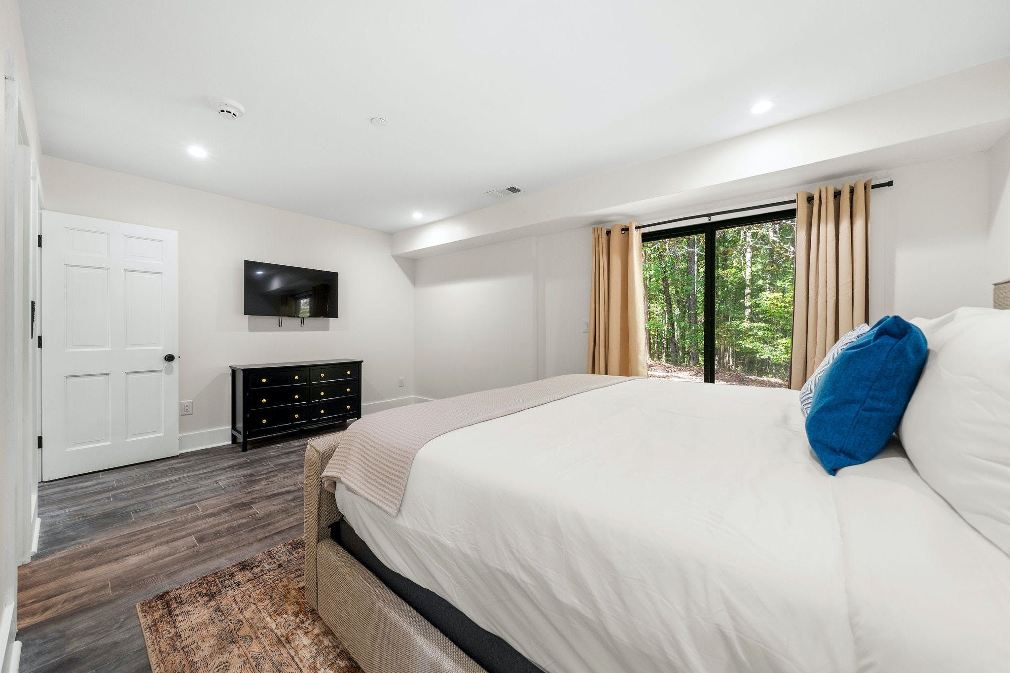 Tucked away in Fayetteville, a mountain town nestled in the Ozarks, this stunning retreat offers space and total serenity. The outdoor area feels like your own private woodland, complete with towering trees, sprawling lush lawns, and a sparkling pool. There’s plenty of room to roam, play, and gather under the open sky. Inside, the home is just as inviting, with a sleek kitchen, cosy living spaces, and everything you need for a relaxing stay. You’re just a short drive from charming downtown Fayetteville, while Atlanta’s top attractions like Zoo Atlanta and Center Parc Stadium are also within easy reach. With so much natural beauty and comfort right outside your door though, you may not want to leave.