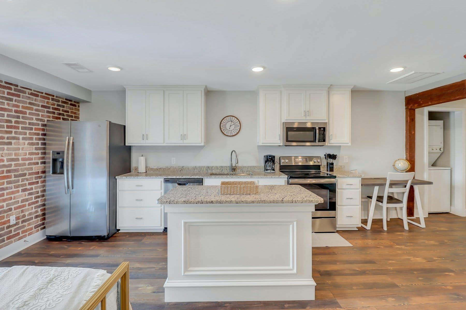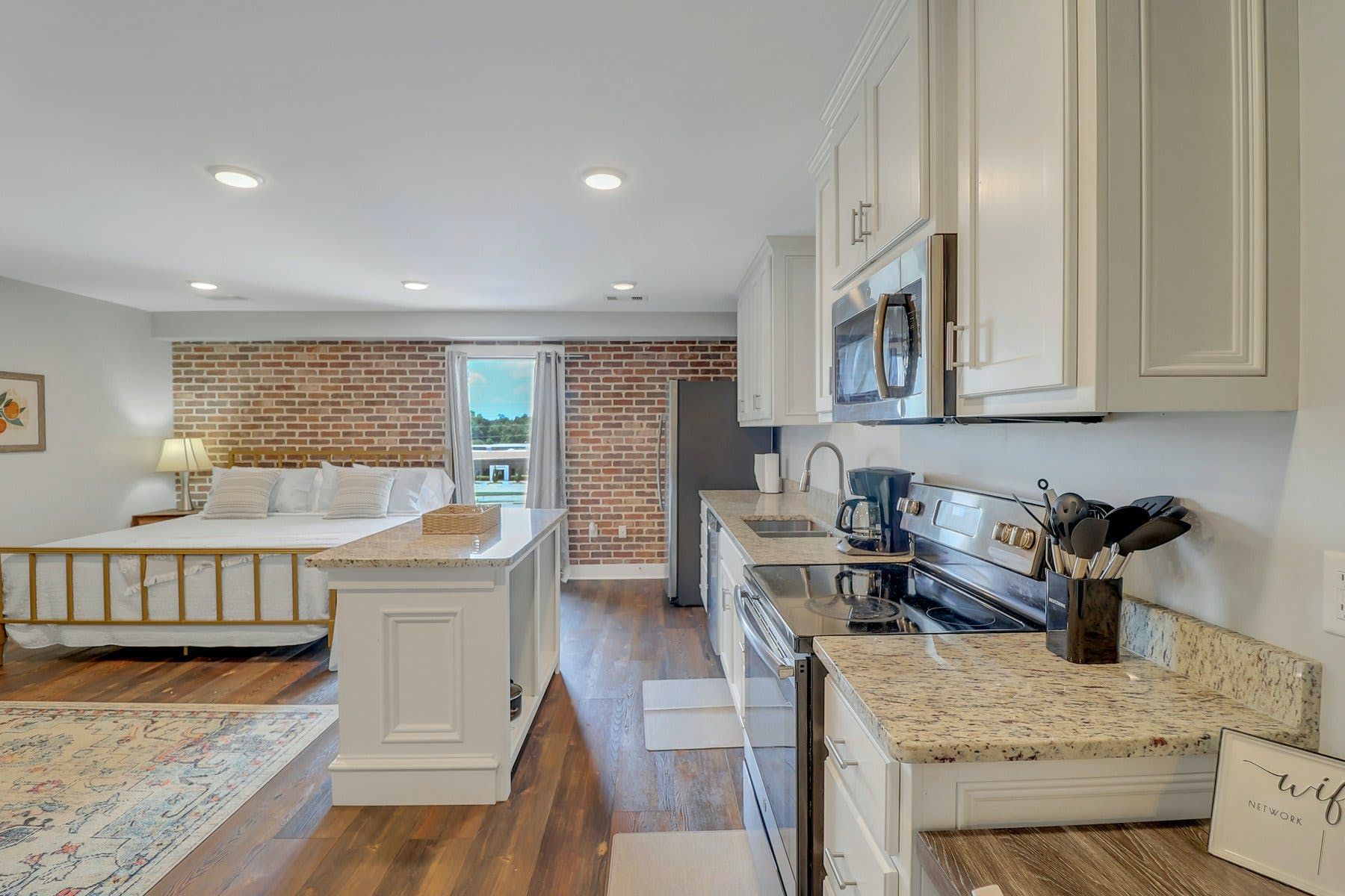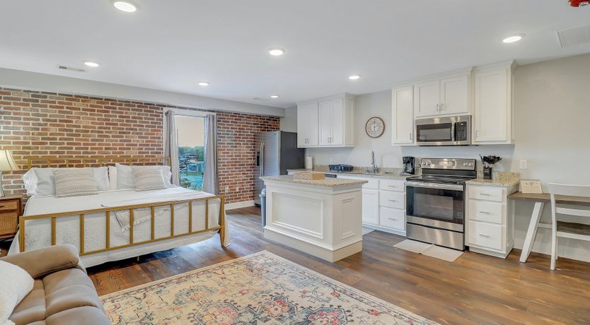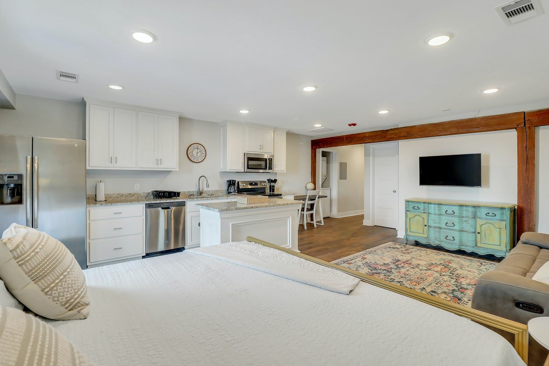 An hour outside of Savannah, the city of Statesboro is a bit of a hidden gem. As the home of Georgia Southern University, you'll find plenty of low-key restaurants and hip bars popular with students. This loft-style studio is right in the heart of downtown. It sits above a popular steakhouse – handy on the days you don't feel like cooking. For a studio apartment, it's surprisingly roomy, especially the well-appointed kitchen. With just a touch of rustic character (hello, wooden beams) and a convenient location, we think it's a great choice for fuss-free couples or solo travellers.