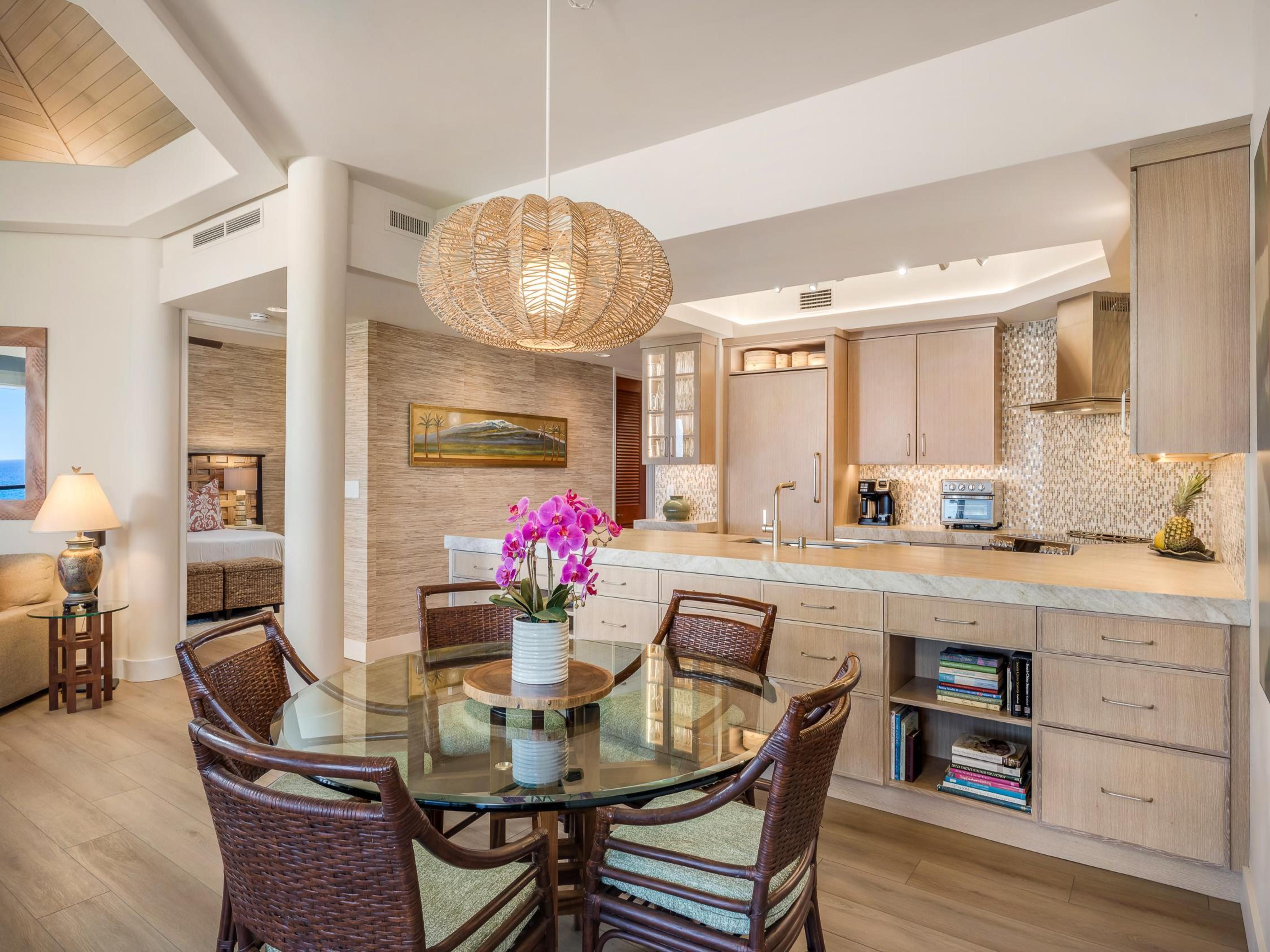You can wake up to sea views at this home on Hawaii’s Big Island. And once your day is underway, you can enjoy the Pacific Ocean vistas – as well as views across a golf course – from the living area and the private lanai. We love the sociable layout of this place, which has been designed to link the indoor and outdoor space seamlessly. Located on a resort, you’ll have access to the on-site facilities, including a swimming pool, hot tub, and sauna. And if beach days are on the itinerary, the resort’s exclusive beach club awaits.