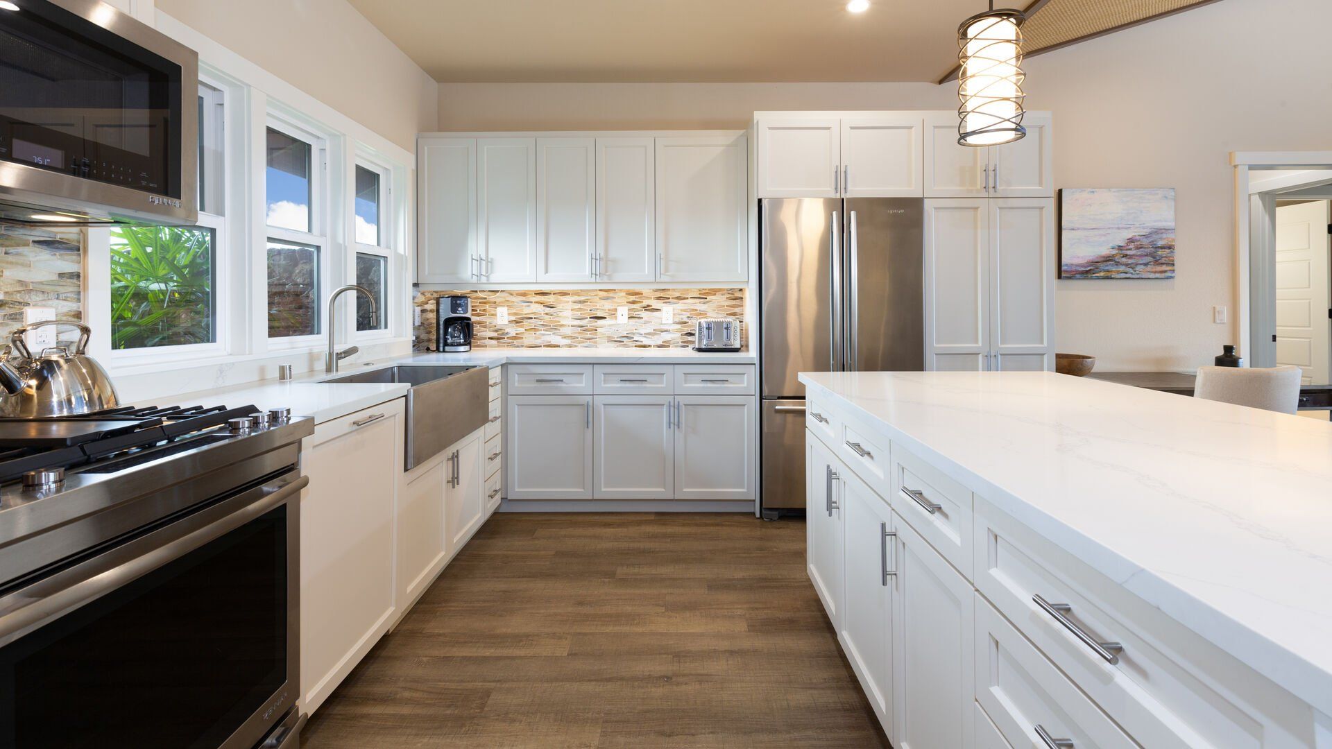 Beach life comes easy at this island retreat. Days here are best spent outdoors – whether that’s exploring nearby beaches with the snorkel gear and boogie boards provided, or relaxing in the private garden and breezy lanai. Inside, the open-plan kitchen, living, and dining area has everything you need to settle in after a day on the Kohala Coast. There’s even a second lounge space for movie nights – and with so much to enjoy here, we can’t complain that two guests will sleep on the sofa bed in one living area. The cherry on top? Complimentary access to a neighbouring resort, where you can while away afternoons by the pools, hot tubs, and waterslides.