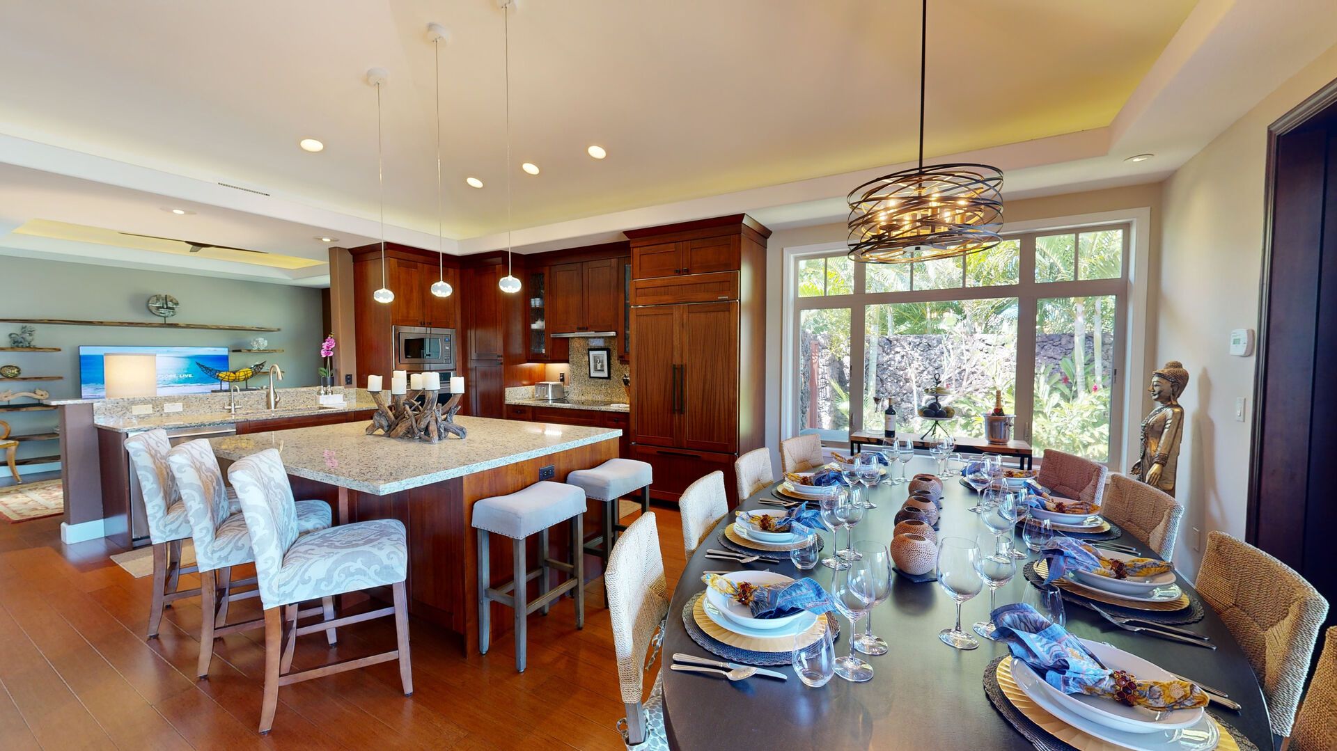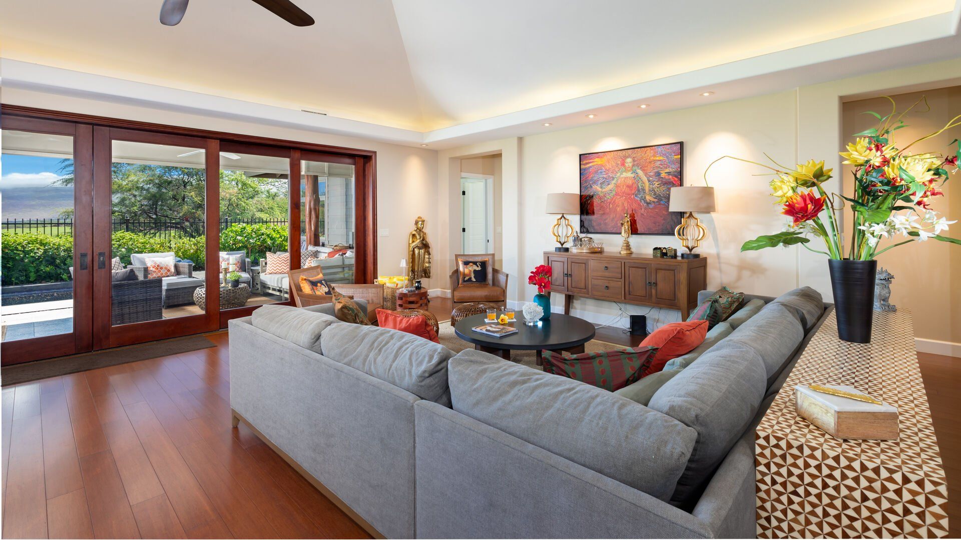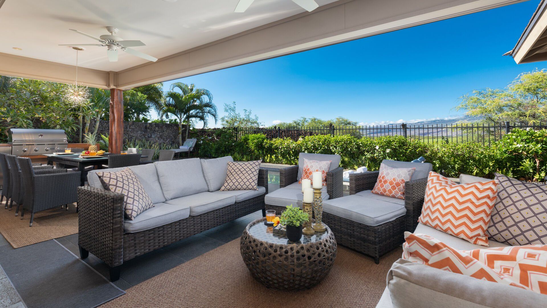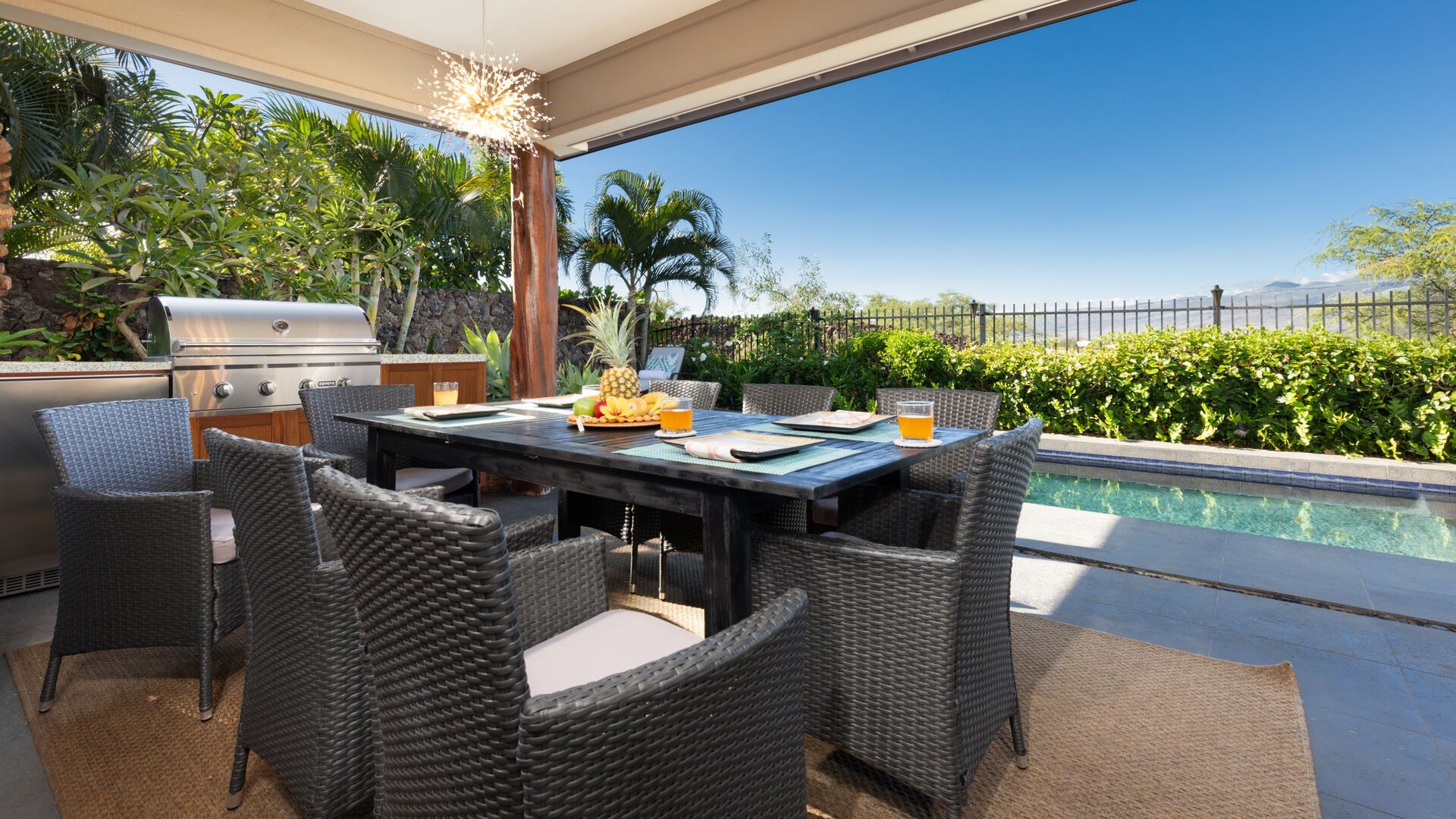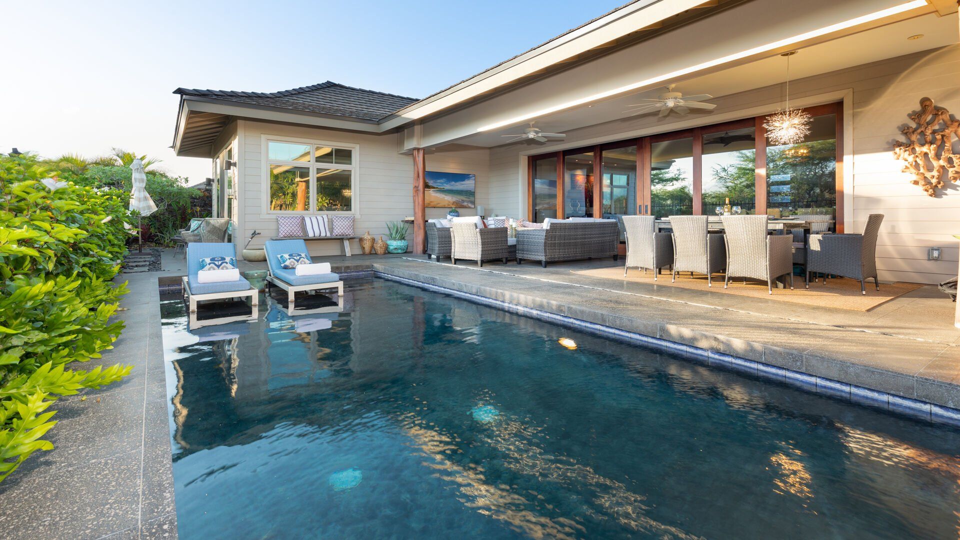 If relaxation is your number one priority when looking for a place to stay, then this place is just what you need. The communal area opens onto a covered terrace for seamless indoor-outdoor living, backdropped by views of Kohala, no less. Plus, there’s a private pool and hot tub at your disposal. If you’re staying with teenagers or those who like their privacy, there’s a separate self-contained studio here offering space to unwind away from the main house. As for location, you couldn’t be better placed – just a short walk to communal pools and a gym. And with Pauoa Bay nearby, grab the beach gear and watch the waves roll in from the soft, white sand.