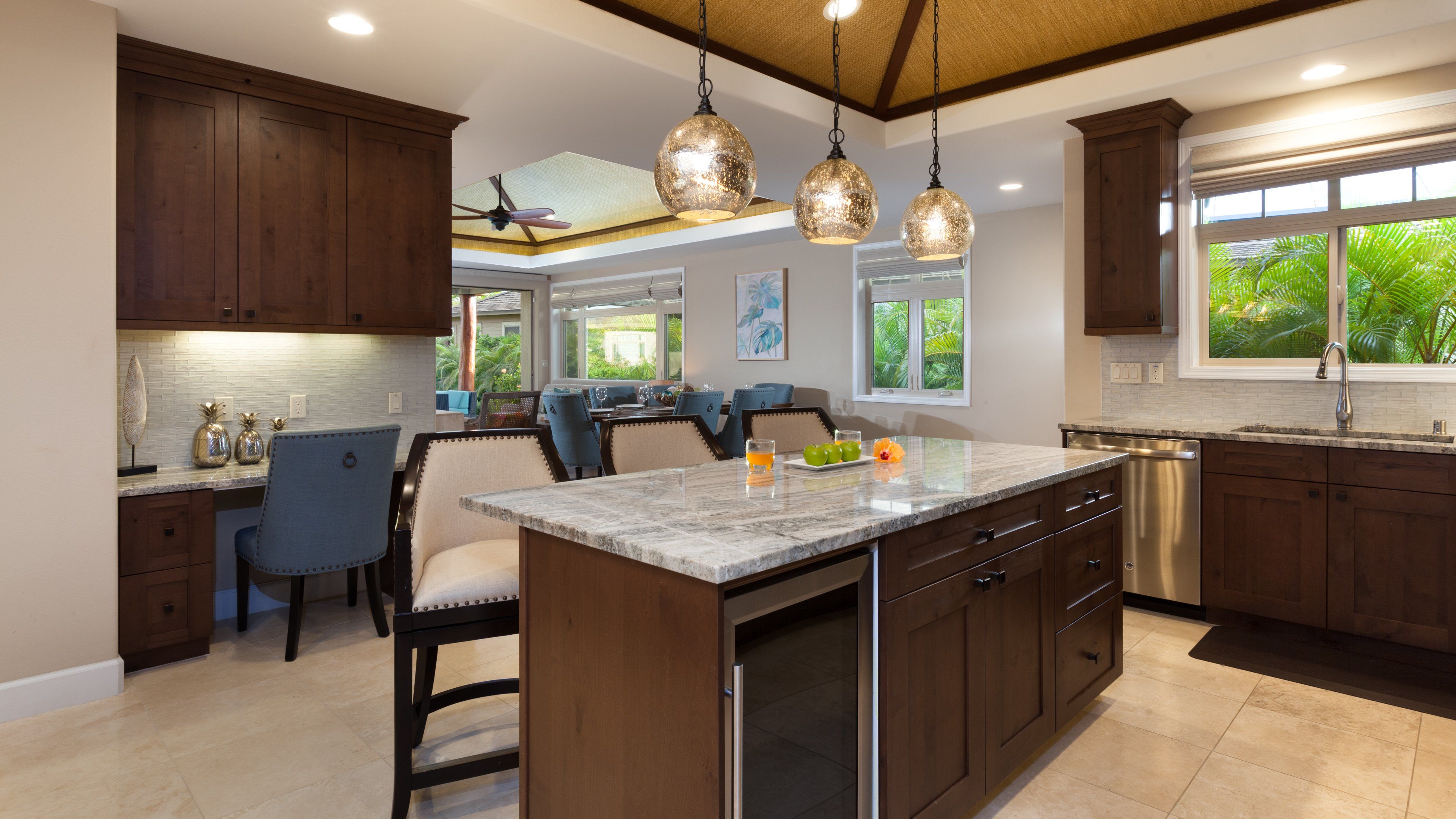 Tropical breeze, the sounds of nature, a short walk to the beach, and resort amenities? We’re in. Set within Waikoloa Beach Resort, this laid-back home puts you less than a twenty-minute walk from the Pacific, with everything set up for an easy, family-friendly stay. You won’t need to overpack either – bicycles, a high chair, bed rails, and baby beach gear are all included. Evenings are best spent out on the covered lanai with a barbecue and a view, and with resort passes included, you’ll also have access to pools, waterslides, snorkeling, a gym, and more.