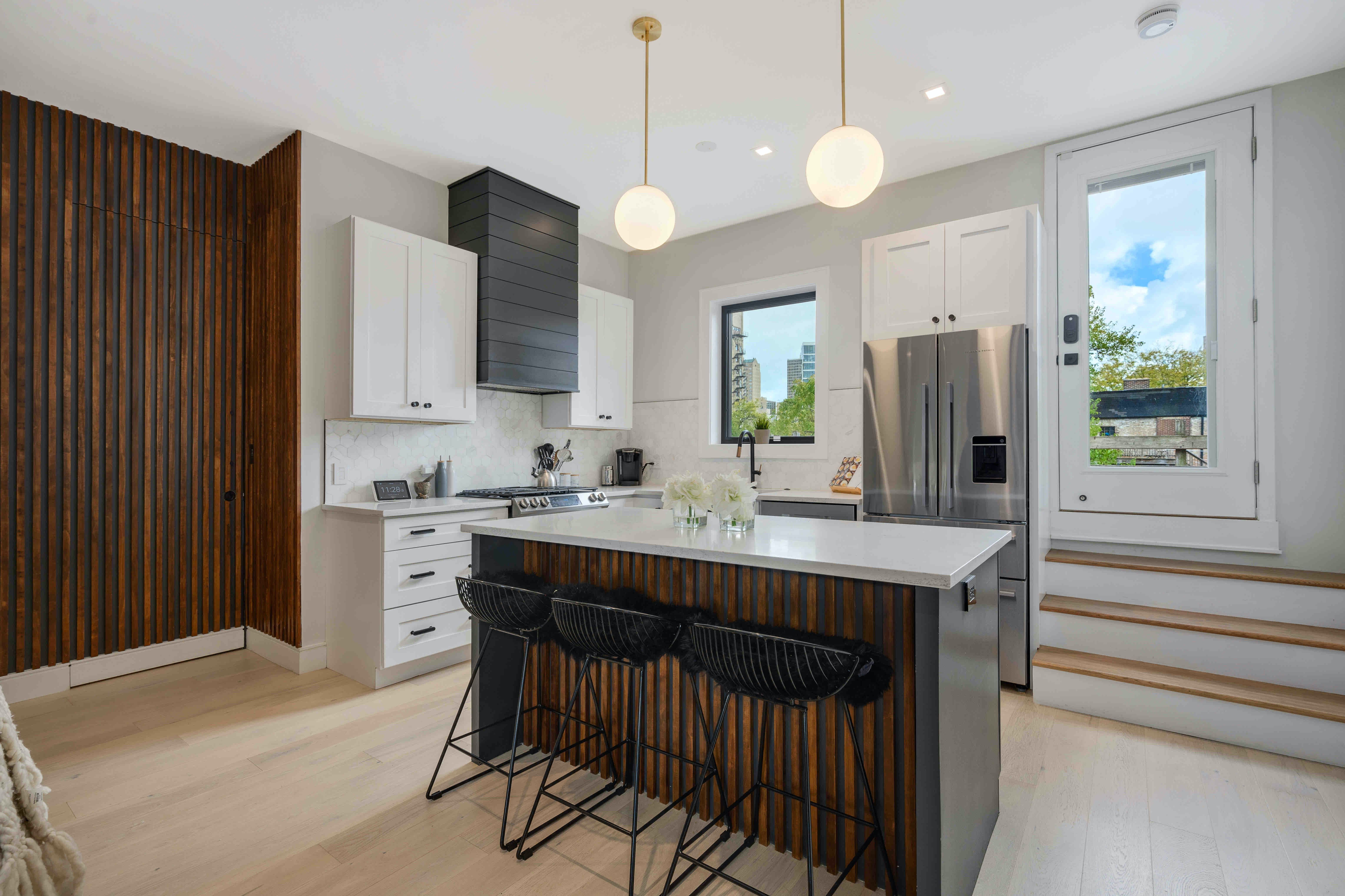 Another thing we love? The bustling locale, just a fifteen-minute drive (or twenty-five-minute ride on the ME) from downtown Chicago. Grab a bite to eat at the restaurants on 53rd Street (two blocks away), go for a jog around Promontory Point (a twenty-minute stroll), or spend sunny summer days relaxing by the lake at 57th Street Beach (twenty-seven minutes on foot).