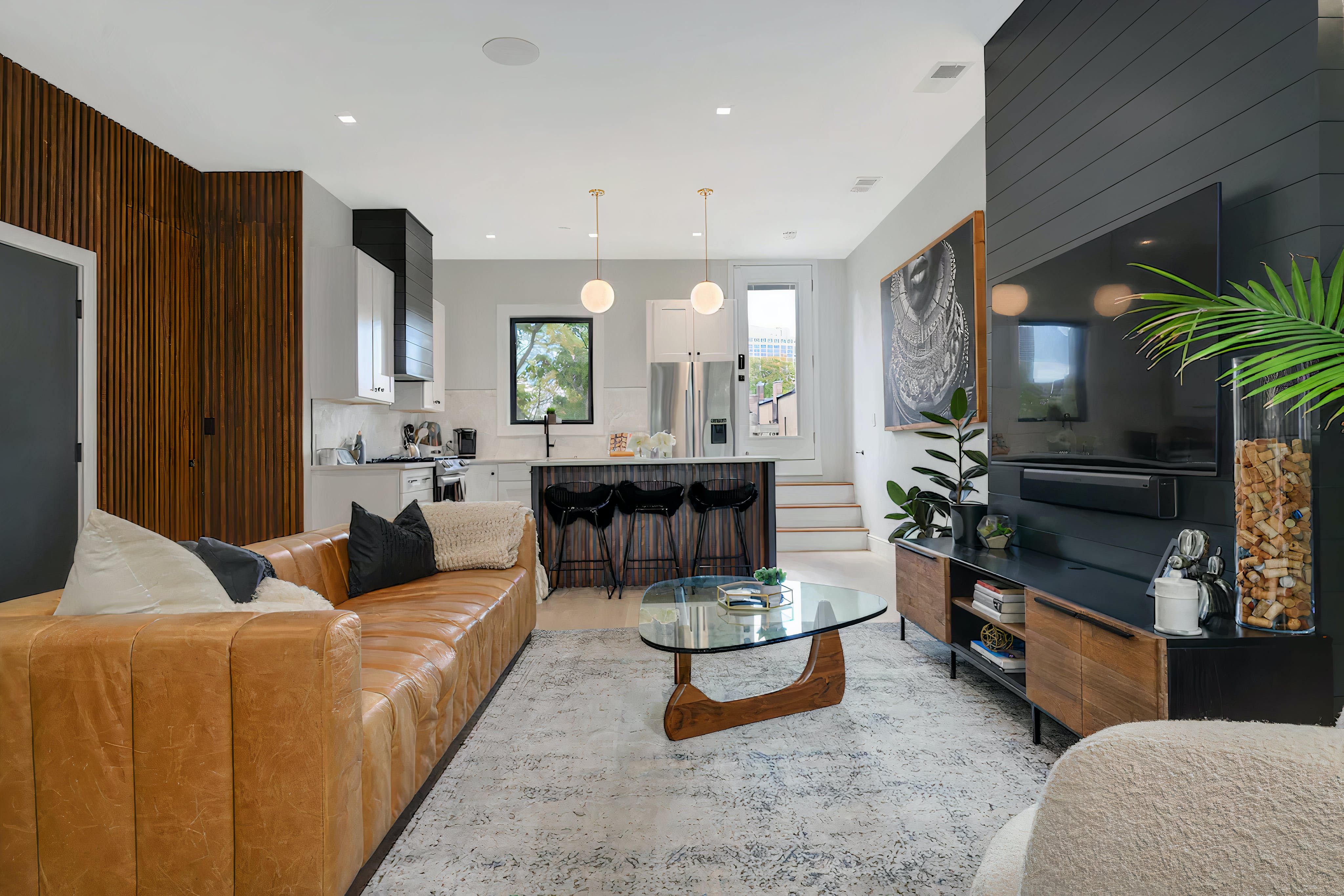 Whether you fancy working out on the Peloton bike or working from home at the desk in the second bedroom, this flat has something for everyone. The glossy kitchen has all the culinary get you'll need to rustle up something delicious, while the lavish spa-style bathroom is just the ticket after a long afternoon on your feet. Plop down on the caramel-coloured sofa, a refreshing cocktail in hand, and chill out with a movie night – Apple TV, Netflix, Disney+ and HBO Max are all available for you to use. Better yet, kick things up a notch with the projector in the main bedroom – we can't think of a better way to end the evening than snuggled up in the soft sheets, falling asleep to our favourite films.