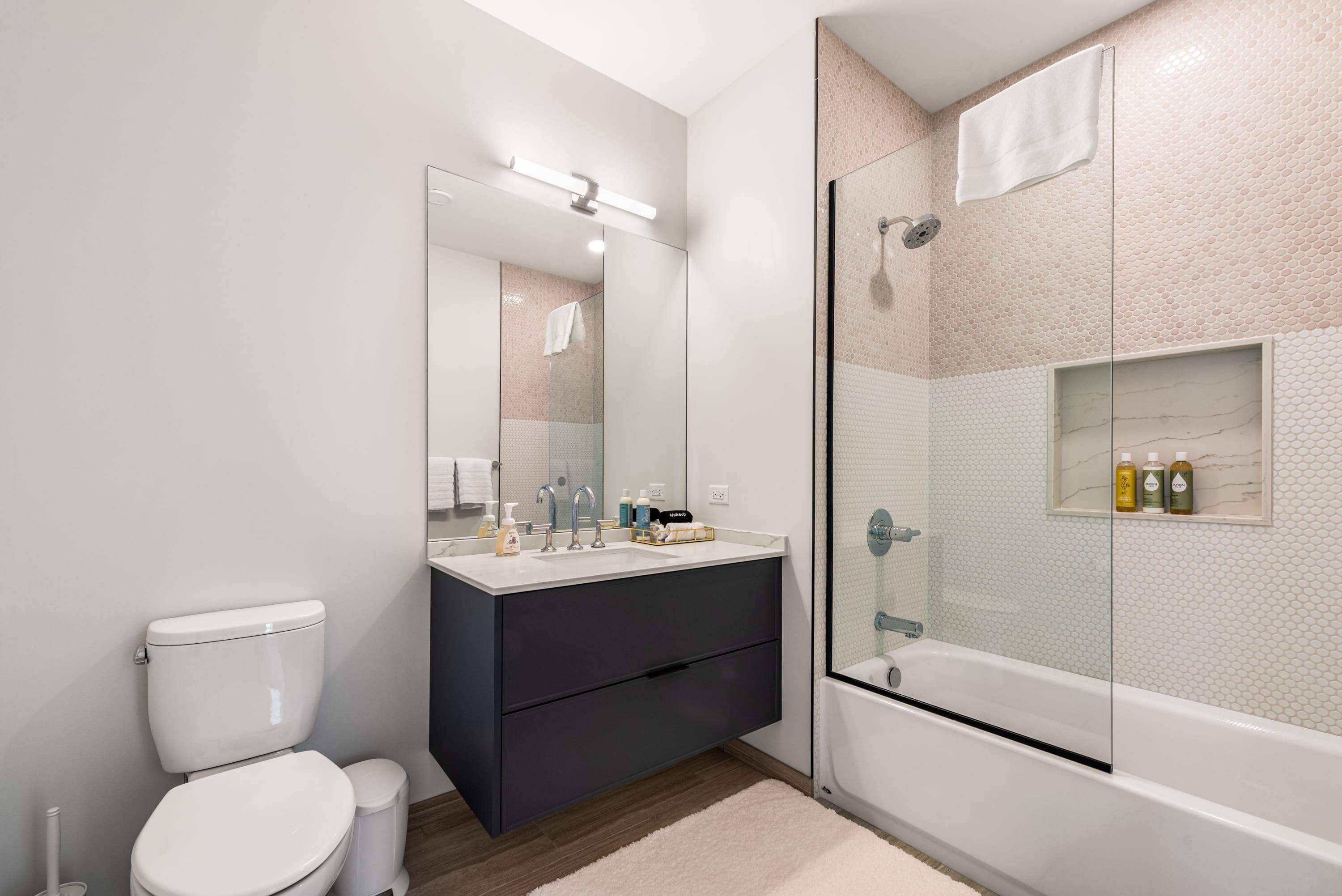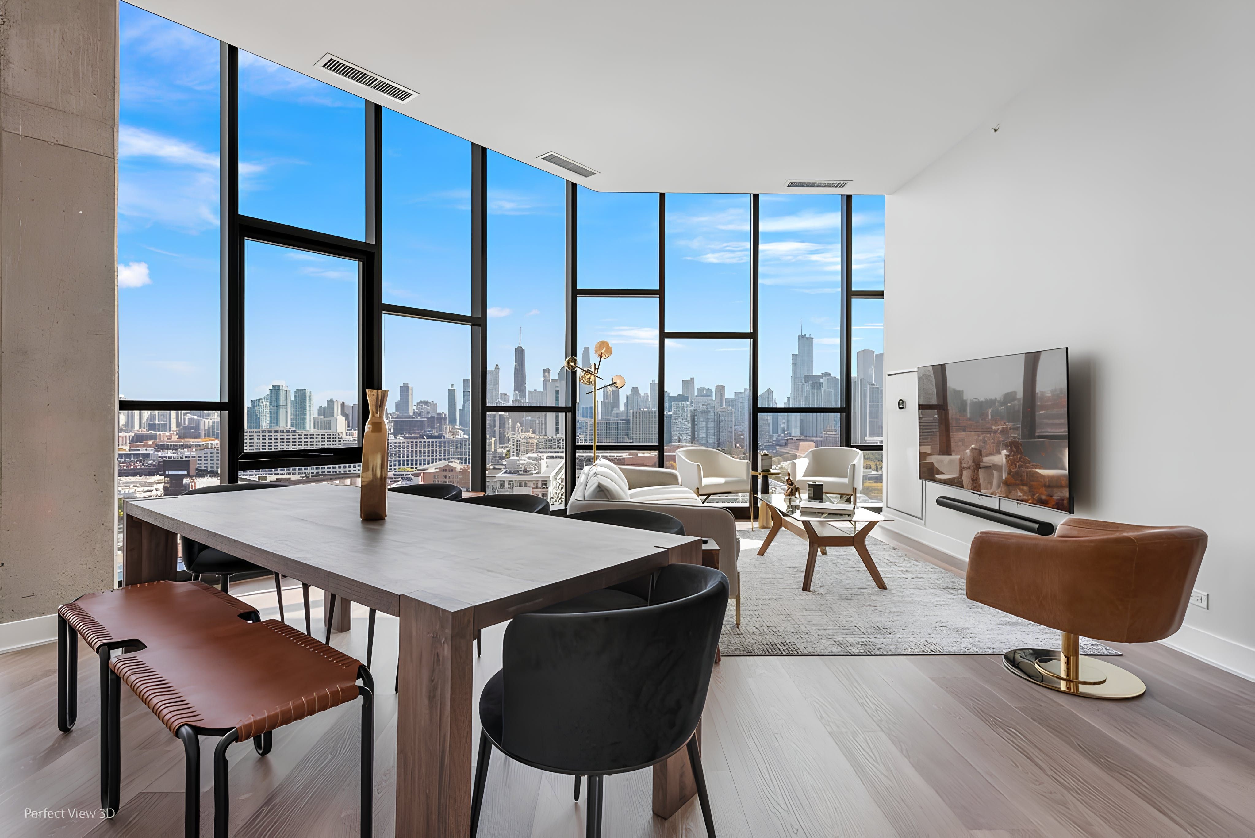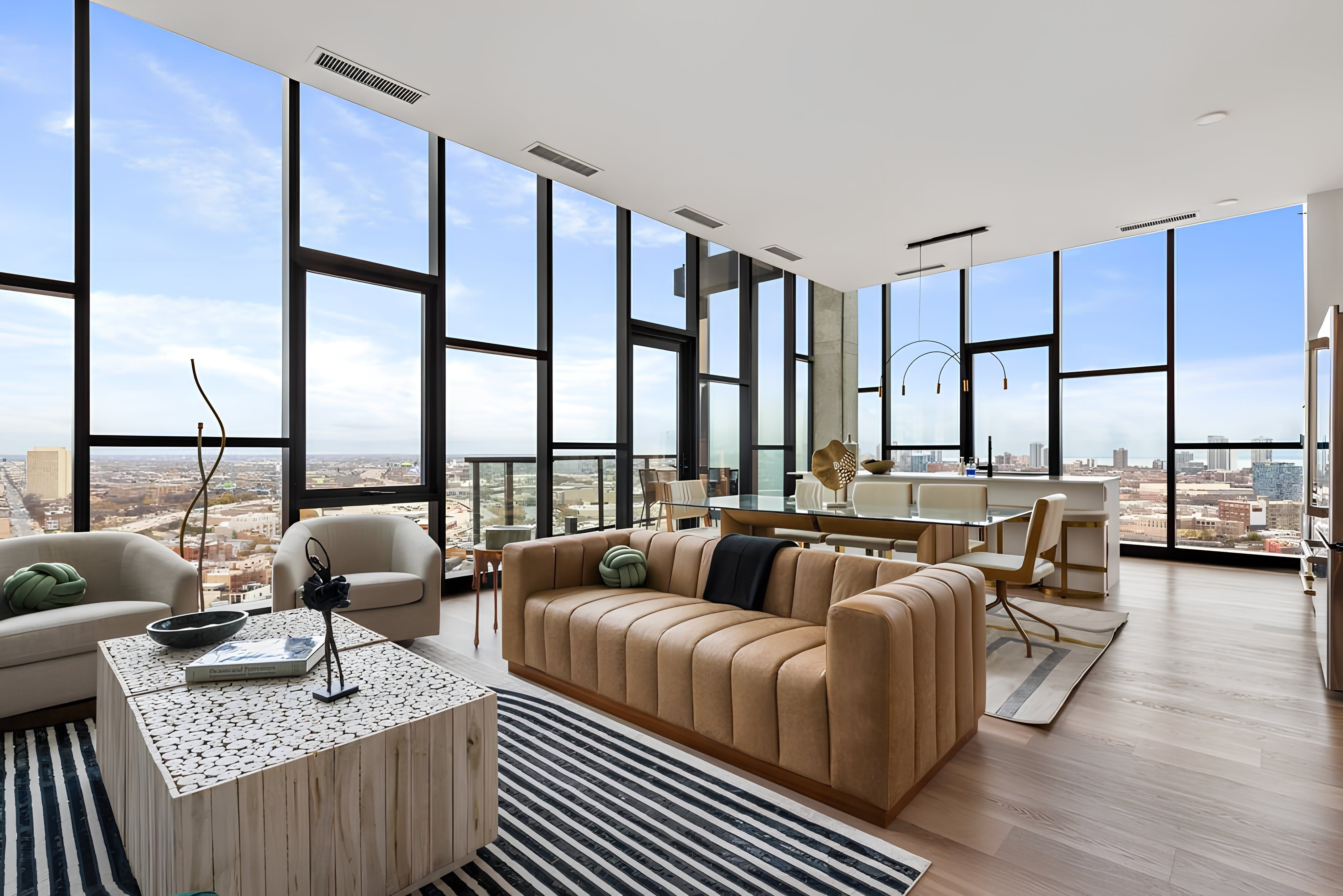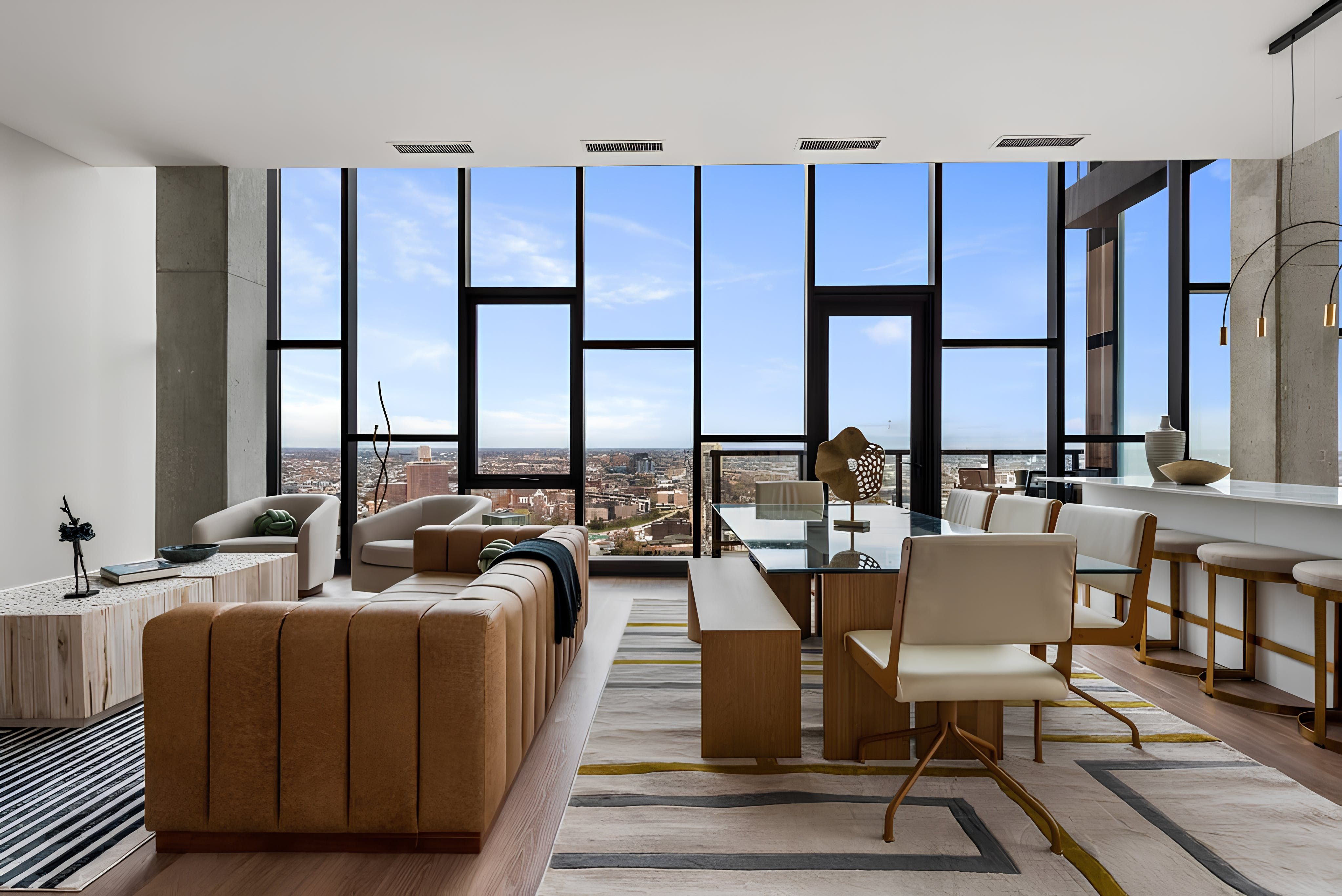 These two modern penthouses with cityscape views are perfect for families or groups visiting Chicago – especially if you like a little more privacy. Each penthouse has three bedrooms, bathrooms, a living space and a kitchen. You'll have access to the building's shared amenities here, including a gym and yoga studio, swimming pool, grilling stations, and a coworking space for catching up on emails. Centrally located, it's a short walk from bars and restaurants, and a quick drive or bus ride from Chicago hotspots like the Old Town, Logan Square, and Fulton Market.