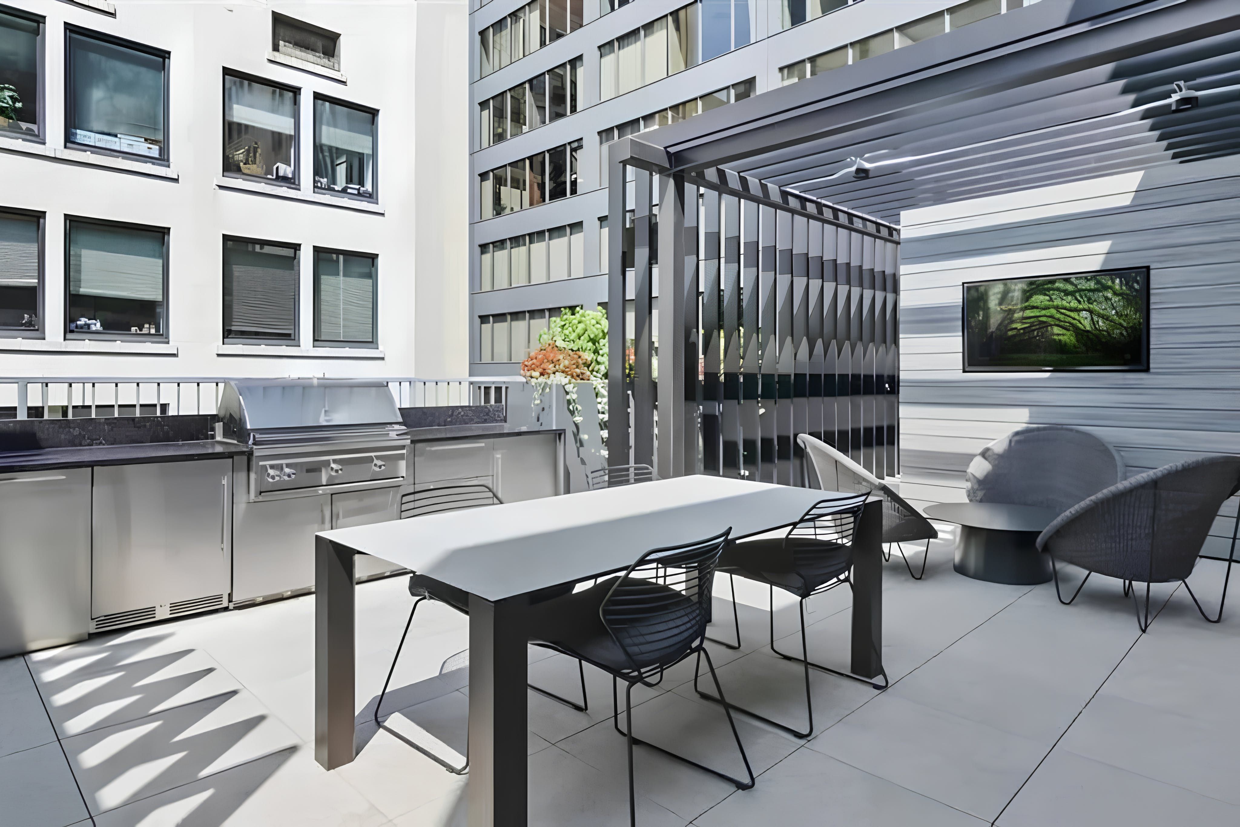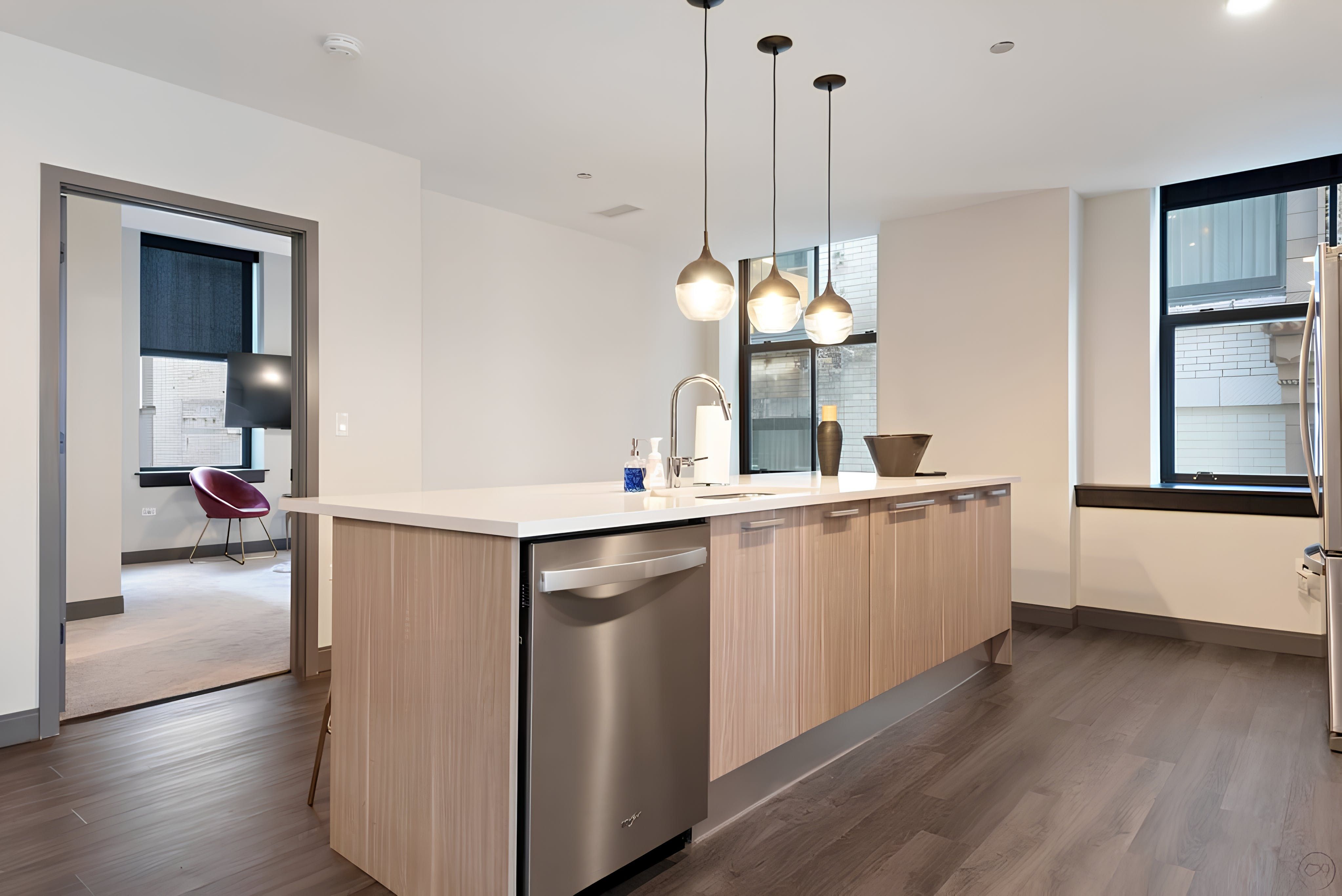 This pet-friendly apartment in Downtown Chicago puts the best of the city at your feet. Millennium Park, The Art Institute, theatres, restaurants, and shops are all just a short stroll away. When you’re ready to retreat, the home’s sleek kitchen with breakfast bar and two light-filled bedrooms make a stylish sanctuary. And with shared perks like a rooftop pool overlooking the skyline, a gym, cinema, games room, and even a poker lounge, the building itself feels like a destination.