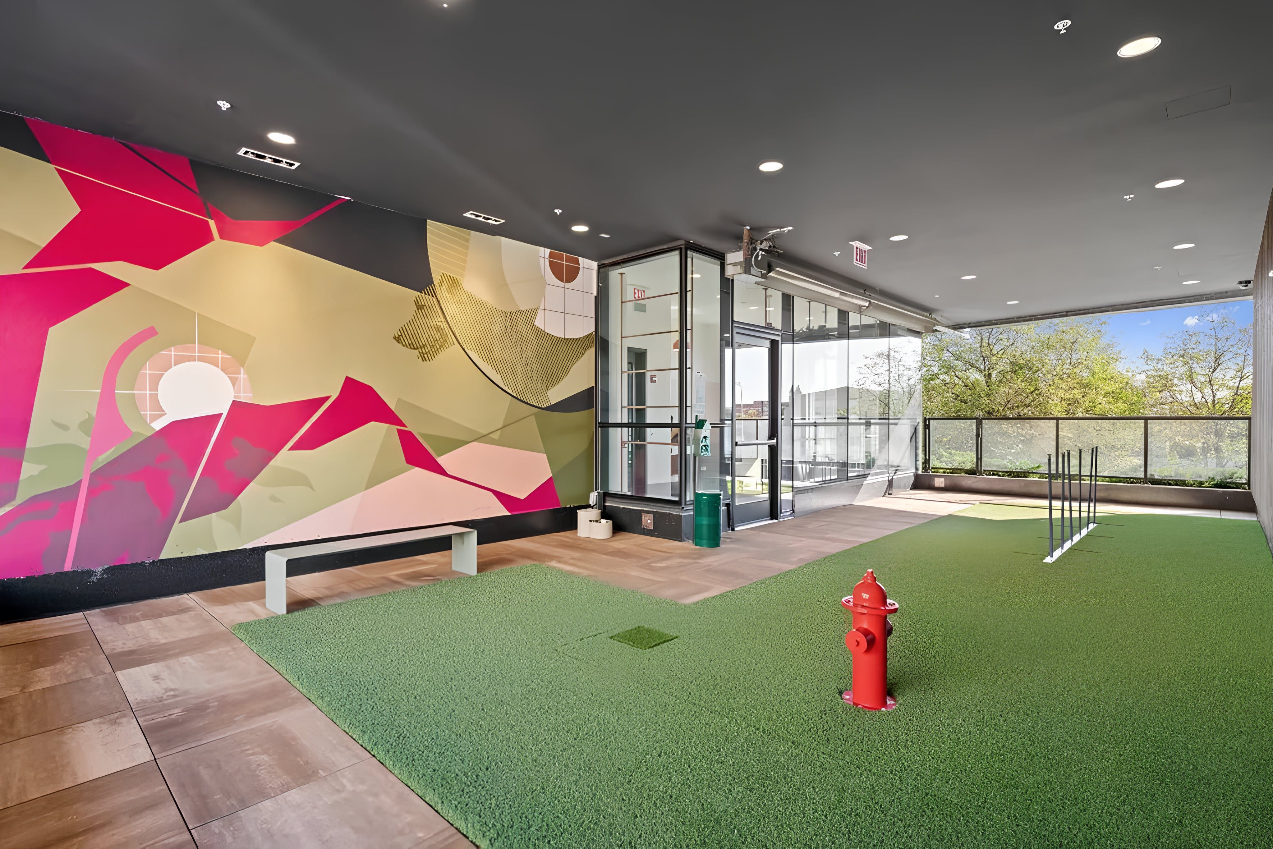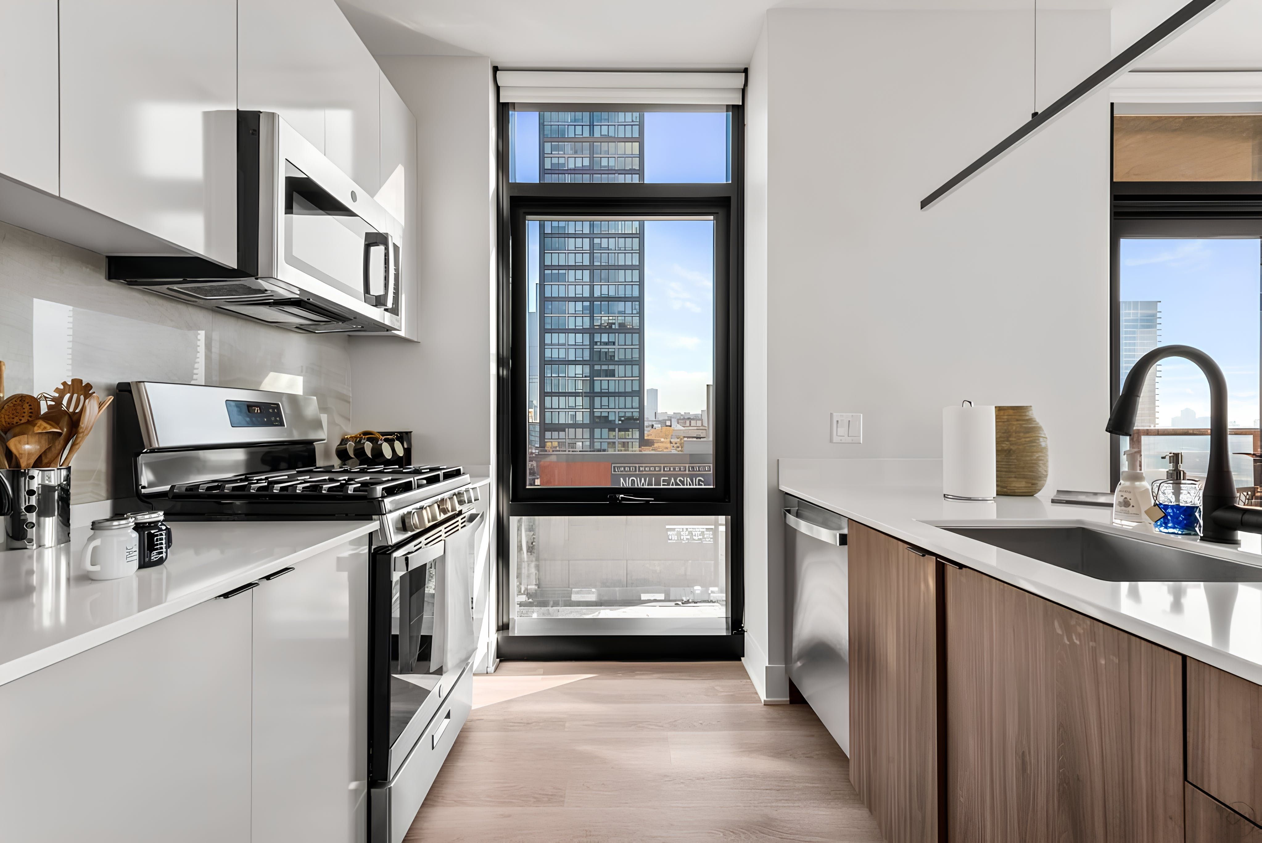 *You'll have access to the on-site gym, rooftop terrace and co-working spaces here. They're shared with the building's other residents.