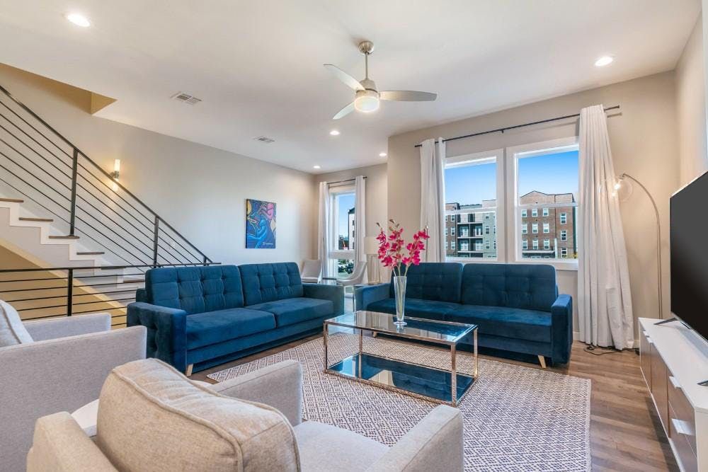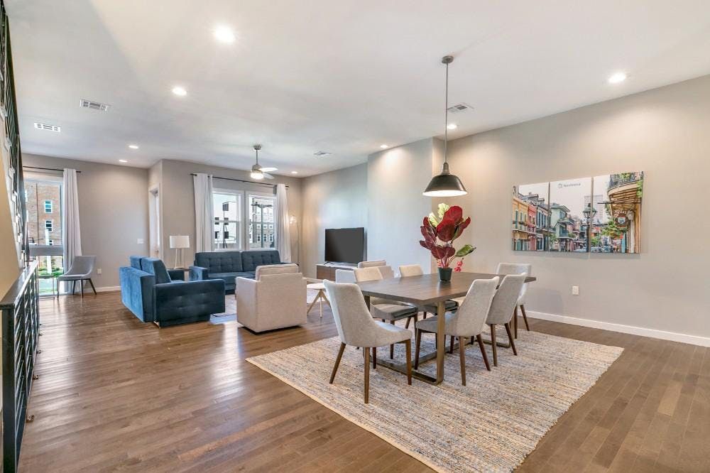 Three floors united by fresh, bright interiors await at this contemporary townhouse set in an exclusive complex of New Orlean's popular residential district, Mid-City.