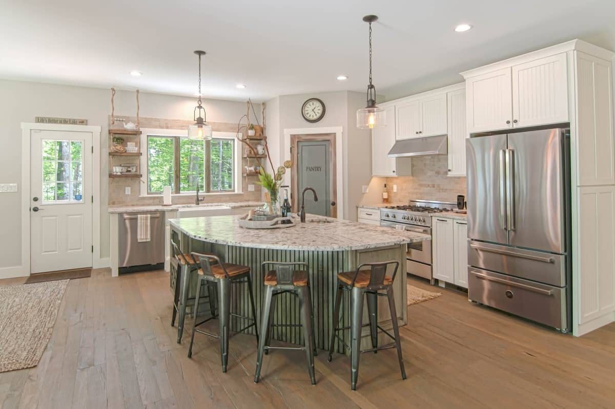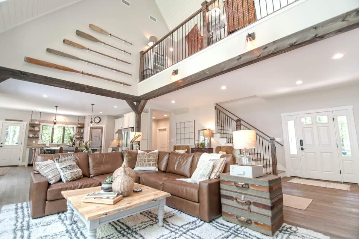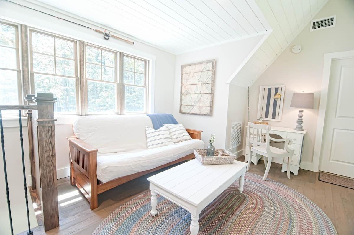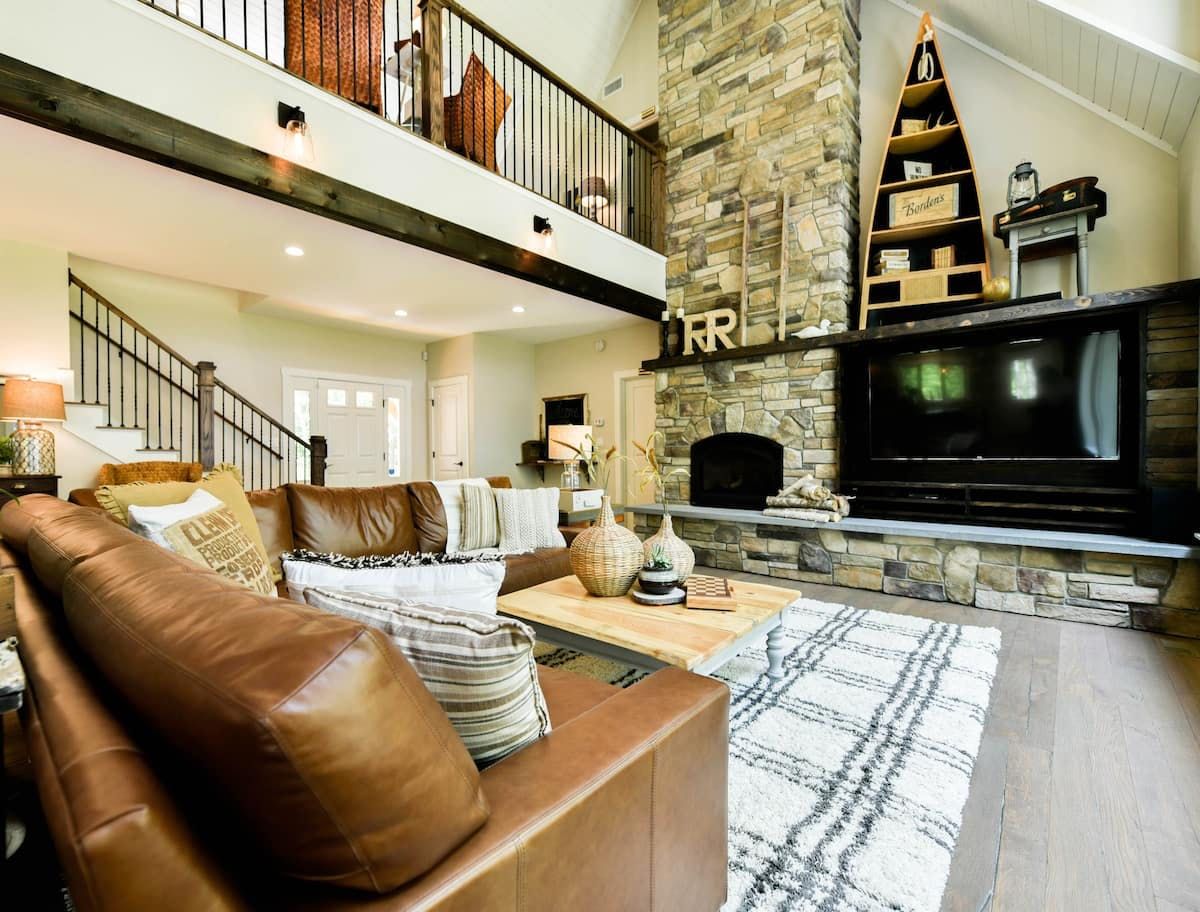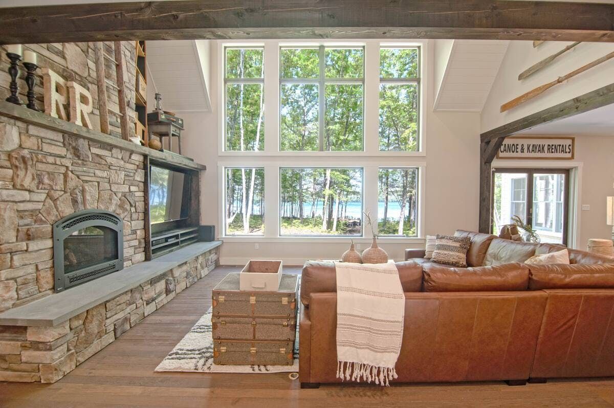 Situated on a lakeside peninsula, with views of the water from almost every room, this home is a dreamy escape from everyday life. With 200 feet of pristine waterfront and two acres of land to explore, it's the ultimate getaway for fans of the great outdoors. Boat owners can bring along their vessel, while kayaks are provided for your use. The hosts will also stock up the house with goodies before your arrival, and if you'd like someone to take over catering duties then they can arrange for a private chef to visit – just ask. The huge living area has been designed with care, and makes the ideal place to chill out if you need some peace and quiet inside. Or, maybe you'll choose to kick back in the hammock with a good book, before paddling over to the sandy shores of Hawthorne Beach Club – it's just eight minutes away by canoe. When you get hungry, fire up the barbecue and serve up a spread on the deck, before taking a dip in the water to cool off. However you choose to spend your days, make sure the whole group gathers at the fire pit after dark to share stories – and maybe some smores too.