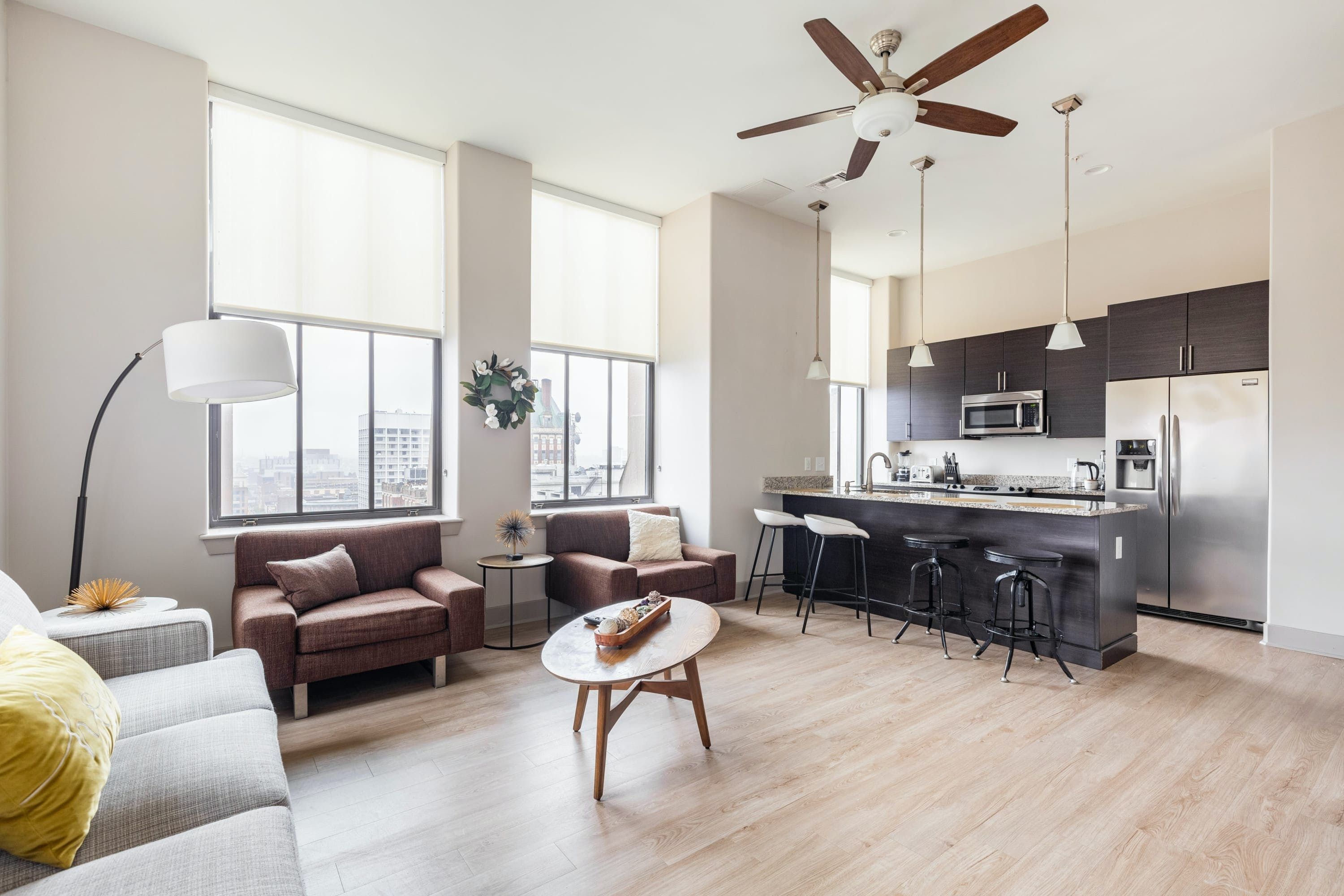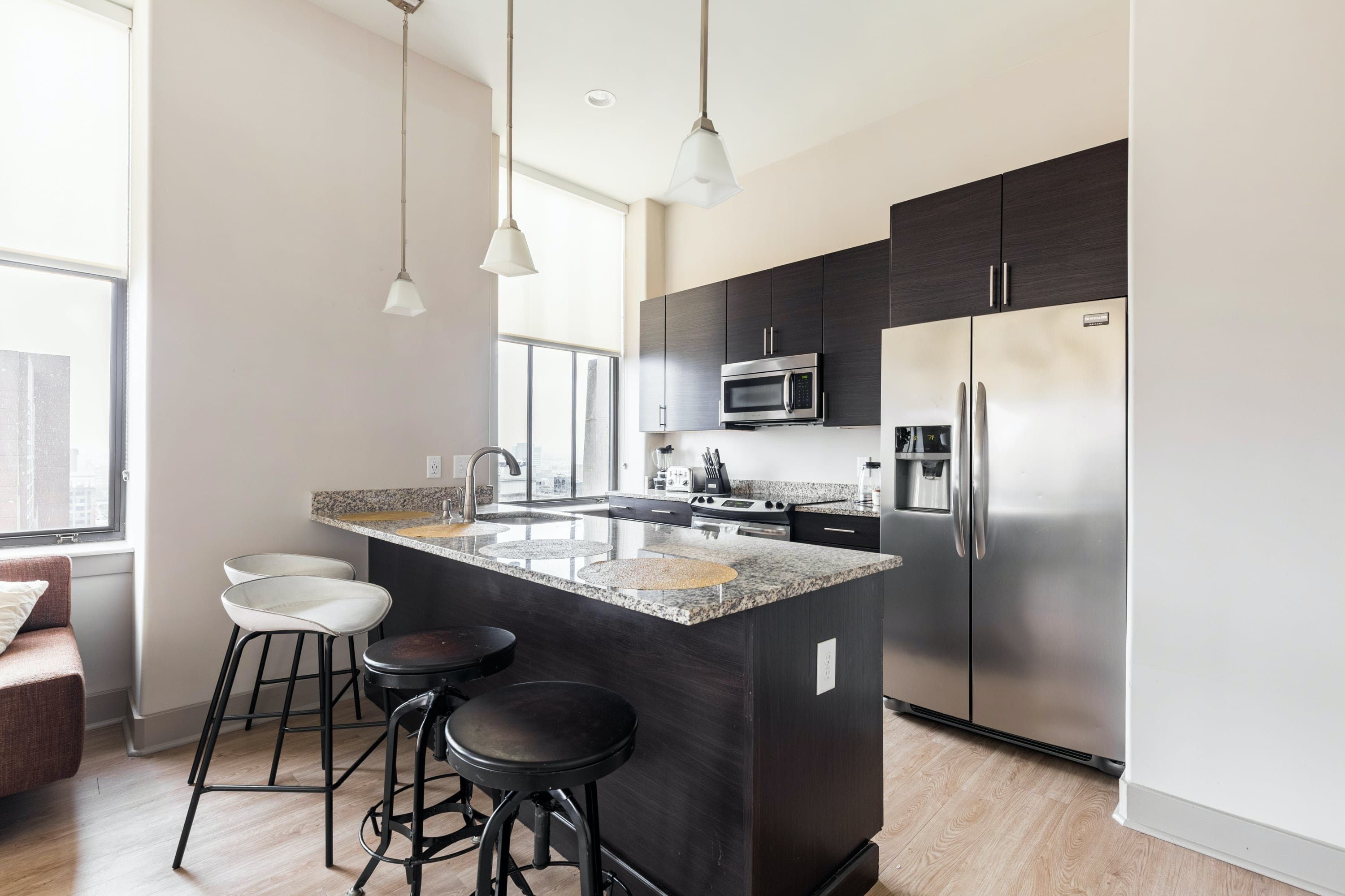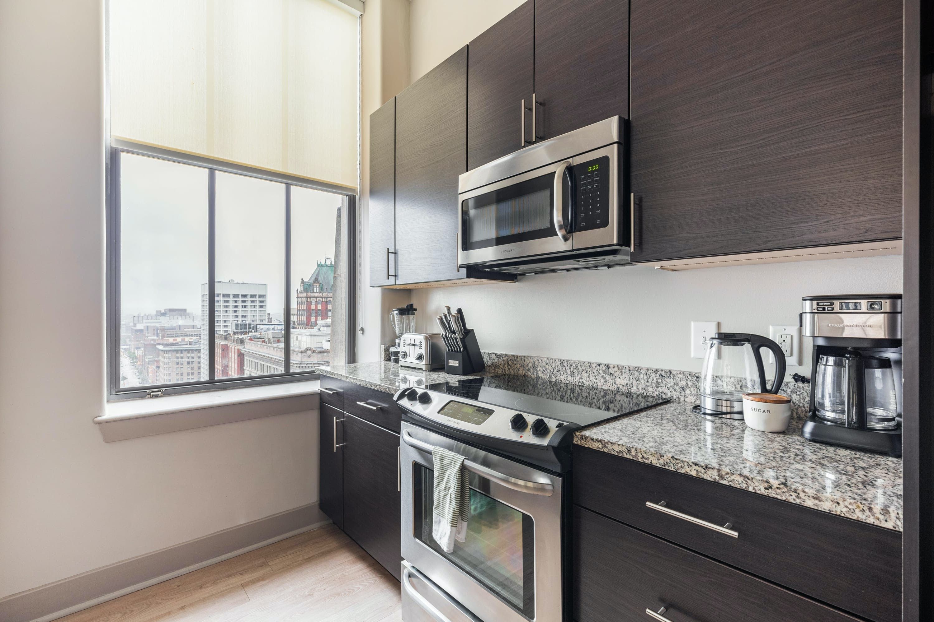 Mesmerising views of the urban landscape wait upon entering this gorgeously furnished sanctuary. Large windows bathe the living areas in natural light, framing the visual symphony of Baltimore's bustling streets. You'll find more than a place to stay; this is your personal retreat amidst the city vibes. The living area, ordained with a plush sofa and captivating flat-screen TV, provides an intimate setting for restful evenings. Meanwhile, culinary enthusiasts will adore the well-equipped kitchen, fitted with top-tier appliances designed to inspire creations from simple snacks to gourmet dishes. A haven within downtown Baltimore, it's more than just an apartment: it is home.