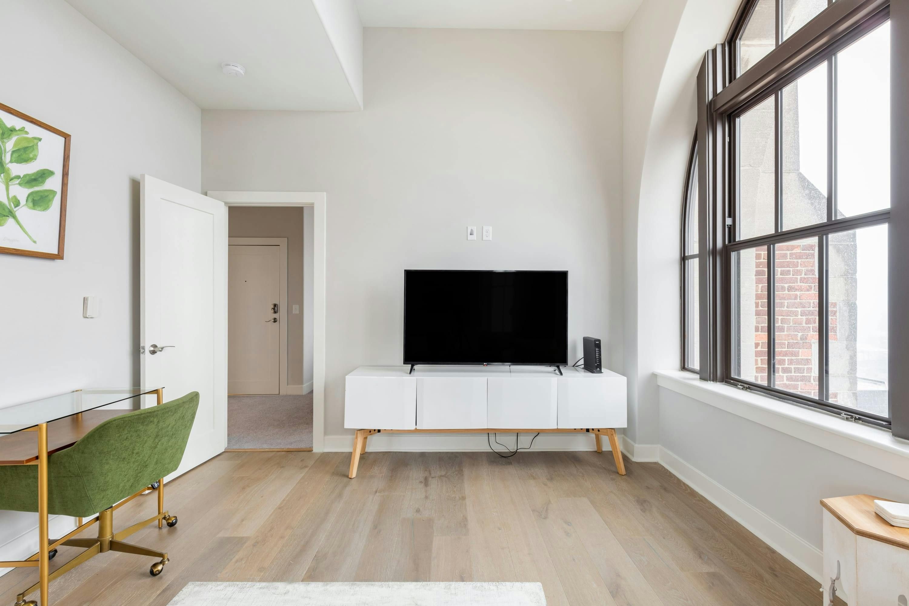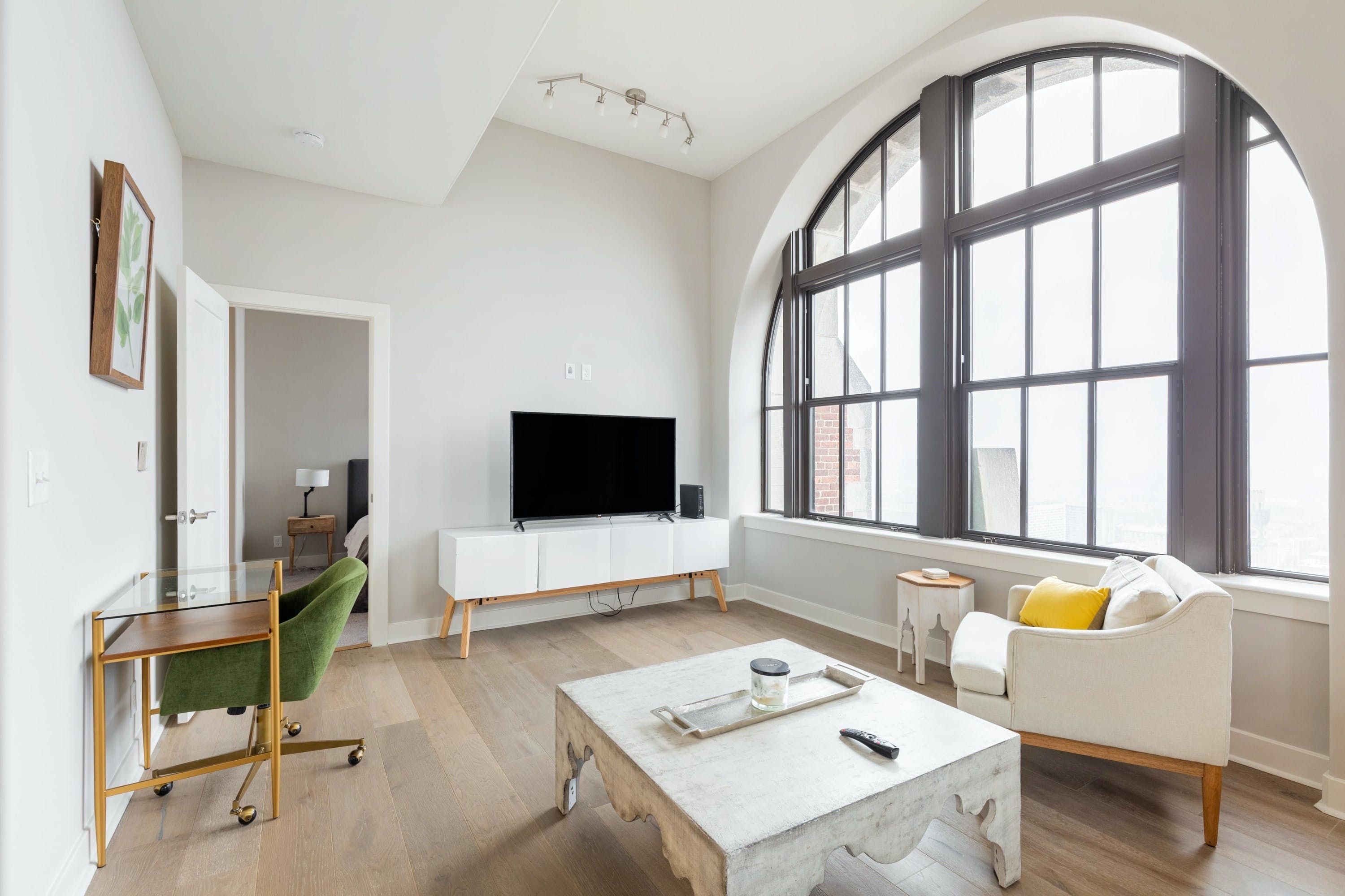 Welcome to an exclusive abode nestled in the heart of downtown, Baltimore. The sensation begins with the opening of the door into an aesthetic realm, giving an opportunity to live the city, but away from its clamor. Large windows serve as a canvas, showcasing, the stunning views of the city skyline and lively streets. An ambiance created by natural sunlight bathing the room combined with modern furnishings cater to both comfort and style. Hourglass Twilight offers a fully equipped kitchen for culinary explorations while a cozy nook with a flat-screen TV invites relaxation. This urban sanctuary harmonizes bustle and peace, providing the comforts of home with a touch of metropolitan allure.