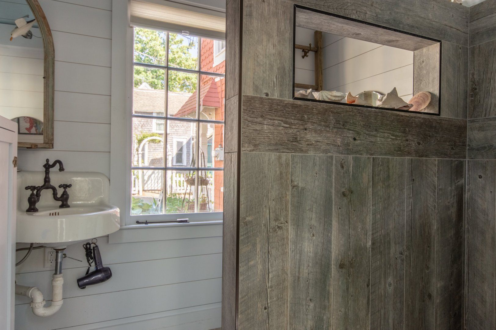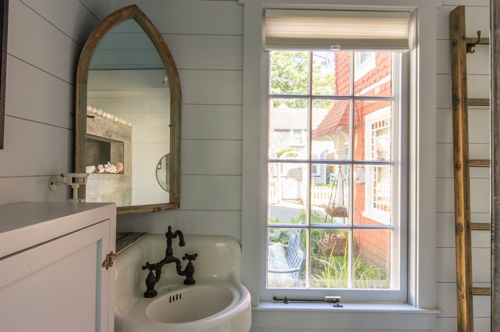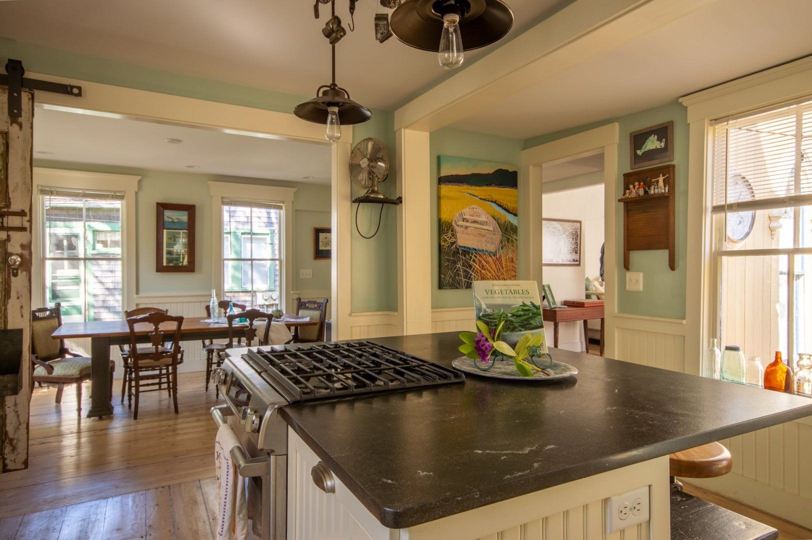 Built in 1871, this picture-perfect cottage has been beautifully renovated while retaining the most important elements of its original design. We're talking wood panelling, timber beams, and arched windows and doors. It's a prime example of the aesthetic that characterises this historic neighbourhood just outside Oaks Bluff. Inside, it's a charming space, with light flooding in through the numerous windows. Wood floors and neutral tones give it a hint of seaside chic, while antique furniture, vintage pieces and decorative knick-knacks make for a stylish, curated feel. There’s a private backyard for eating outdoors on warm summer days, and a fire pit to sit around in the cooler evening air. You'll be staying just a short stroll from the harbour, and the many excellent restaurants and bars of Circuit Avenue are just a few minutes' walk away.