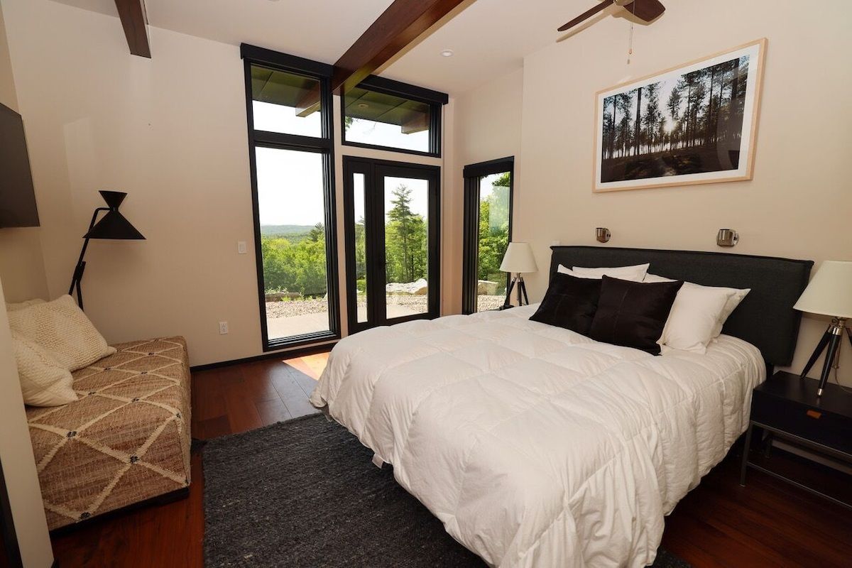 Nature meets luxury at this stunning Berkshire Mountain retreat. Just twenty minutes from Great Barrington and with hiking trails all around, this home is an idyllic escape from the hustle and bustle. Set in 167 private acres, this home has everything you could wish for. Admire mountain views from the hot tub on the sun deck, unwind in the steam room, and enjoy a tipple from the main bedroom’s wine bar. Your host can arrange for a chef to whip up feasts in the chef’s kitchen and order custom kegs for the kegerator. The open-concept living areas – with floor-to-ceiling windows – make socialising a dream. This home is perfect for a large family gathering.