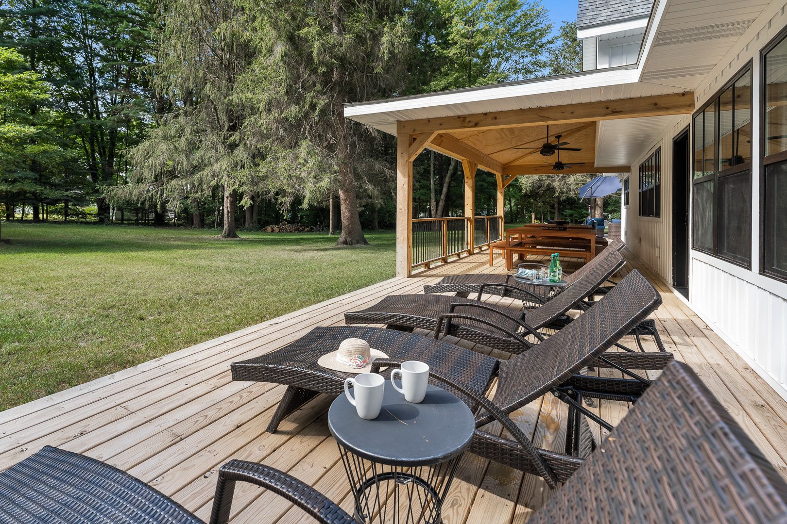 This stunning waterfront home is perfect for family gatherings. It's stylish yet cosy and complemented by the waterfront setting on Saddle Lake. Boredom is impossible here, with two kayaks and a canoe to explore the water – you can also launch boats at the public beach and moor them on the private dock. Feeling active? There's a pickleball, basketball, and volleyball court, plus softball, bocce, and other games. A fire pit and a hot tub complete the outdoor activities, while inside, you’ll have a pool table, karaoke machine, and an ice cream maker – the kids will never want to leave. Breweries and wineries are nearby, and you’ll be within easy reach of hiking and biking trails, including the 33-mile Kal-Haven trail.