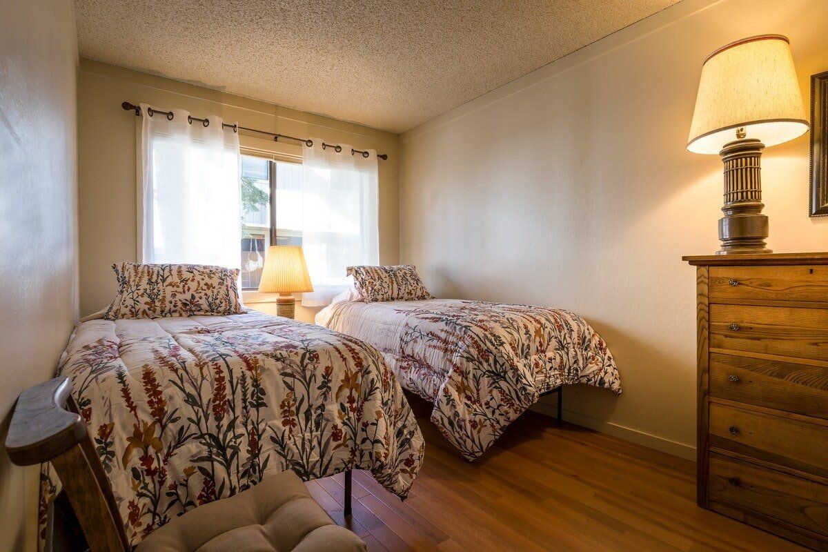 *The main bedroom features two single beds that have been joined to form a super king bed