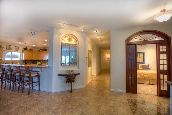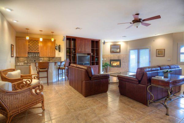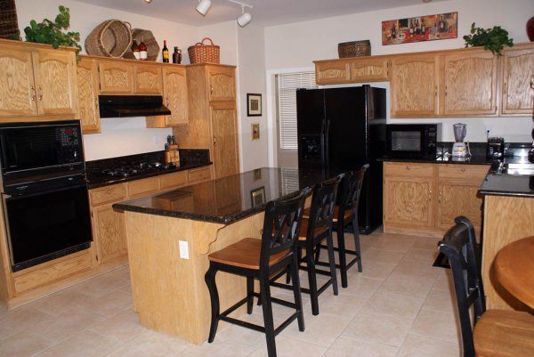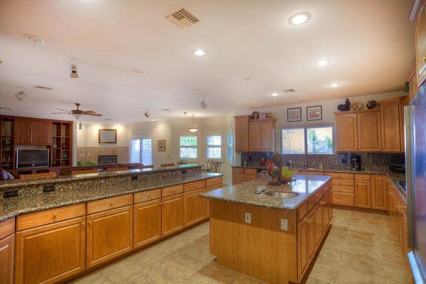 The family room and kitchen are combined to provide a wide open area suitable for informal relaxation.