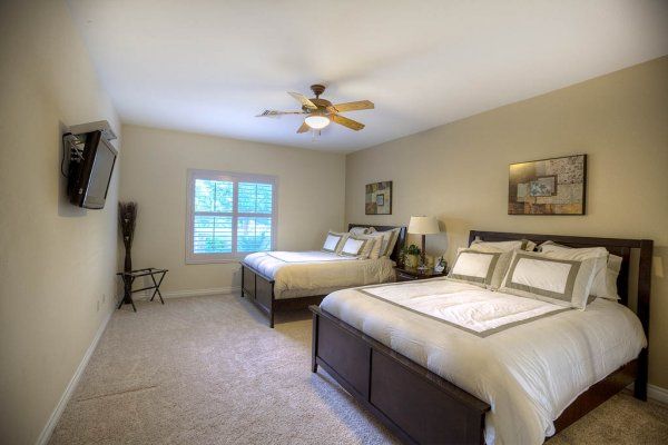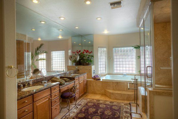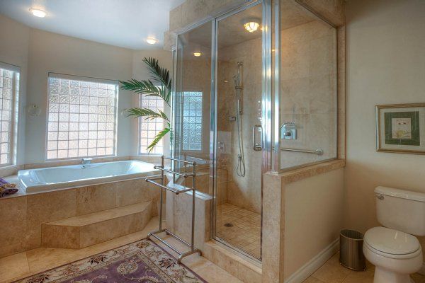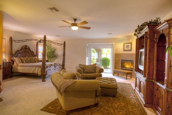 The master suite has a king size bed, comfortable lounging area and access to the swimming pool. The master bathroom features a Jacuzzi, steam shower and walk in closet. .