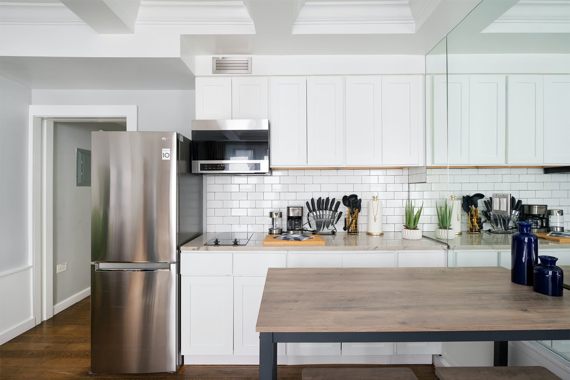 This cosy home is located in the heart of the Upper West Side, just a short walk from Central Park and the Hudson River. As you’d expect from a studio, space is limited here, but the location and on-site amenities – which include a gym – more than make up for the smaller space. We think the kitchenette is best suited to light bites, as with no oven, you won’t be able to create grand culinary creations – but with an abundance of New York restaurants on your doorstep, dining out is a must.