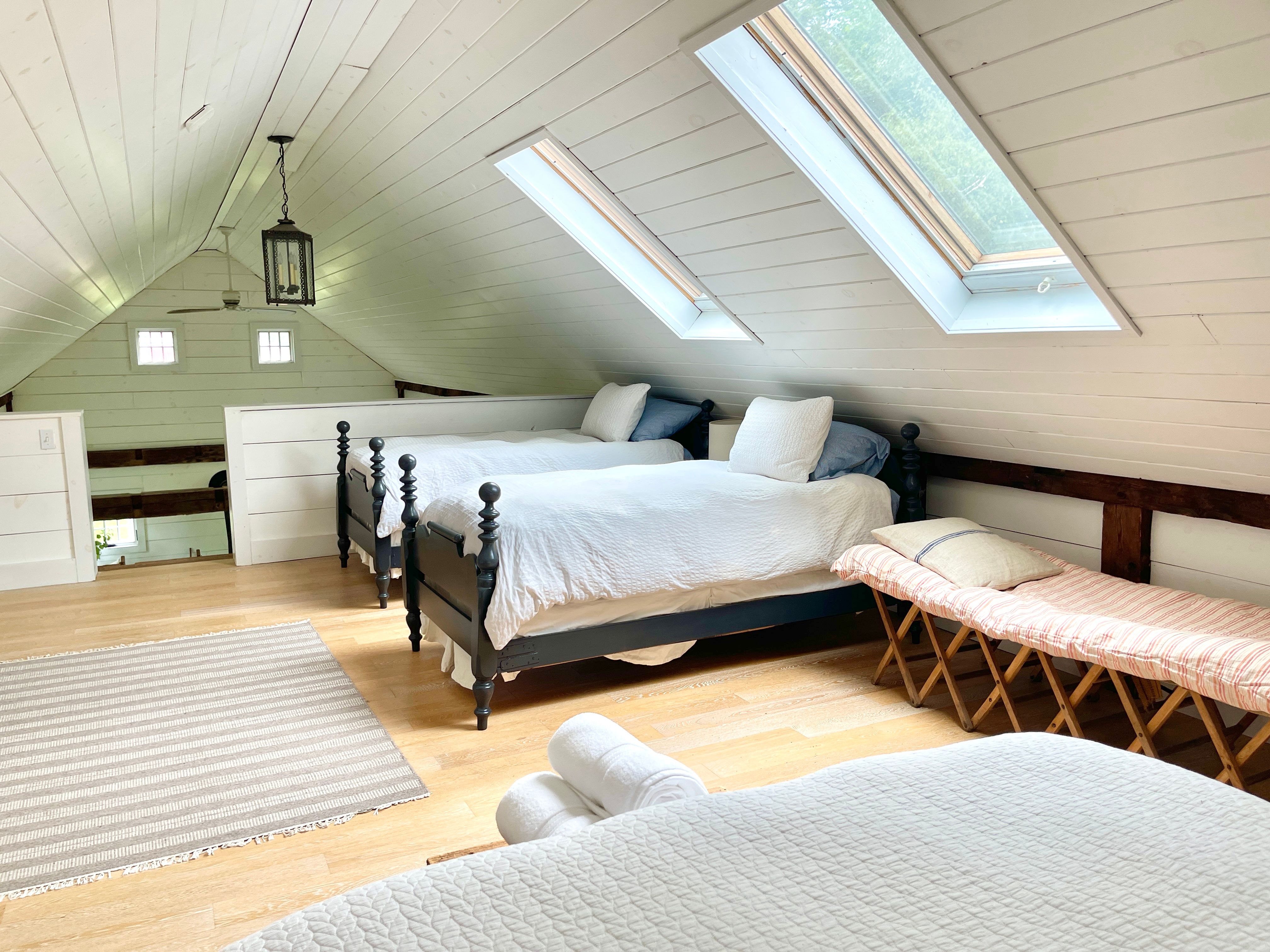 This 150-year-old Hudson Valley farmhouse sits on 16 acres of land that includes an apple orchard. It’s an idyllic base for those seeking an escape to the peace of the Catskills – though the town of Windham is just a ten-minute drive. If you tire of hiking, biking and fishing, you can always indulge in a spot of antiquing. The home is owned by a former interiors editor, which explains why it looks like it’s come straight from the pages of a magazine – the rustic style is oh-so charming. The loft bedroom is best suited to older children who won’t mind the ladder or lack of privacy.