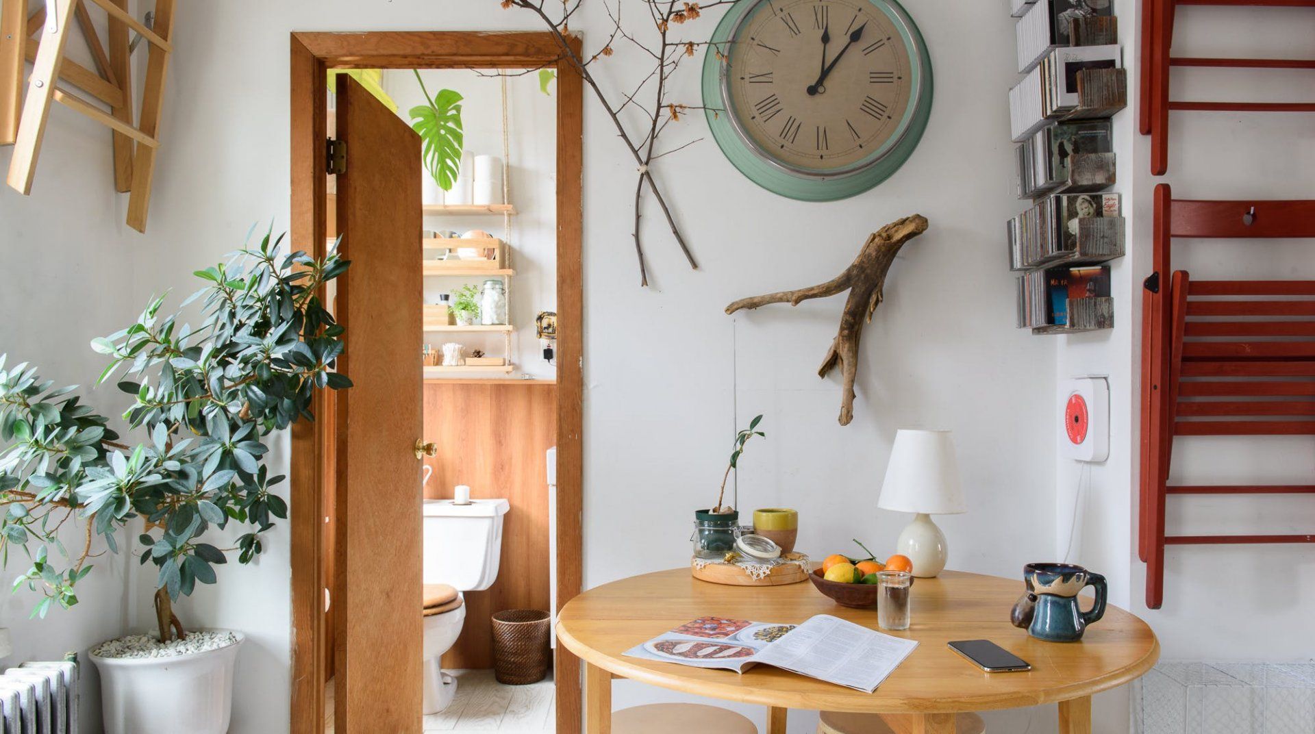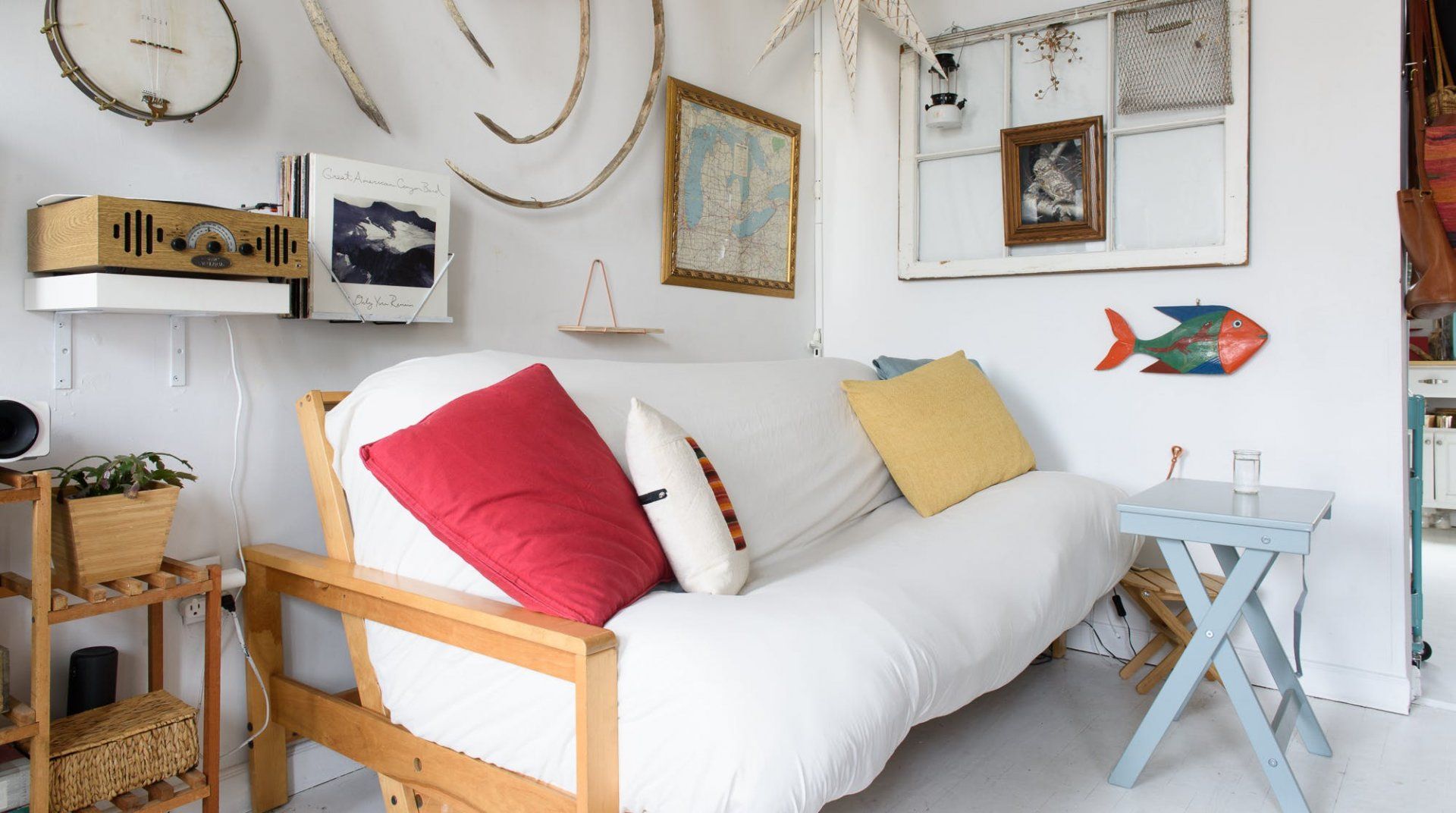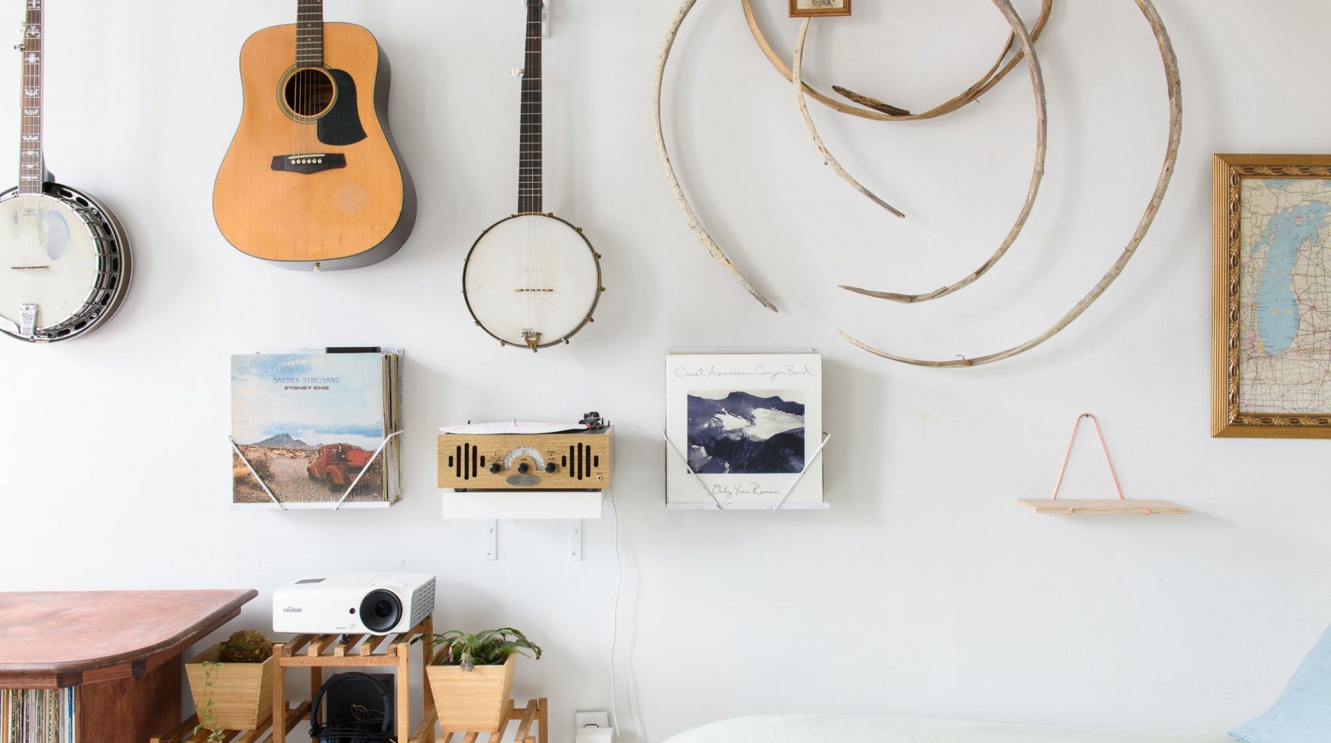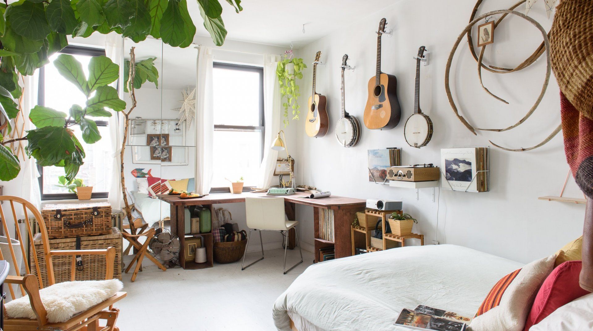 True to some conceptions of a Brooklynite, this home reveals an inside look at the life of a travelling musician. Hung on the walls are several string instruments and bookshelves are filled with records – passions that will undoubtedly inspire any passer-by. Select a soundtrack and set it to play on the record player, while you pour yourself a glass of wine. It's relaxing moments like these, that offer respite from the buzz of New York City living.