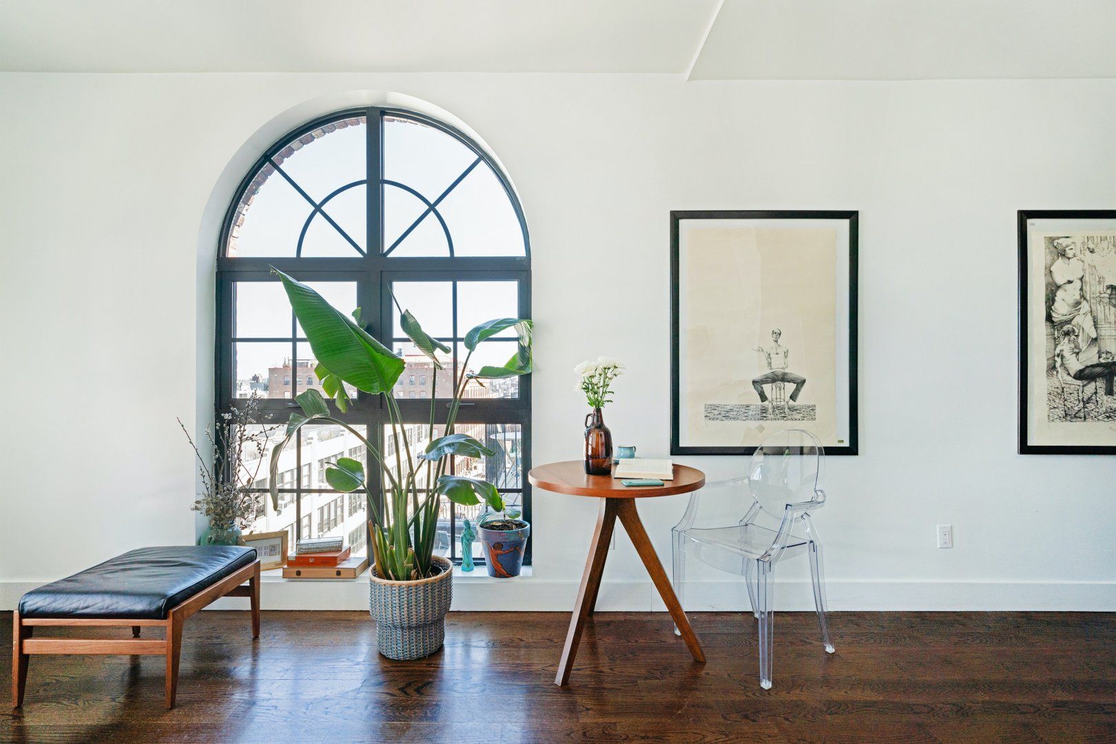 This stunning loft-style apartment in the heart of Williamsburg has New York cool written all over it. Dark wood floors, a moody colour palette in the kitchen and metro tiles combine with tropical prints and modern art to create a look that’s funky yet grown-up. The real wow factor here is the vast crittall-style window that floods the apartment with light and gives it a sense of space that’s hard to find in NYC. You’re conveniently close to the pulsing energy of the city centre (five minutes from the subway and NYC Ferry) but with Williamsburg’s relaxed cafes, bars and shops on your doorstep. Head up to the shared roof terrace for a knockout view over Manhattan as the sun begins to drop. There’s a shared lounge in the building as well, ideal for meetings, drinks or just having a different space to relax in, and fitness fans will be happy to know that there’s a gym in-house for those all-important sweat sessions.