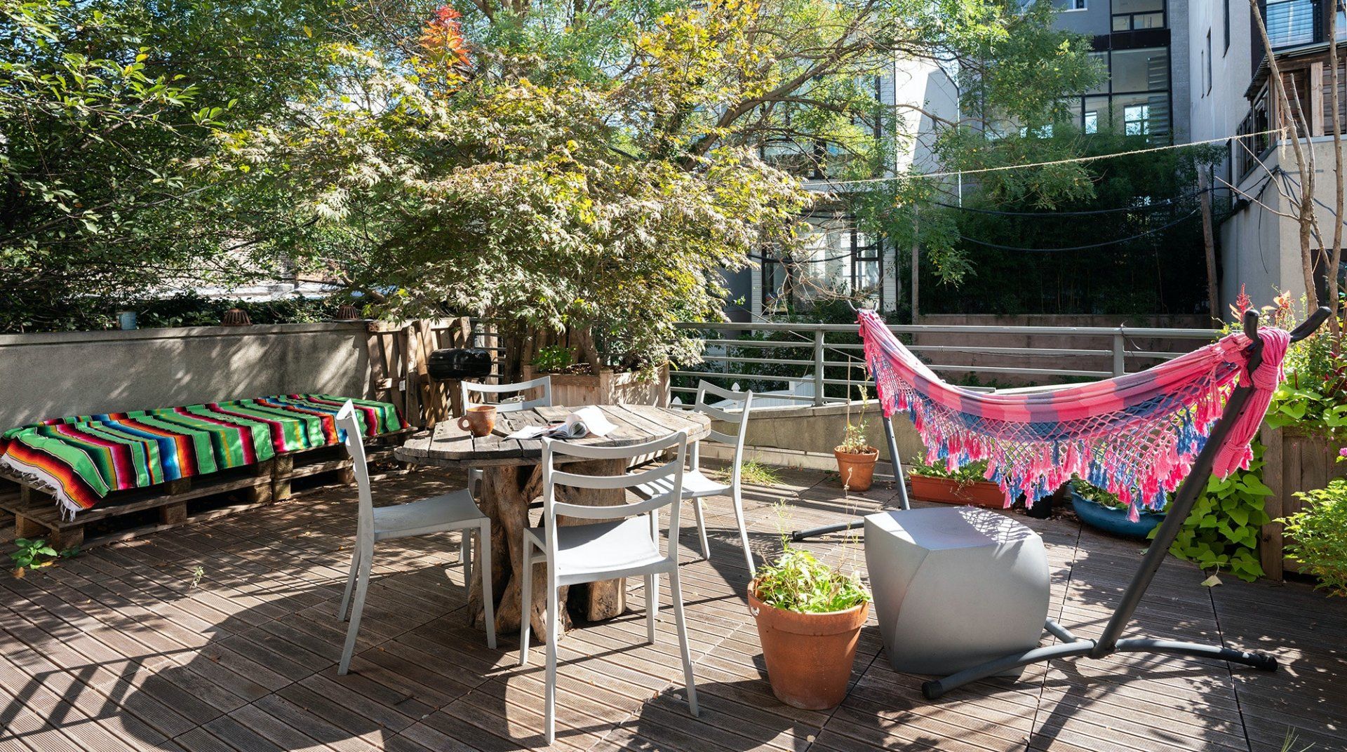 This home is filled with pops of colour, plants of every shape and size, and the host’s own artwork. It might not be a look that suits everyone, but you can count on character and homely touches here. We love the vintage and recycled furniture, which sit comfortably amongst the bright textiles and bohemian accent pieces. On top of that, there’s a private roof terrace, equipped with a hammock and a pallet bench. This home is a haven in the middle of Brooklyn.