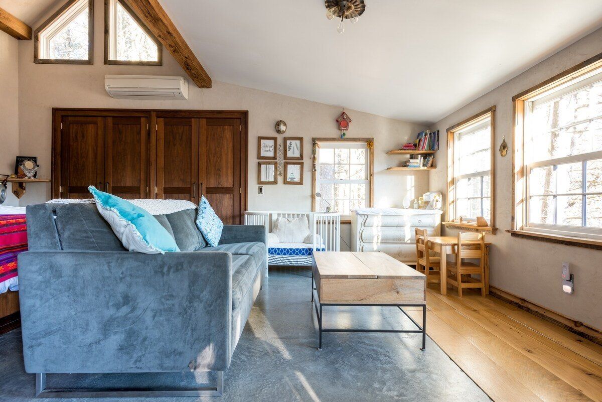 Reminiscent of something from a Laura Ingalls Wilder novel, this picturesque cabin is a haven surrounded by peace and quiet and lush woodland. Although you can count on a serene stay here, you’re also just a five-minute drive from the quaint town of Old Chatham where you can find some local amenities, or a ten-minute drive from Chatham Town, which has several excellent restaurants and plenty of charming local shops. Perfect for a cosy couple or a small family, this home can welcome up to four guests, though two of them will have to sleep on the sofa bed. Spend your time reading on the porch, playing lawn games, and hiking in the area, before coming home to whip up a delicious meal in the fully equipped kitchen and settling down for a great night’s sleep in the King bed. Thanks to its picturesque setting, The Great Frontier is the ultimate escape for those who want to unwind and recharge in the comfort of nature.